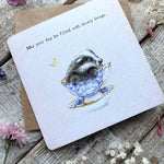 May Your Day Be Filled With Lovely Things Greetings Card (Tea Cup Badger)