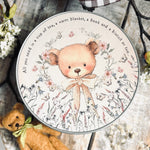 This cute tin has been inspired by my new little world of woolly bears… The Bears From Wishing Wood; a quiet, tucked away place in my imagination where tea and toast are in plentiful supply and life moves slowly. It’s home to a small and thoughtful community of bears — each one carefully made by hand, with a heart full of character and brimming with wishes for good things. You’ll find them living in ivy covered cottages, reading books, napping under woolly blankets and pondering and pontificating about life.