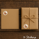35 round stickers measuring 37mm across. These stickers are perfect for adding to gifts, parcels, greetings cards, journals, planners… They will add a little cute nostalgic charm to whatever you decide to adhere them to!