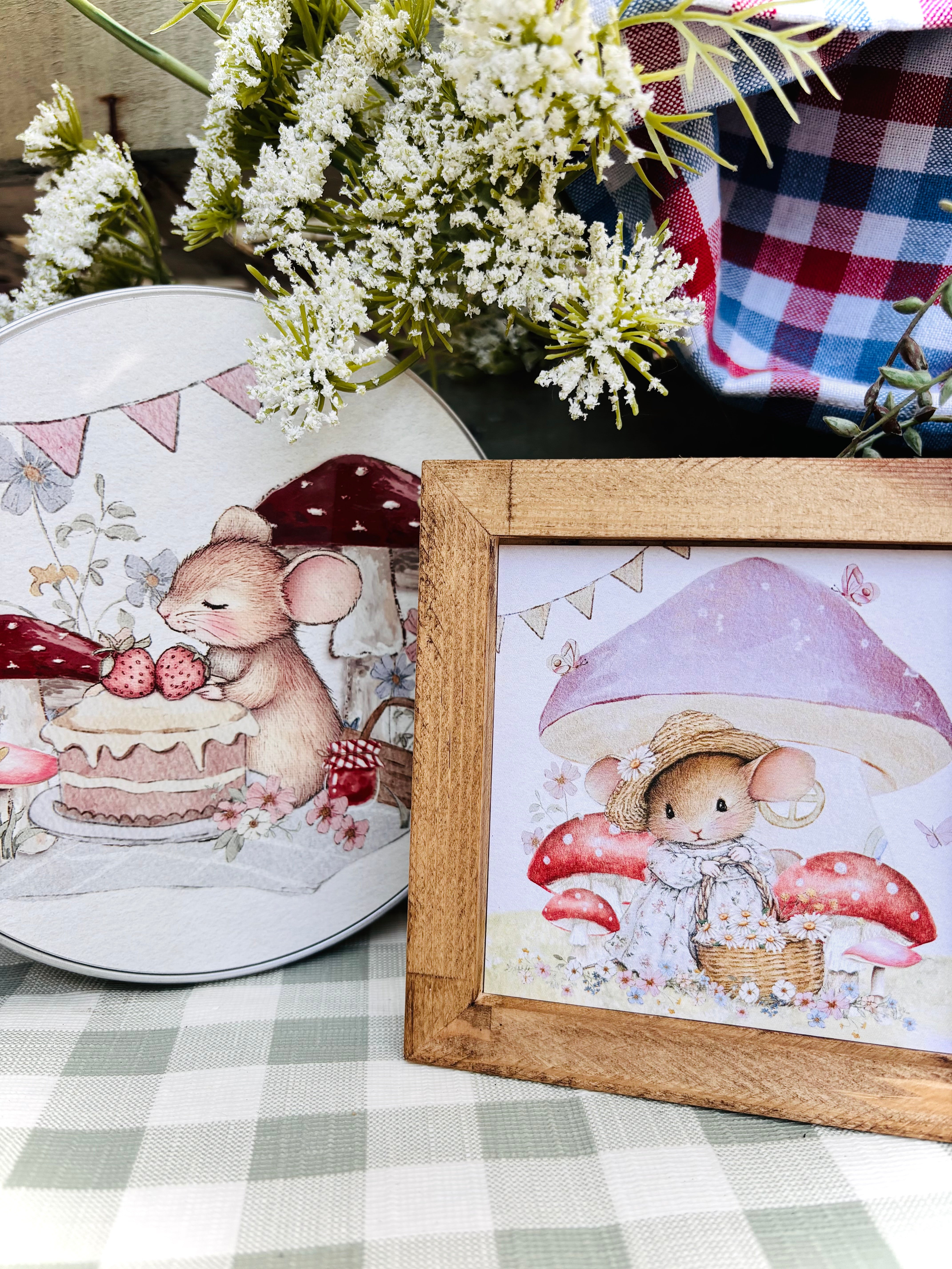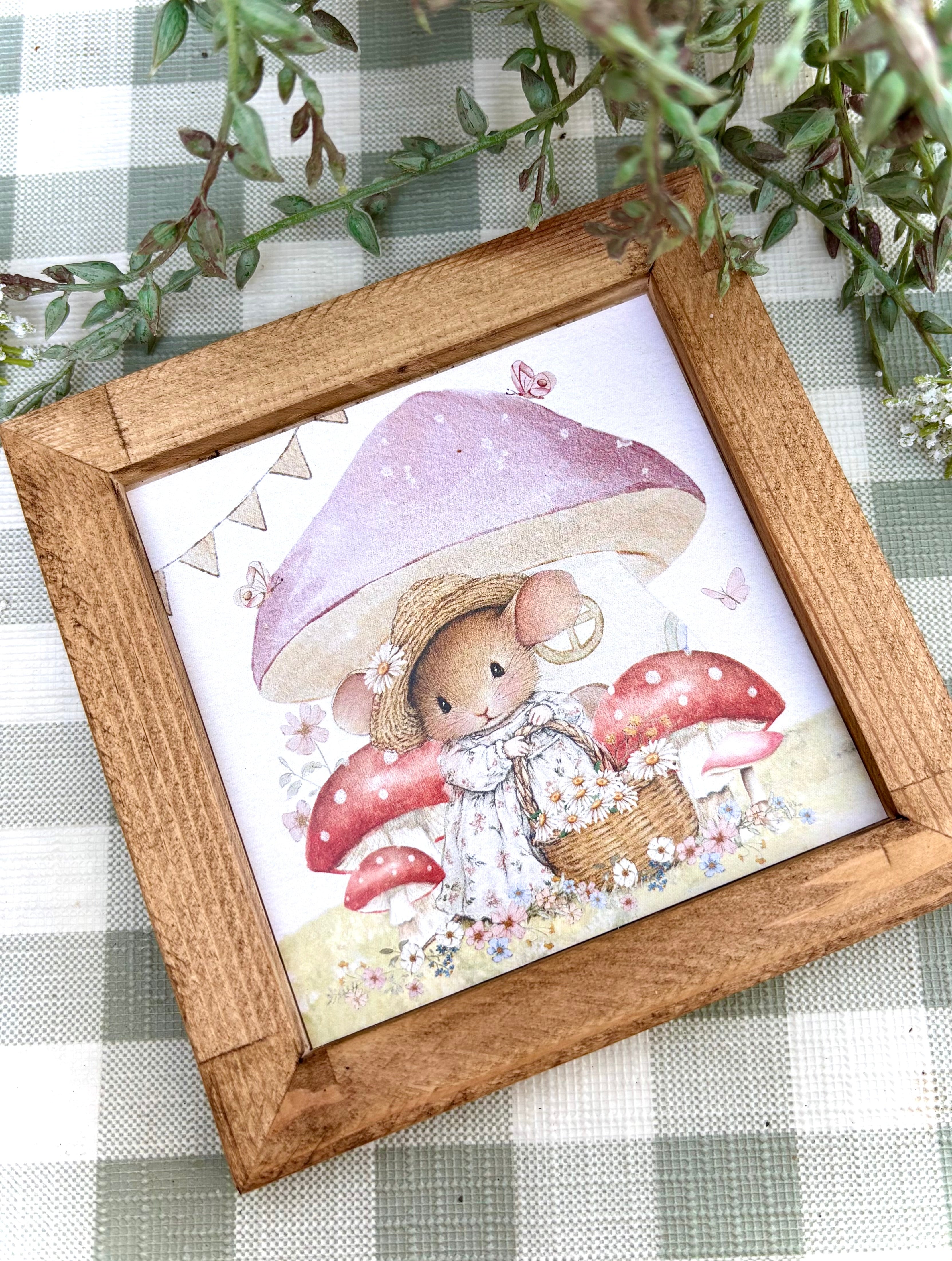 A sweet little rustic style framed print! These tiny pictures are perfect for displaying on a tiered tray, a shelf or mantelpiece - they do not have a hook but you could of course add one if you wanted to hang these frames on the wall.