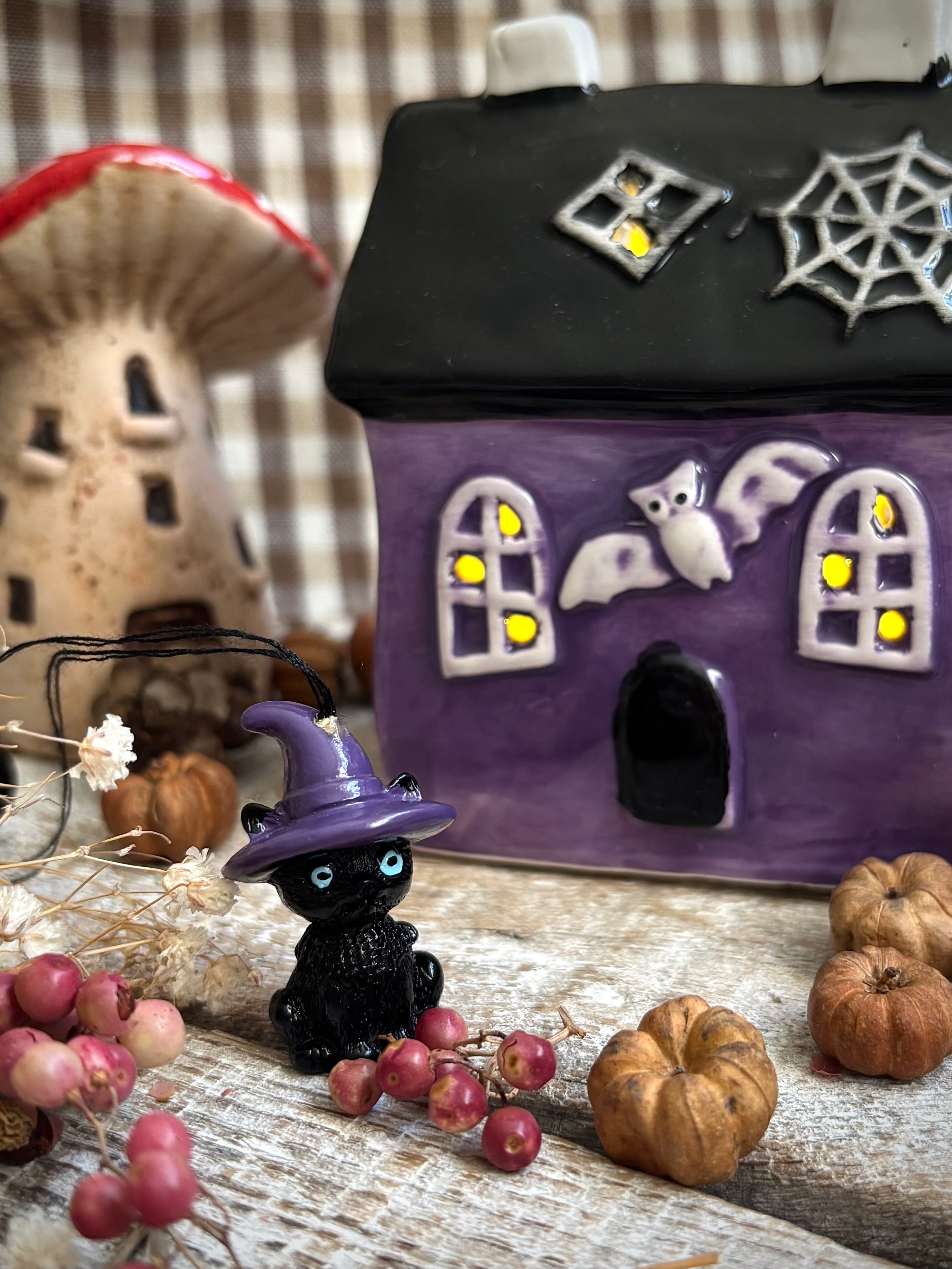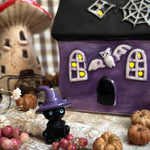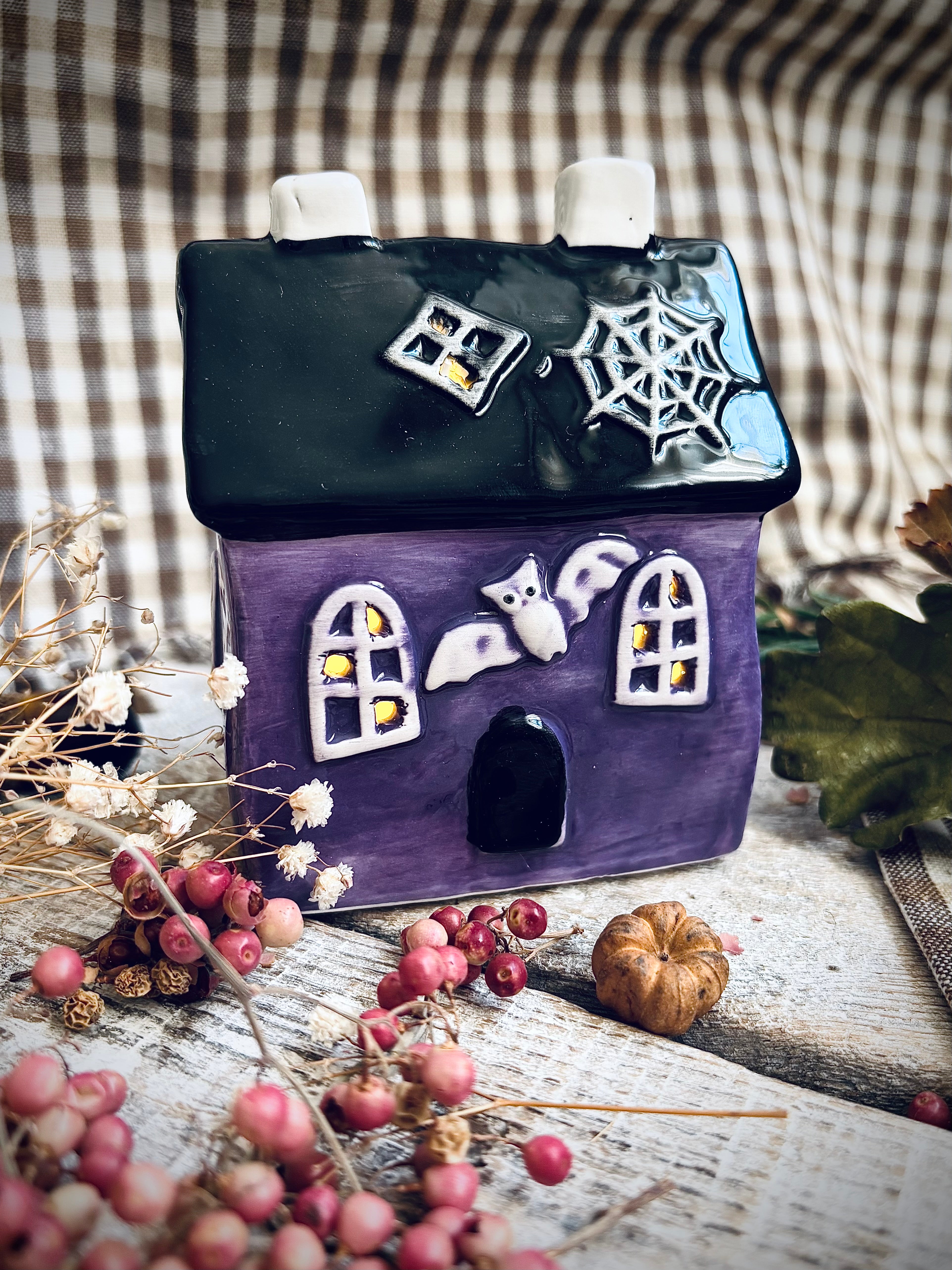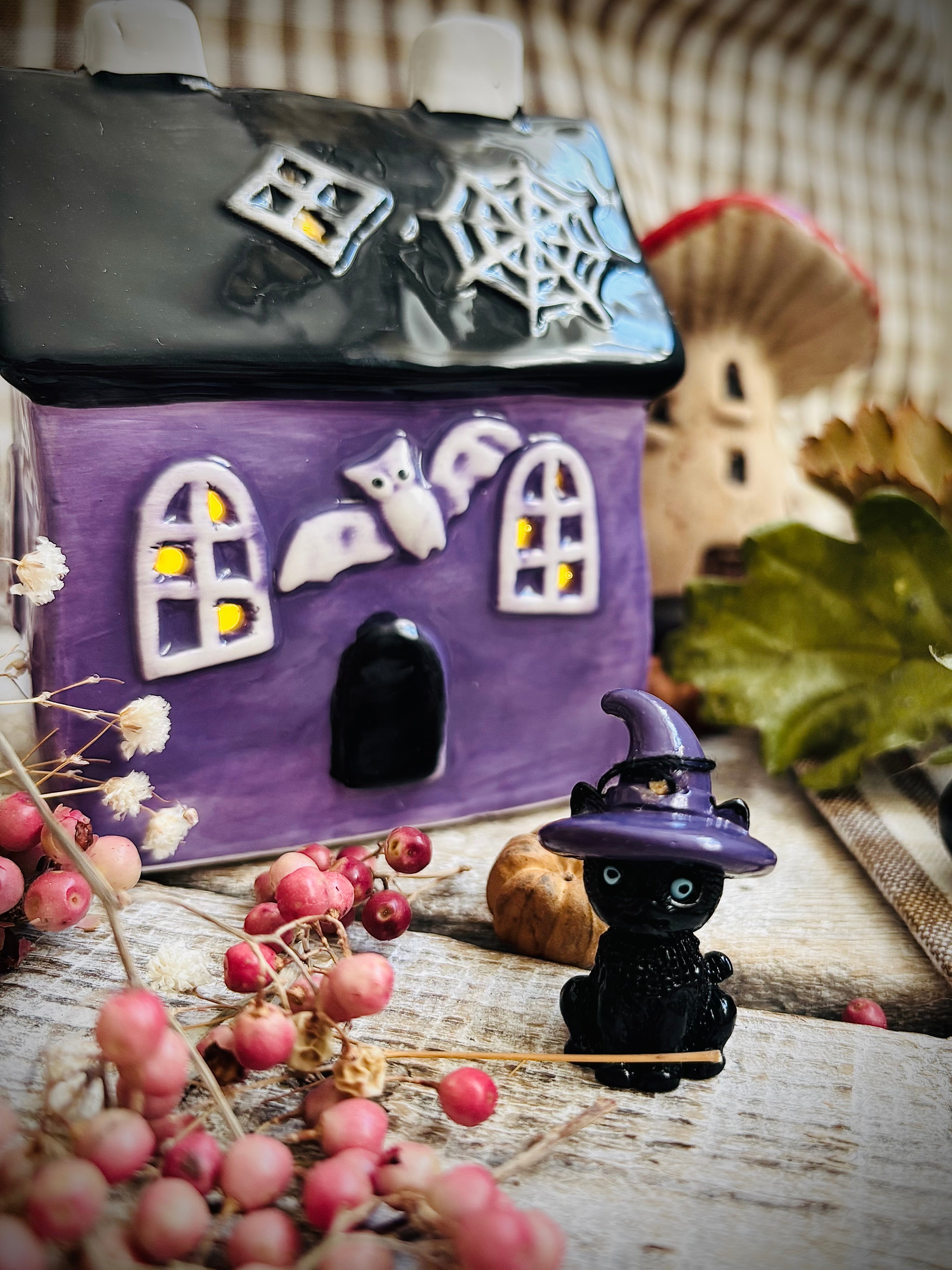 This sweet little light up haunted house is a cute addition to your Halloween decor. Sweet and cosy and full of whimsical Halloween charm!