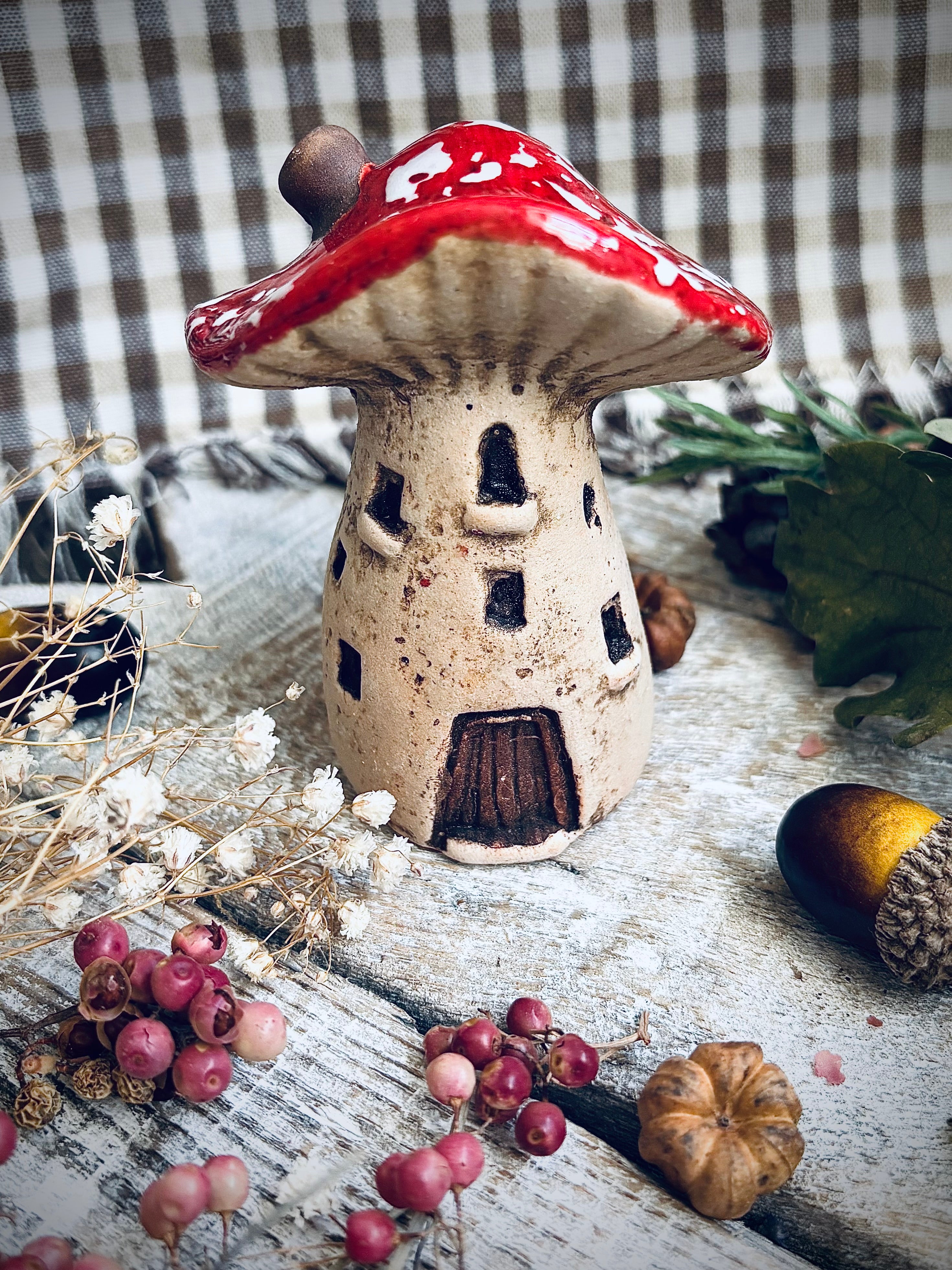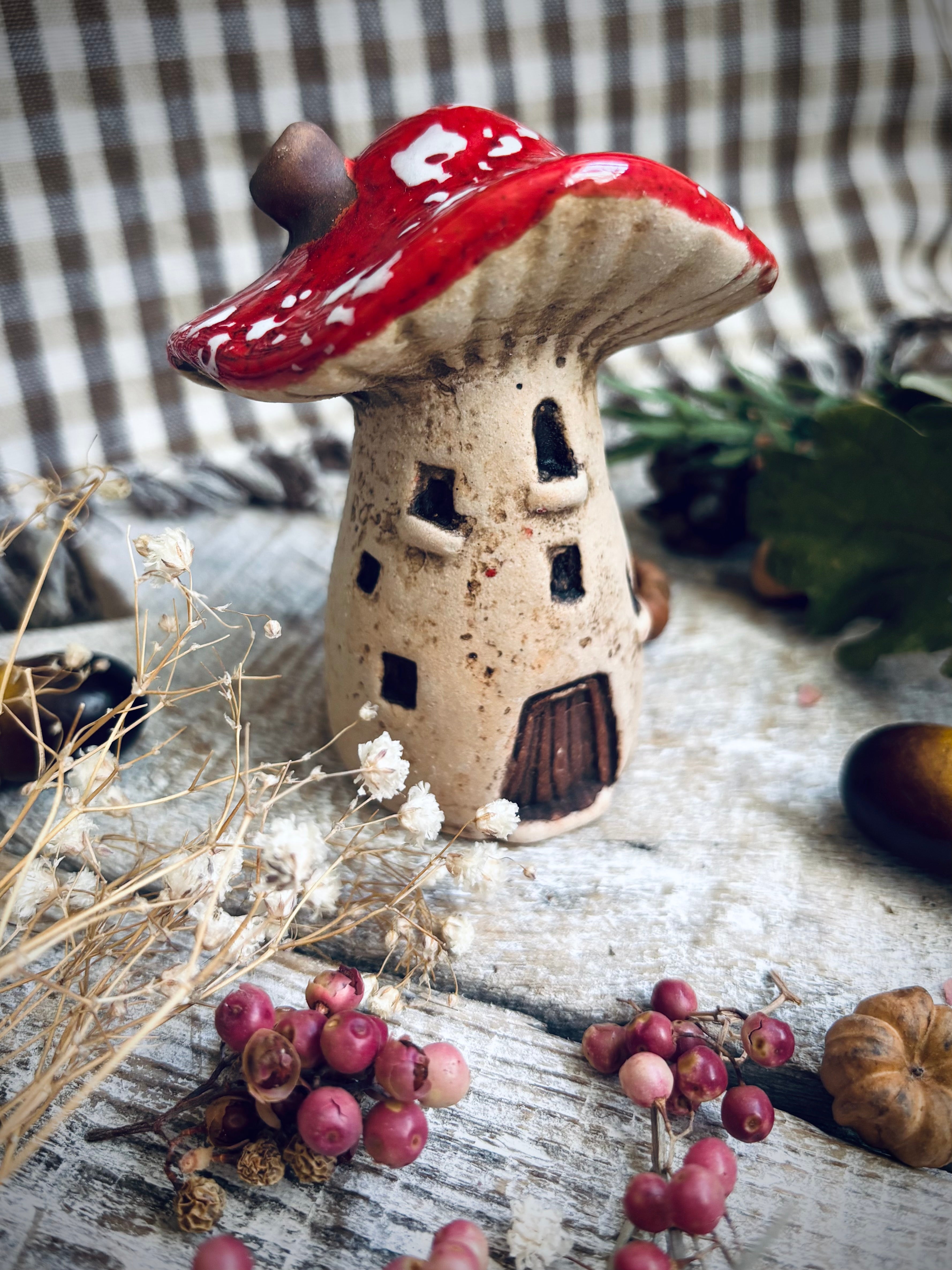 This charming little toadstool house will add a touch of whimsical charm to your home during the autumn months and beyond.