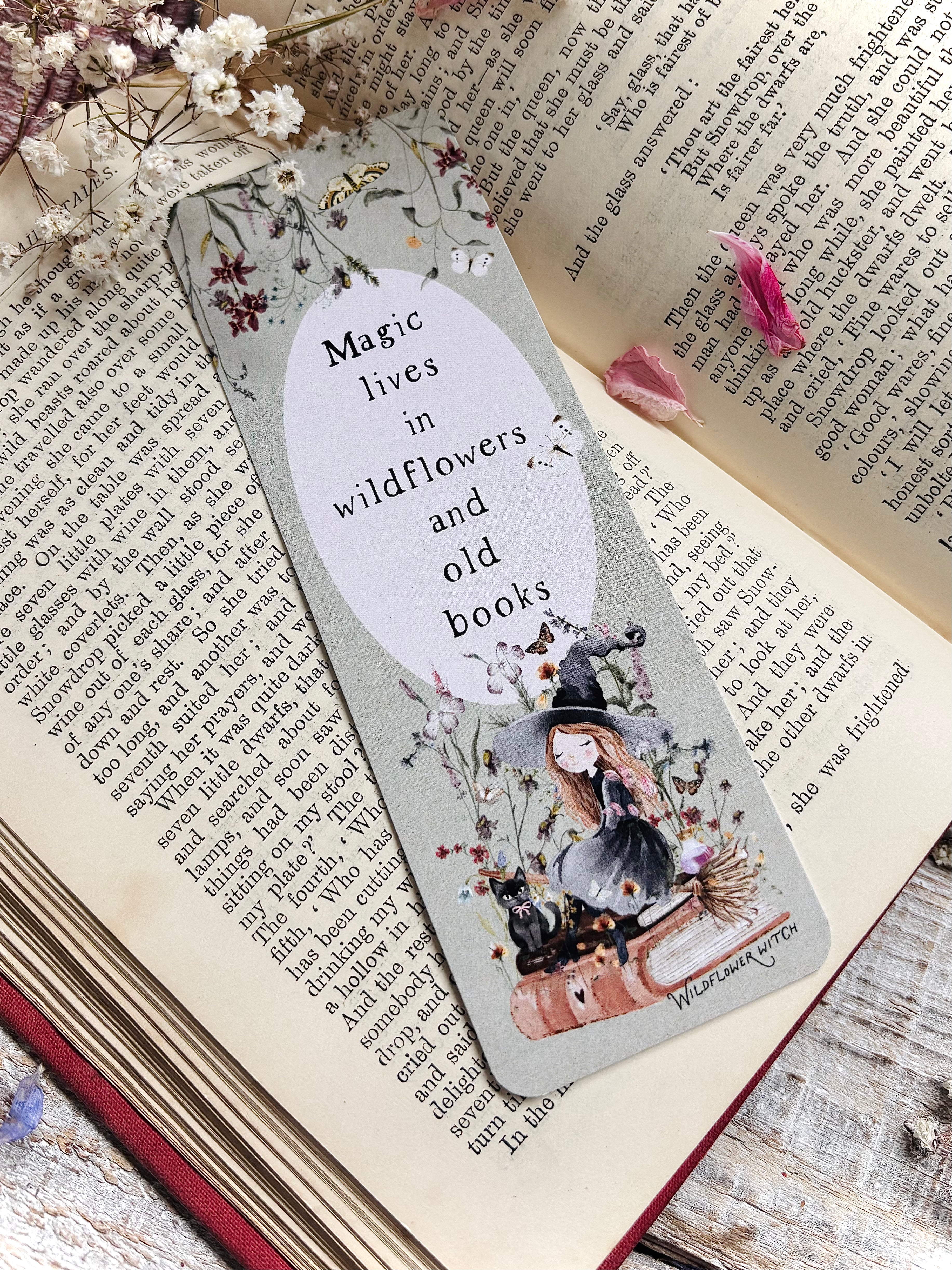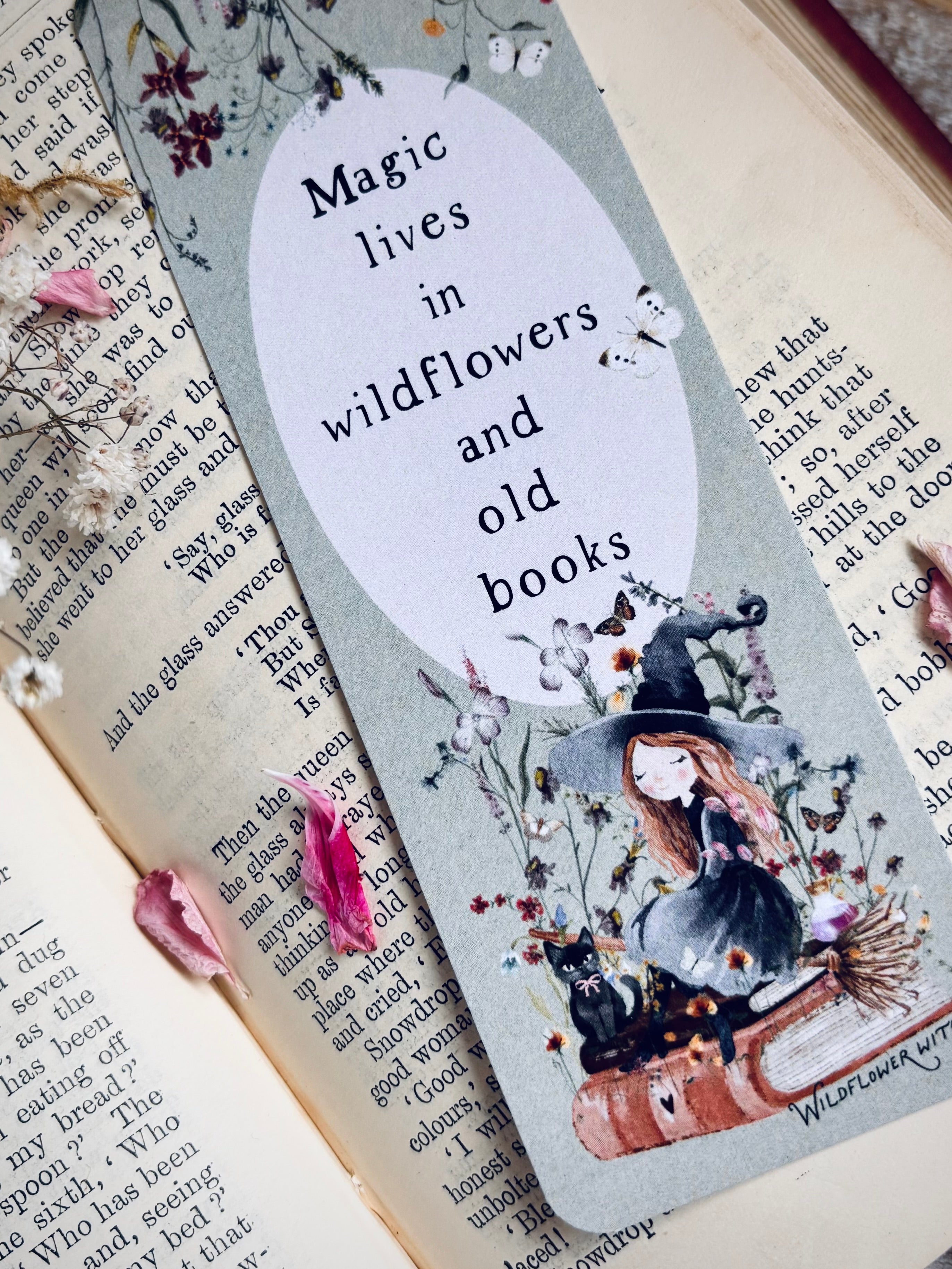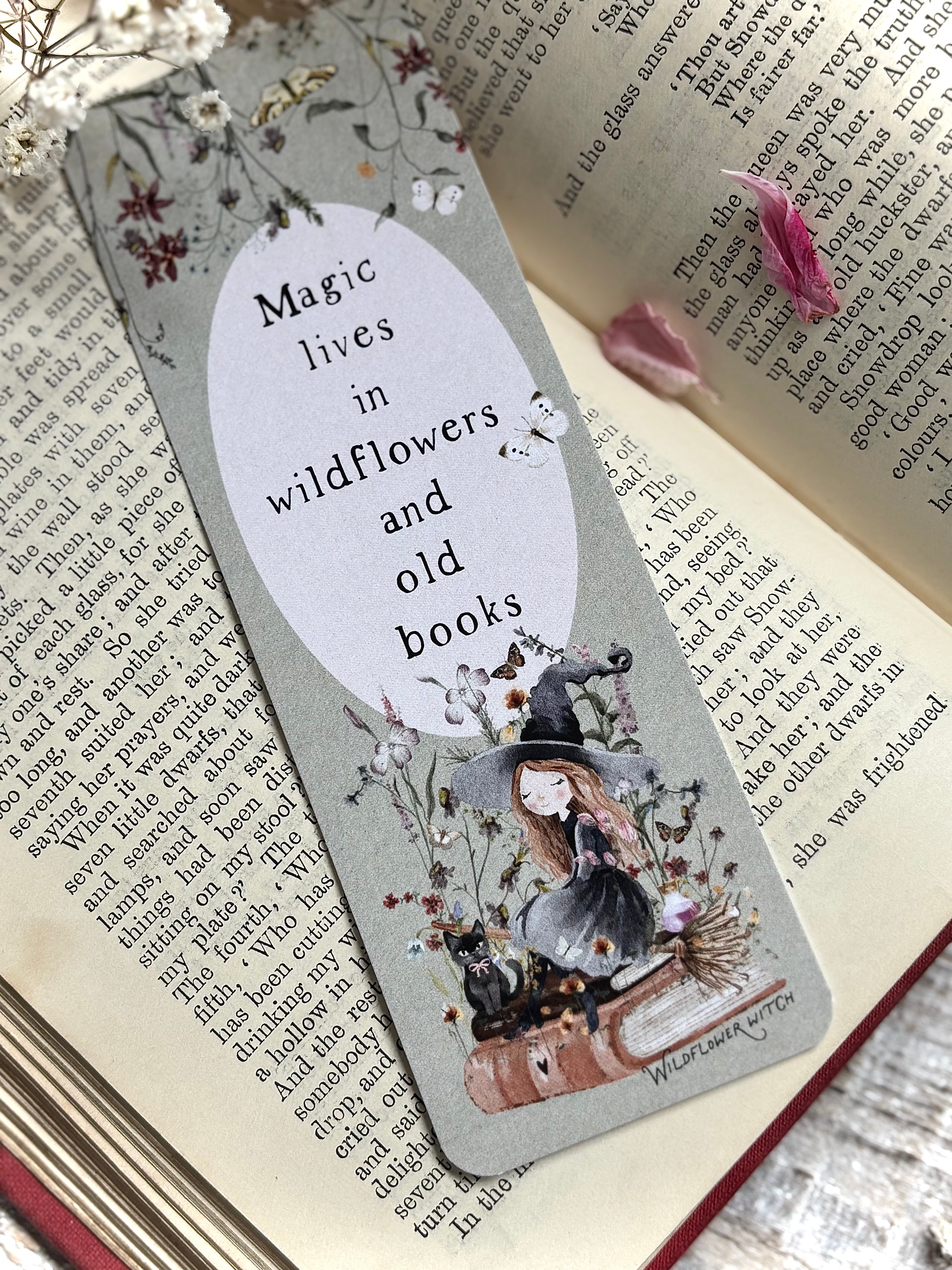 Printed on smooth 400gsm cardstock, this little bookmark features our popular Wildflower Witch design.