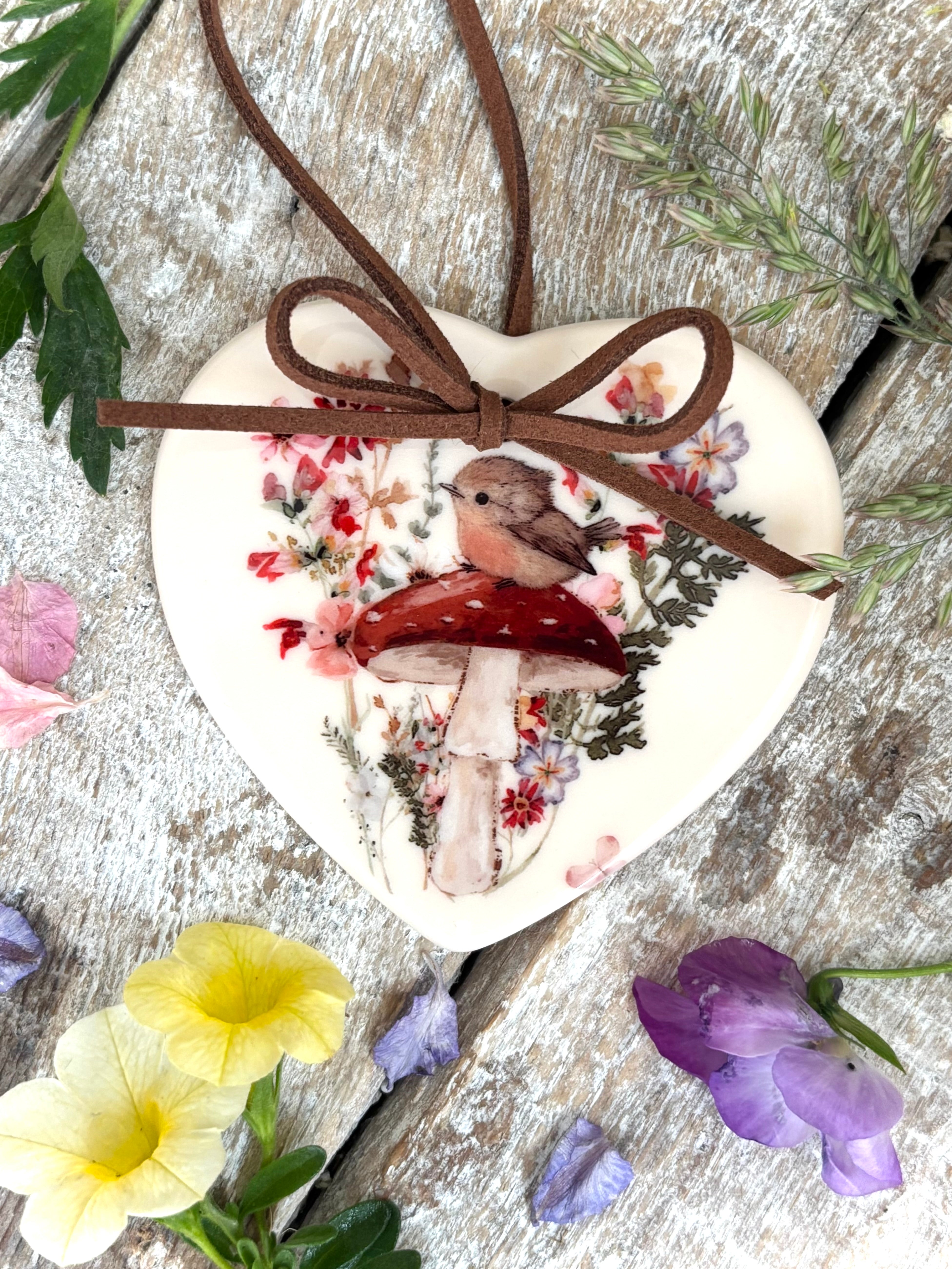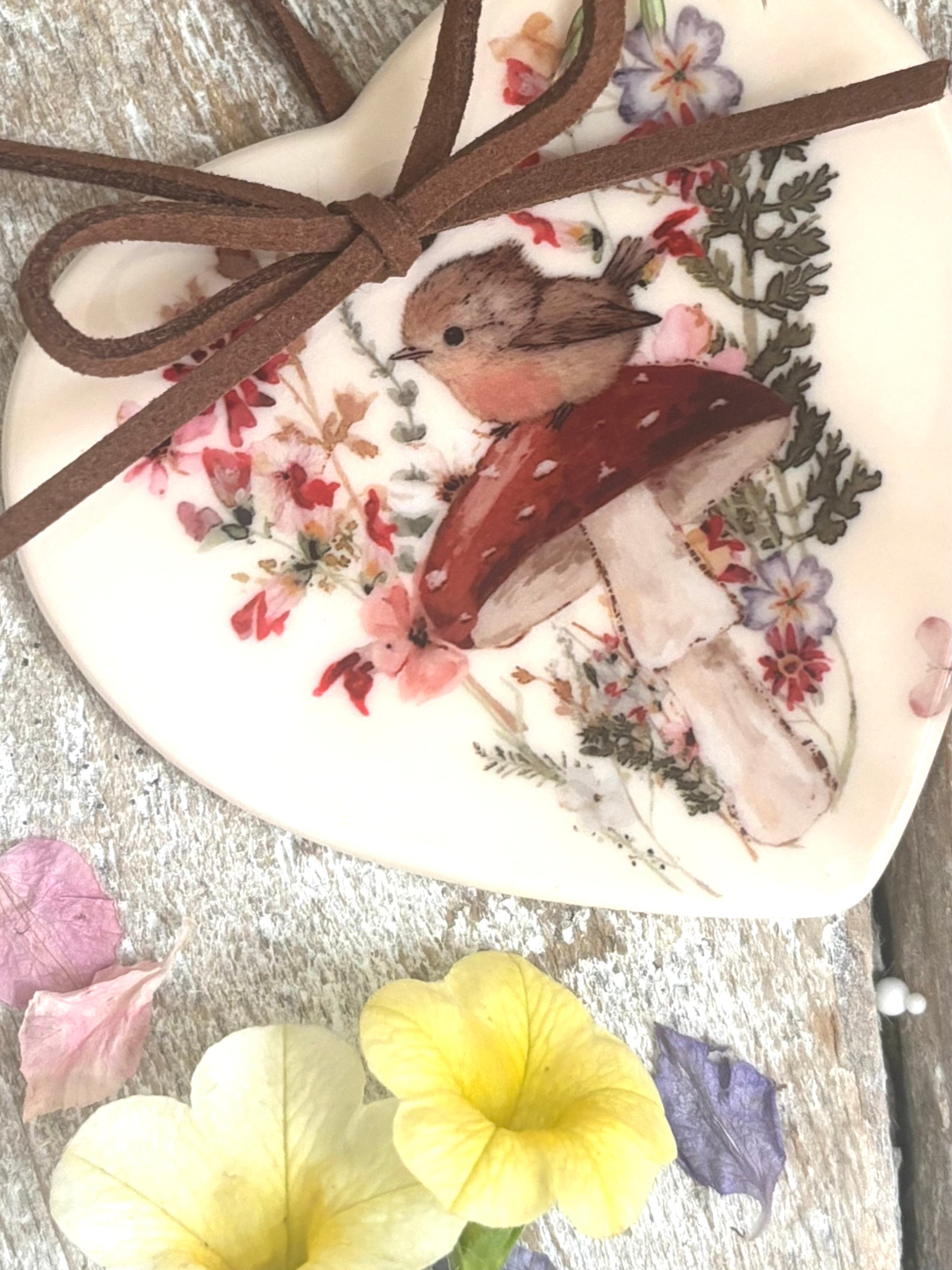 Sweet Little Robin Ceramic Heart - We Do Not Part With Those We Love
