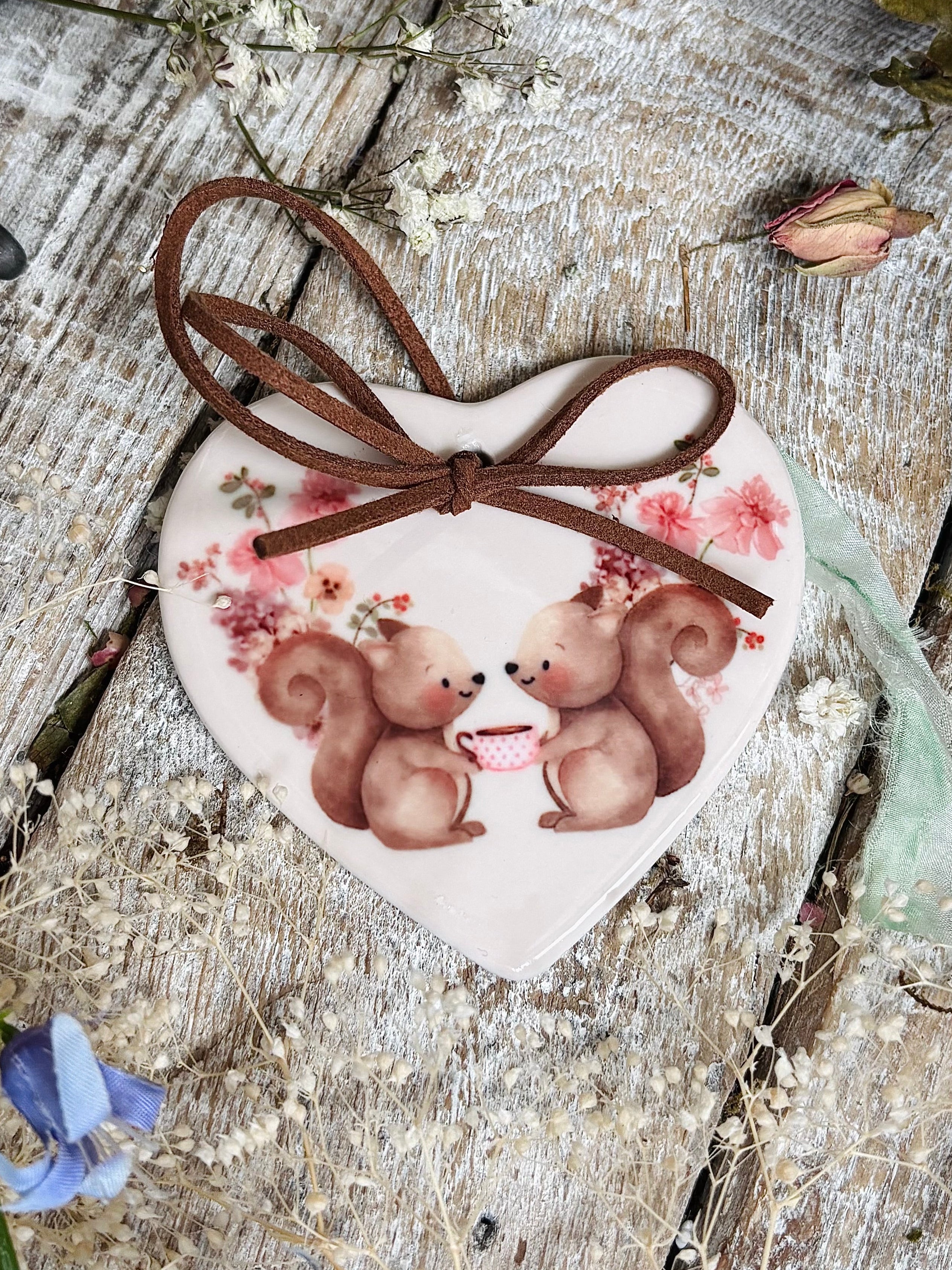 Featuring two little squirrel friends and the wording: “Friends have a special place in the heart”.