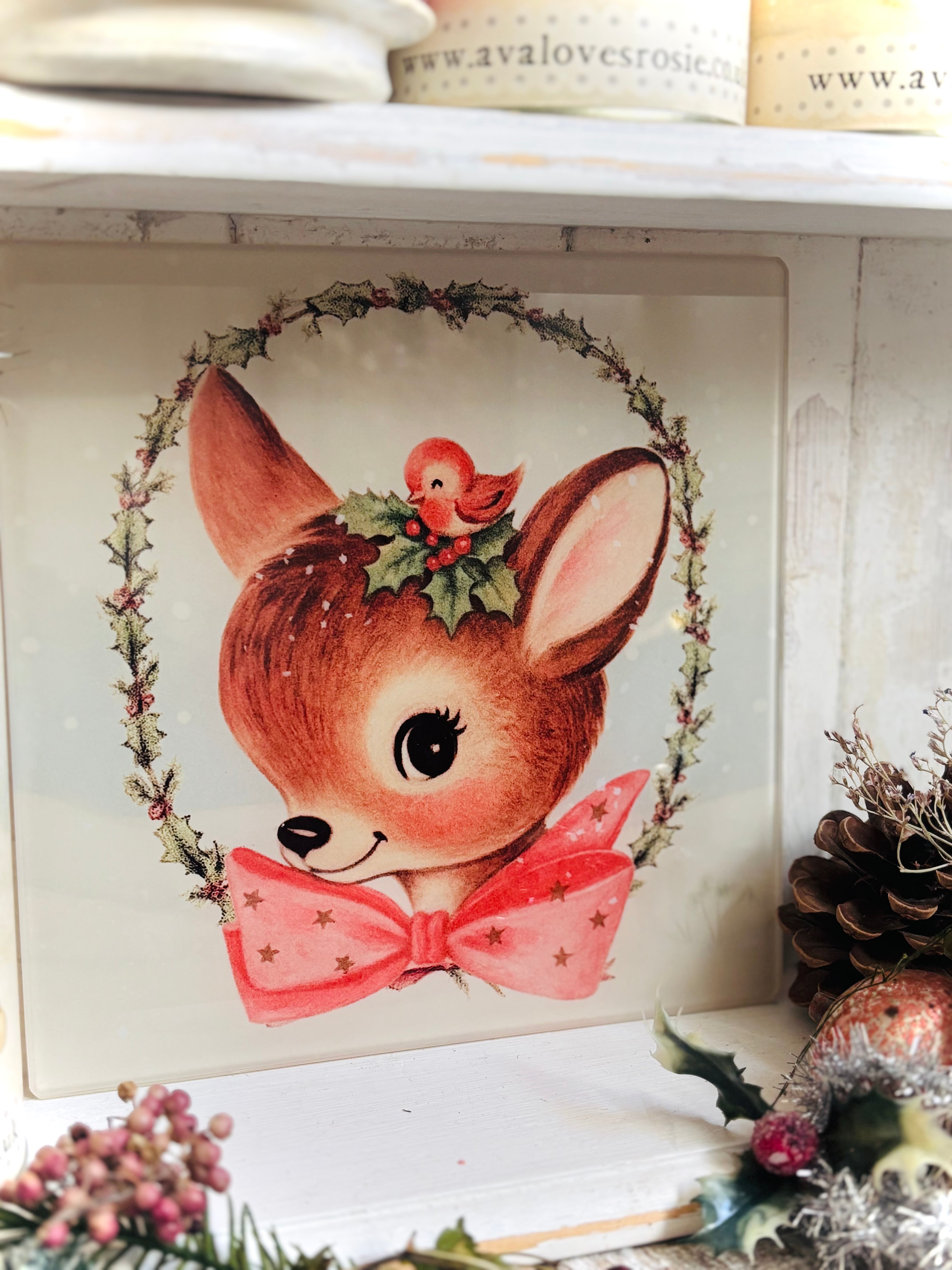 Cute Christmas Deer Square Chopping/Serving Board