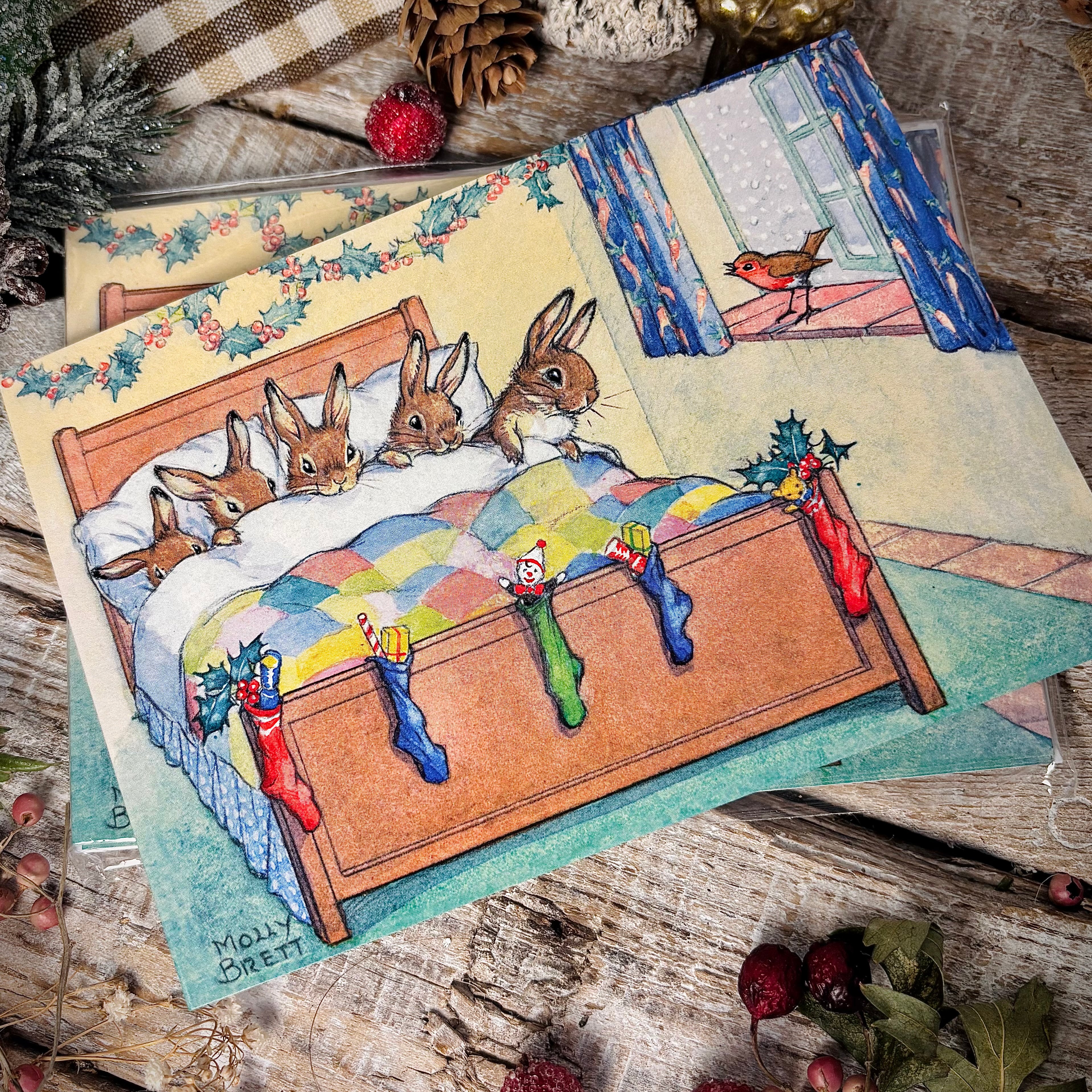 Pack Of Five Christmas Cards - Molly Brett - Bunnies In Bed G395