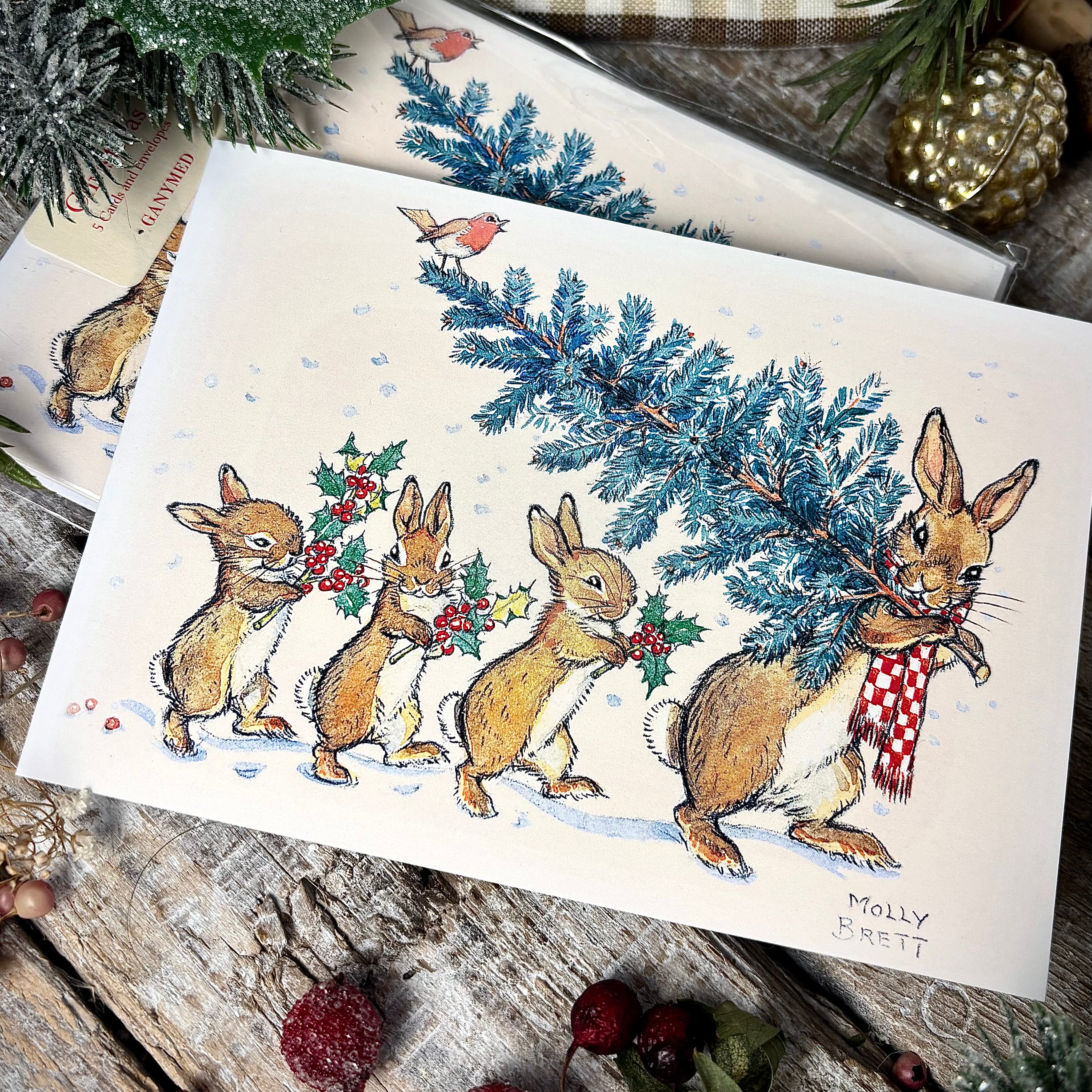 Pack Of Five Christmas Cards - Bringing Home The Tree - Molly Brett - G200