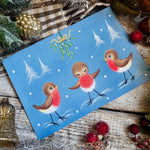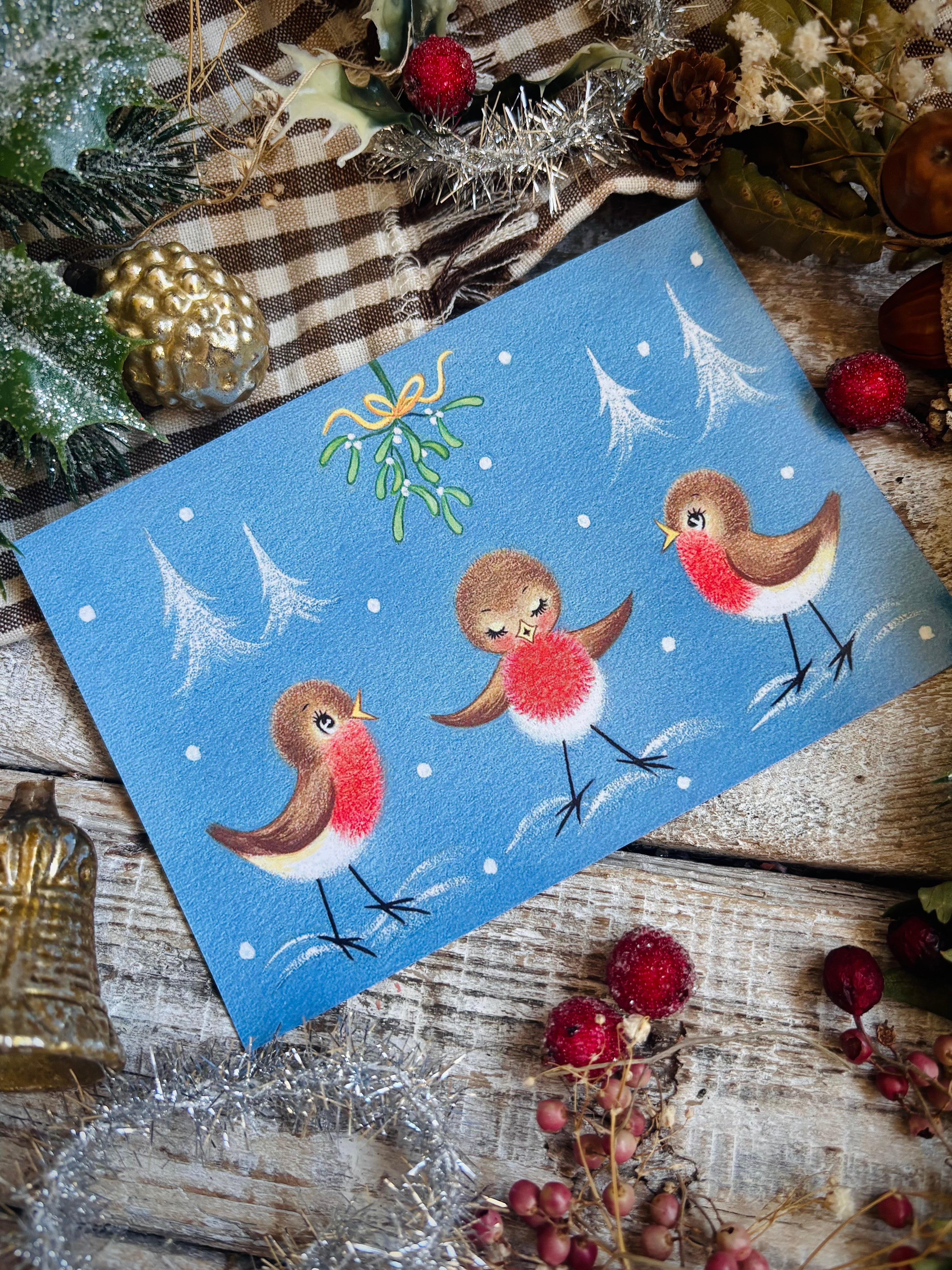 Christmas Postcard - Three Robins Under Mistletoe - Mary Adair R698