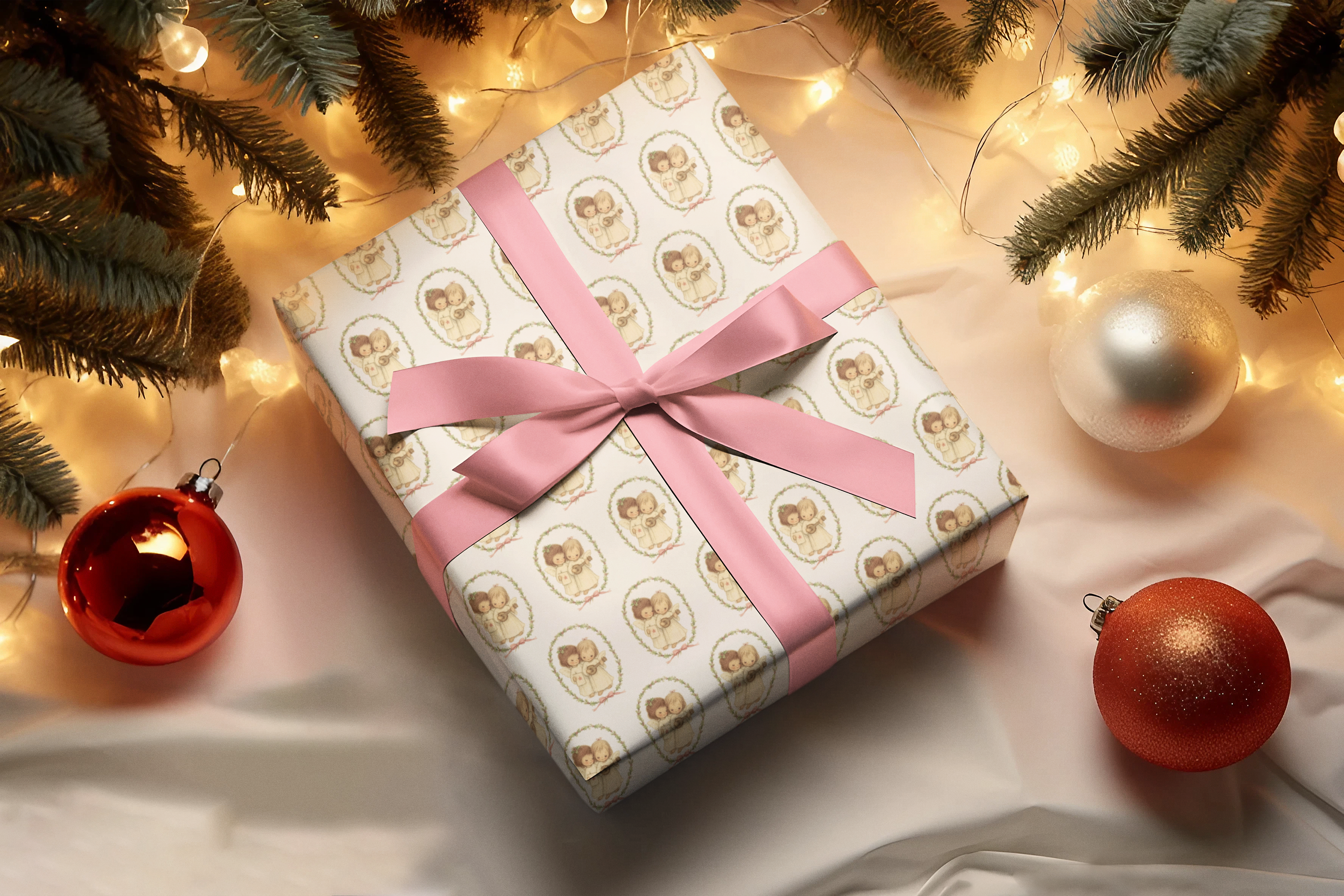 An adorable little pair of angels adorn this 110gsm satin finish gift wrap!