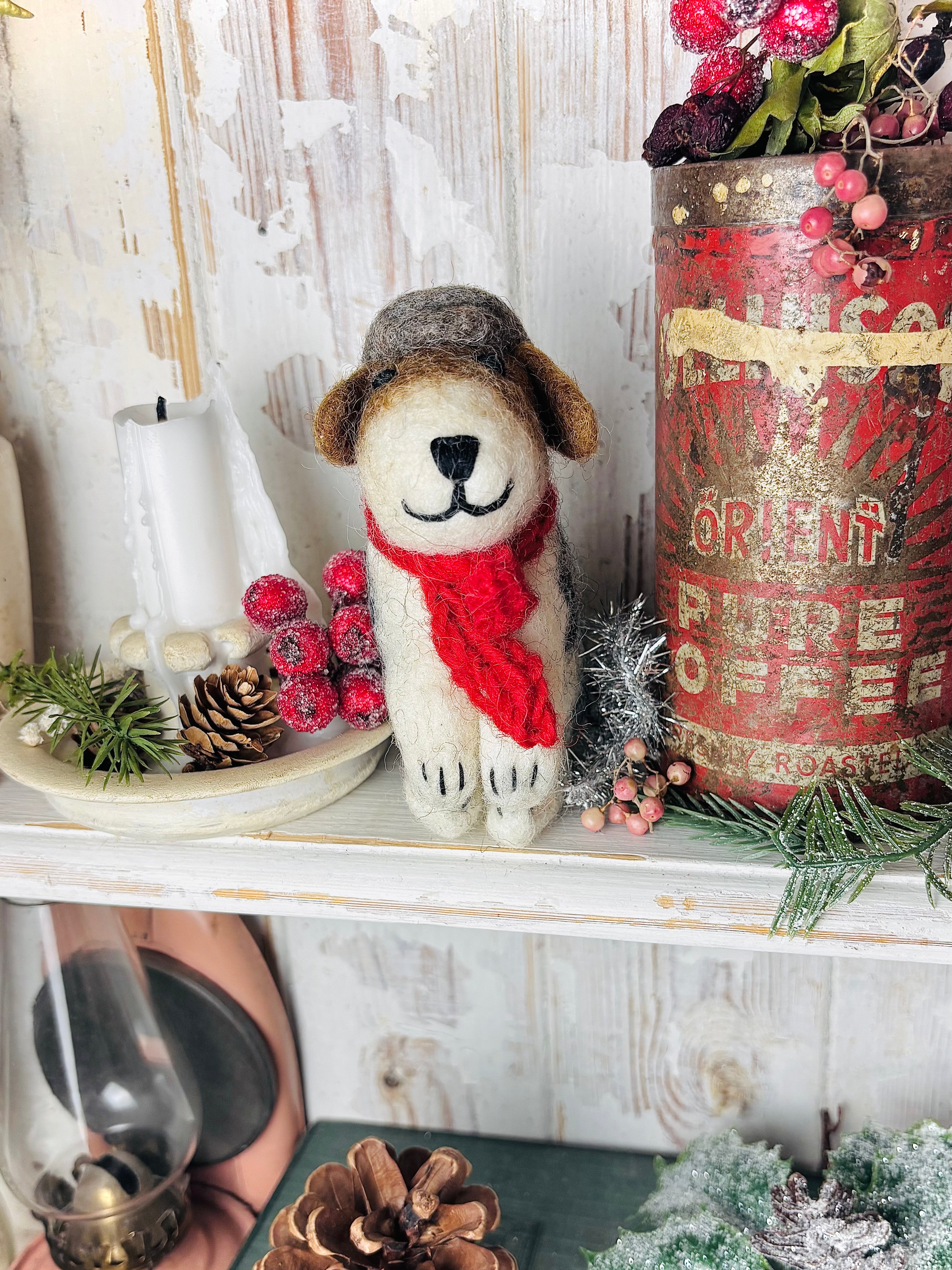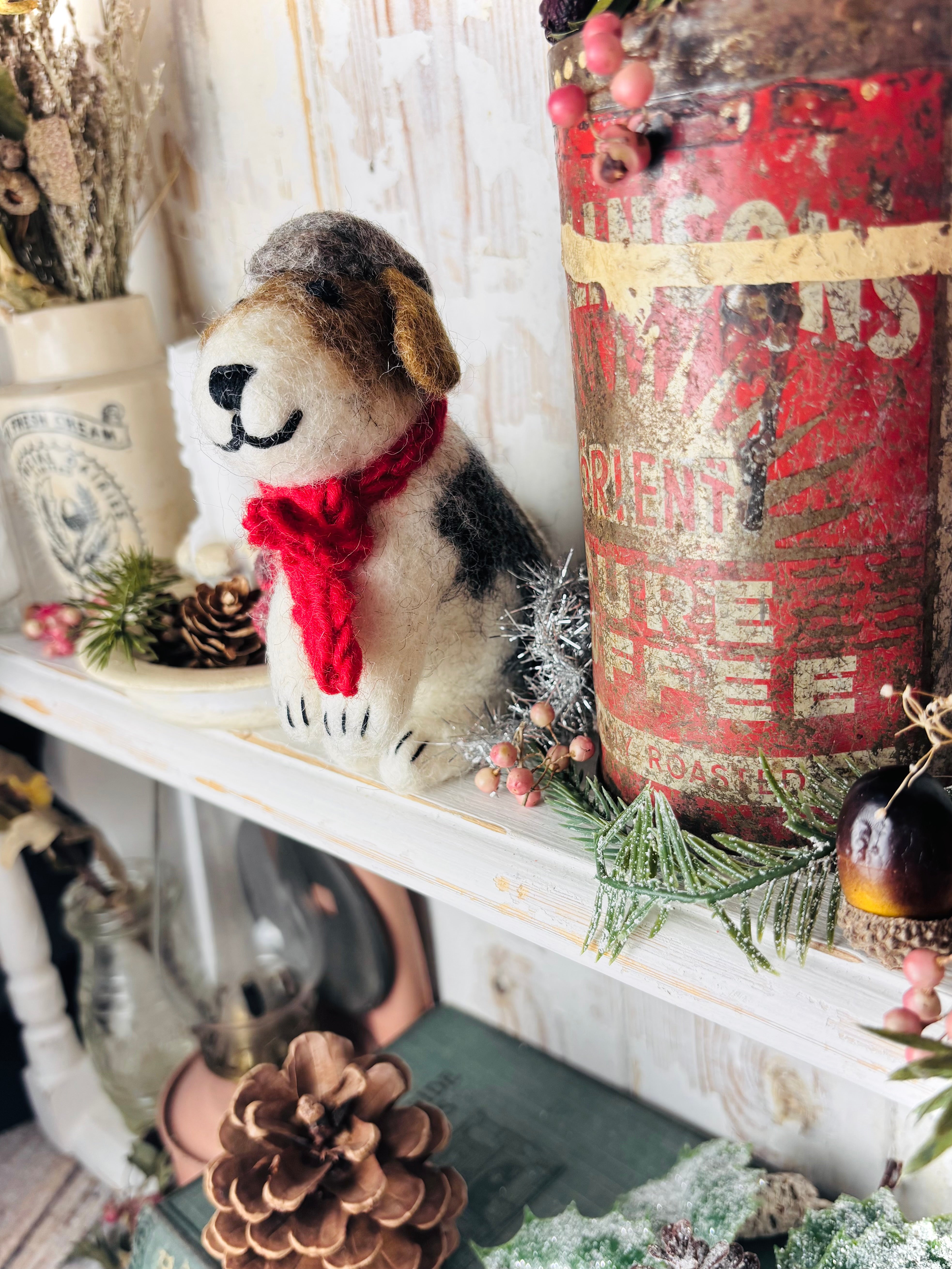 A lovely Fox Terrier with flat cap and scarf- he's as good as gold!