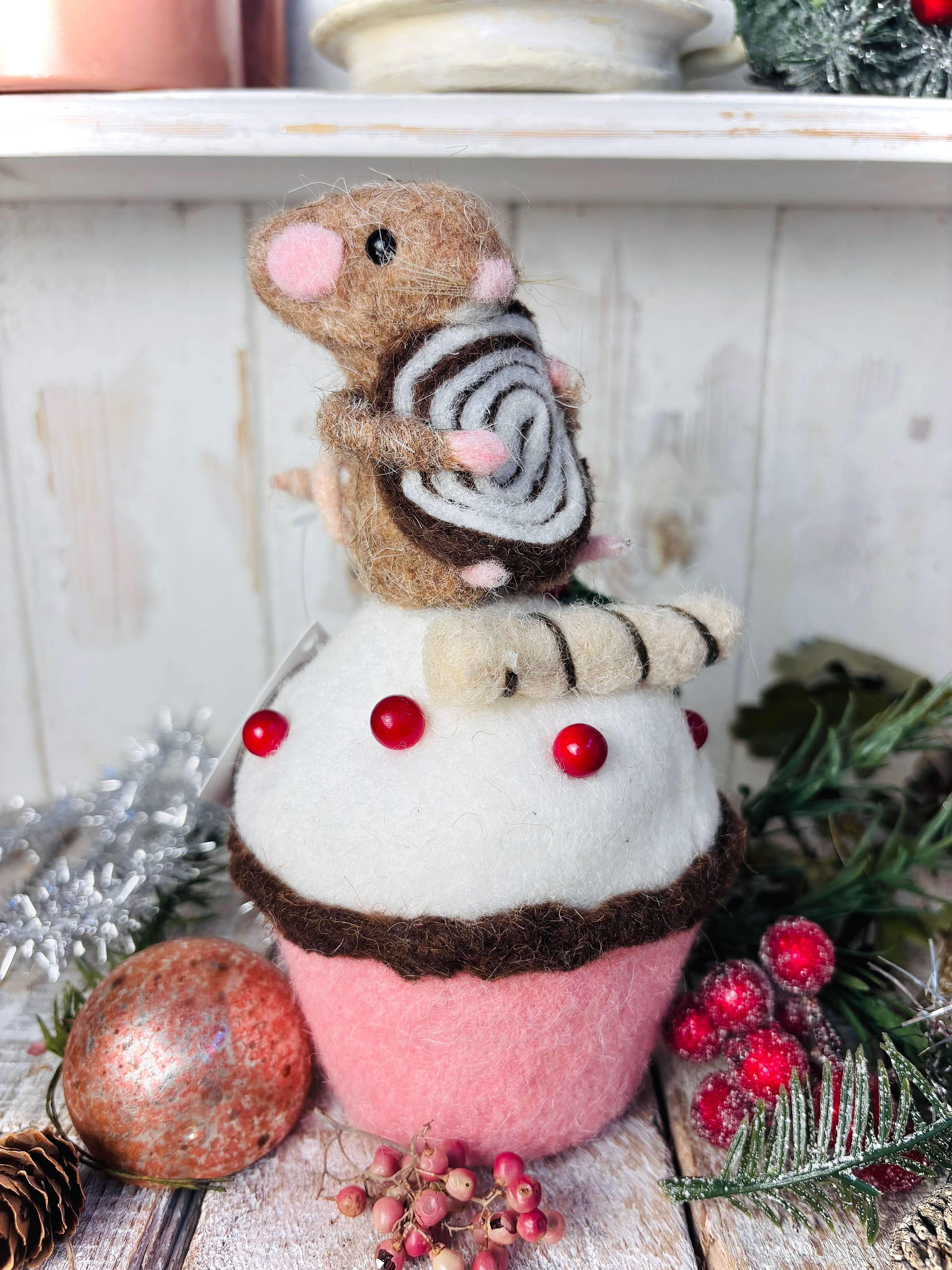 This collection of little mice is entirely calorie-free but will bring a whole lot of sweetness to your Christmas decor! This cute mouse on a cupcake decoration measures 9x9x16cm