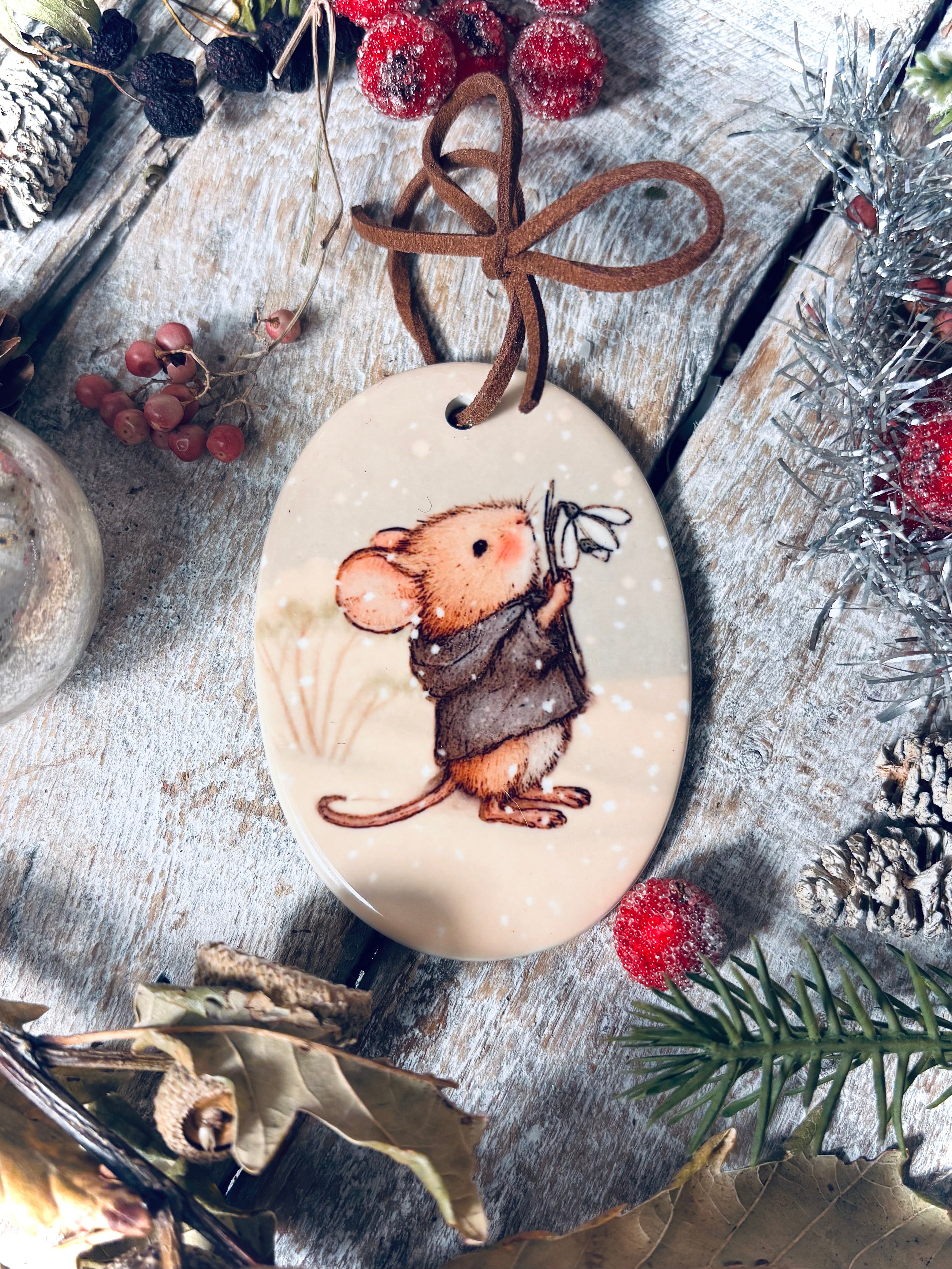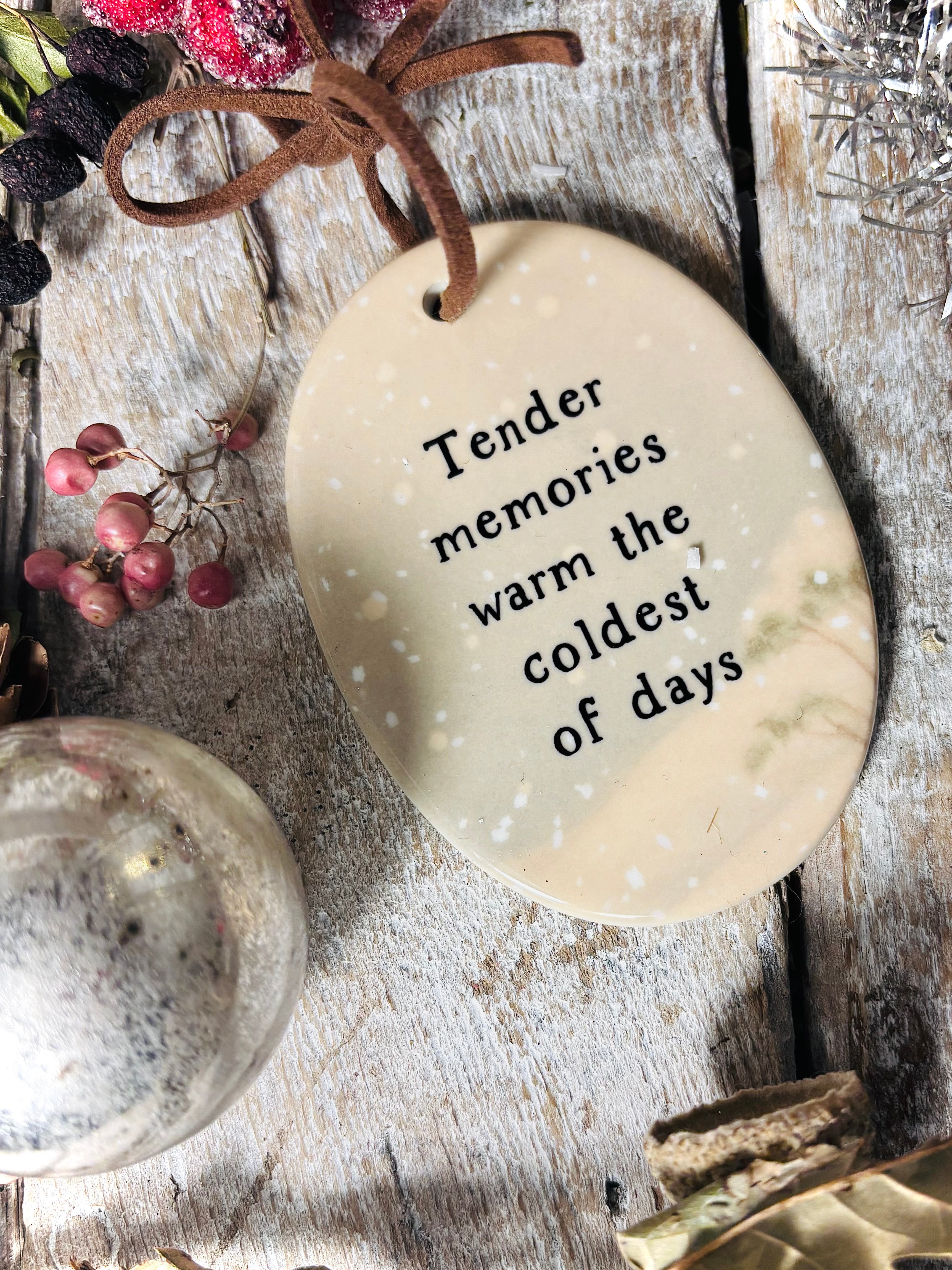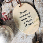 Featuring an adorable little mouse and the wording : “Tender memories warm the coldest of days”
