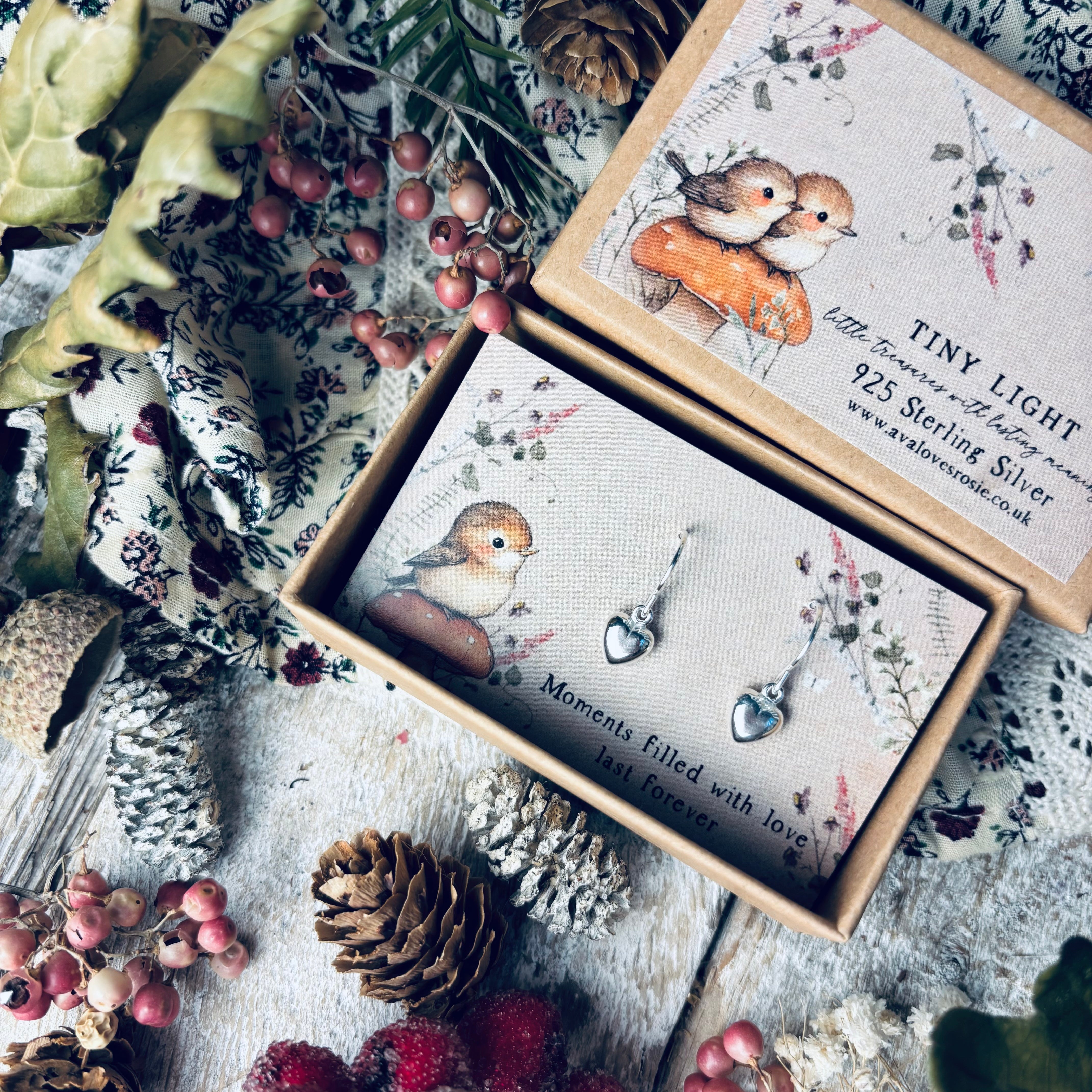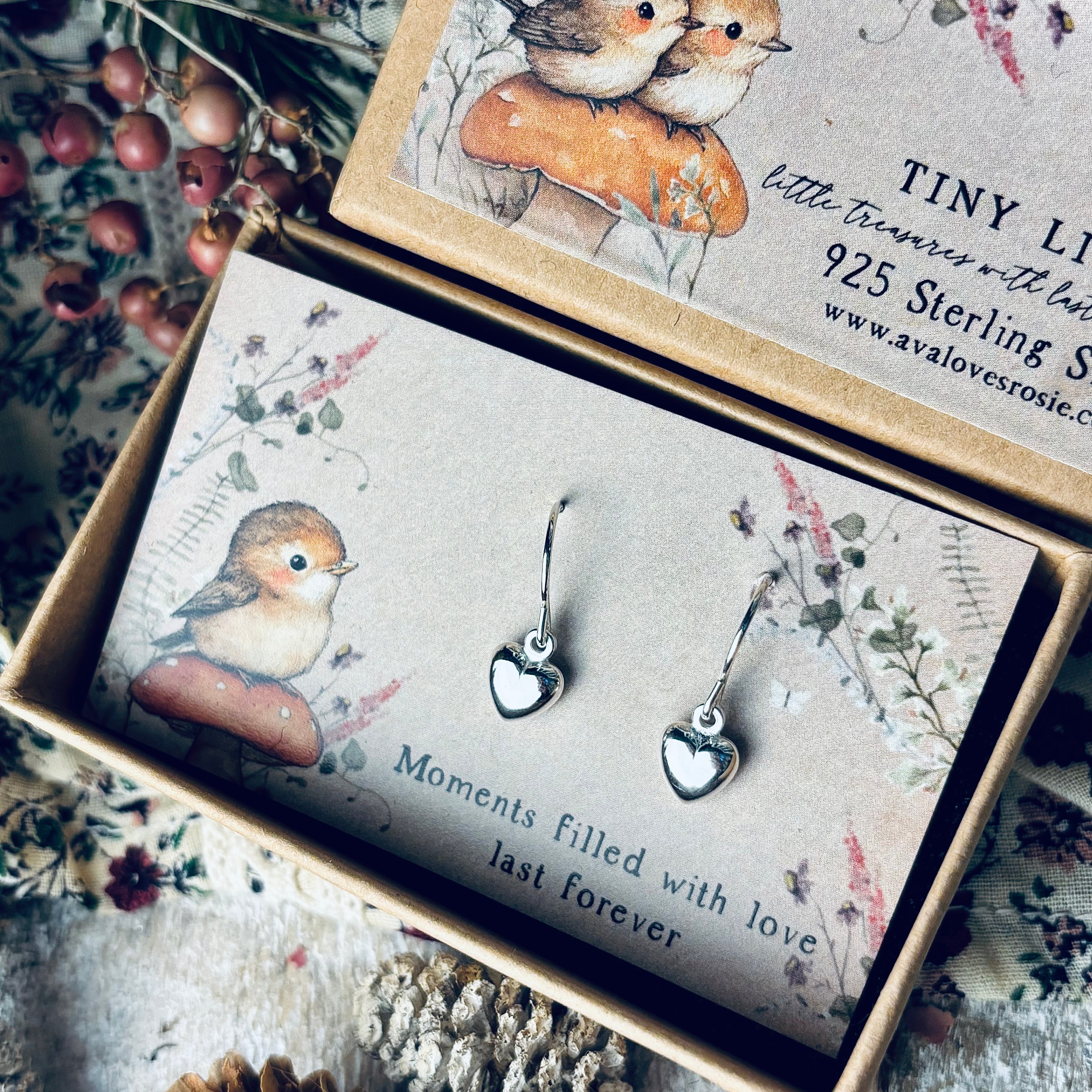 Tiny Light - 925 Sterling Silver Earrings - Heart Drop - Moments Filled With Love Last Forever