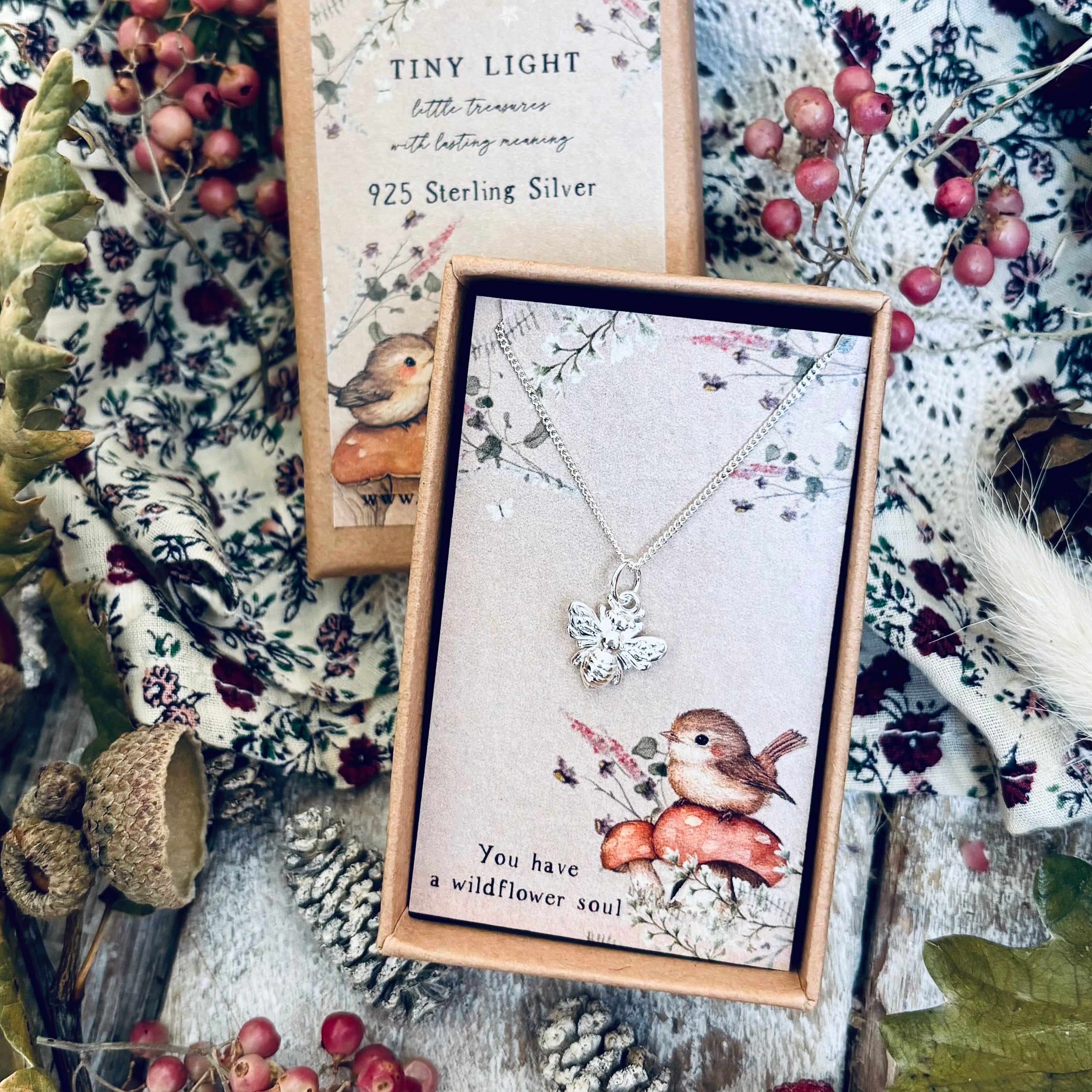 Tiny Light - 925 Sterling Silver Bee Necklace - You Have A Wildflower Soul