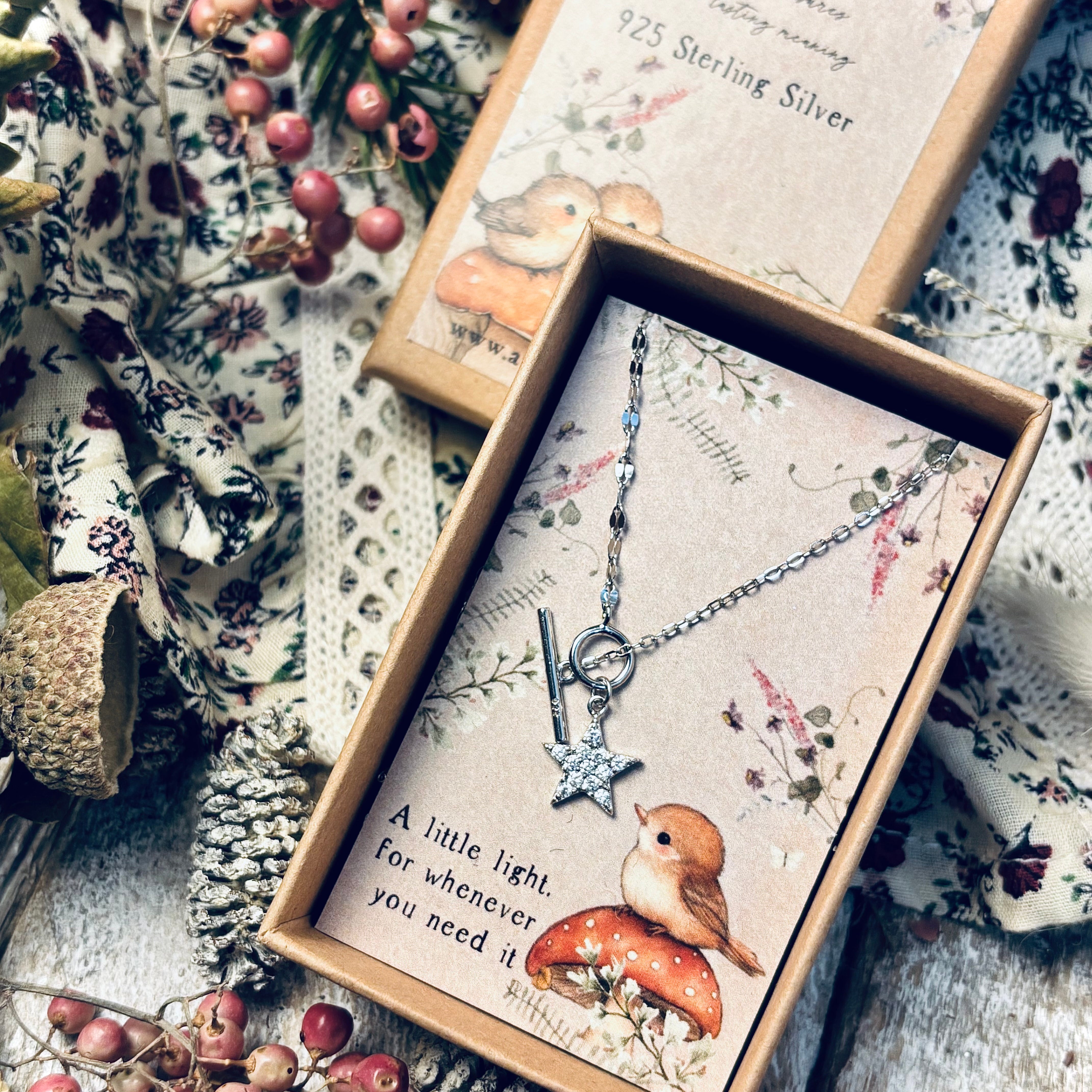 Tiny Light - 925 Sterling Silver - Sparkling Star T-Bar Necklace - A Little Light For Whenever You Need It