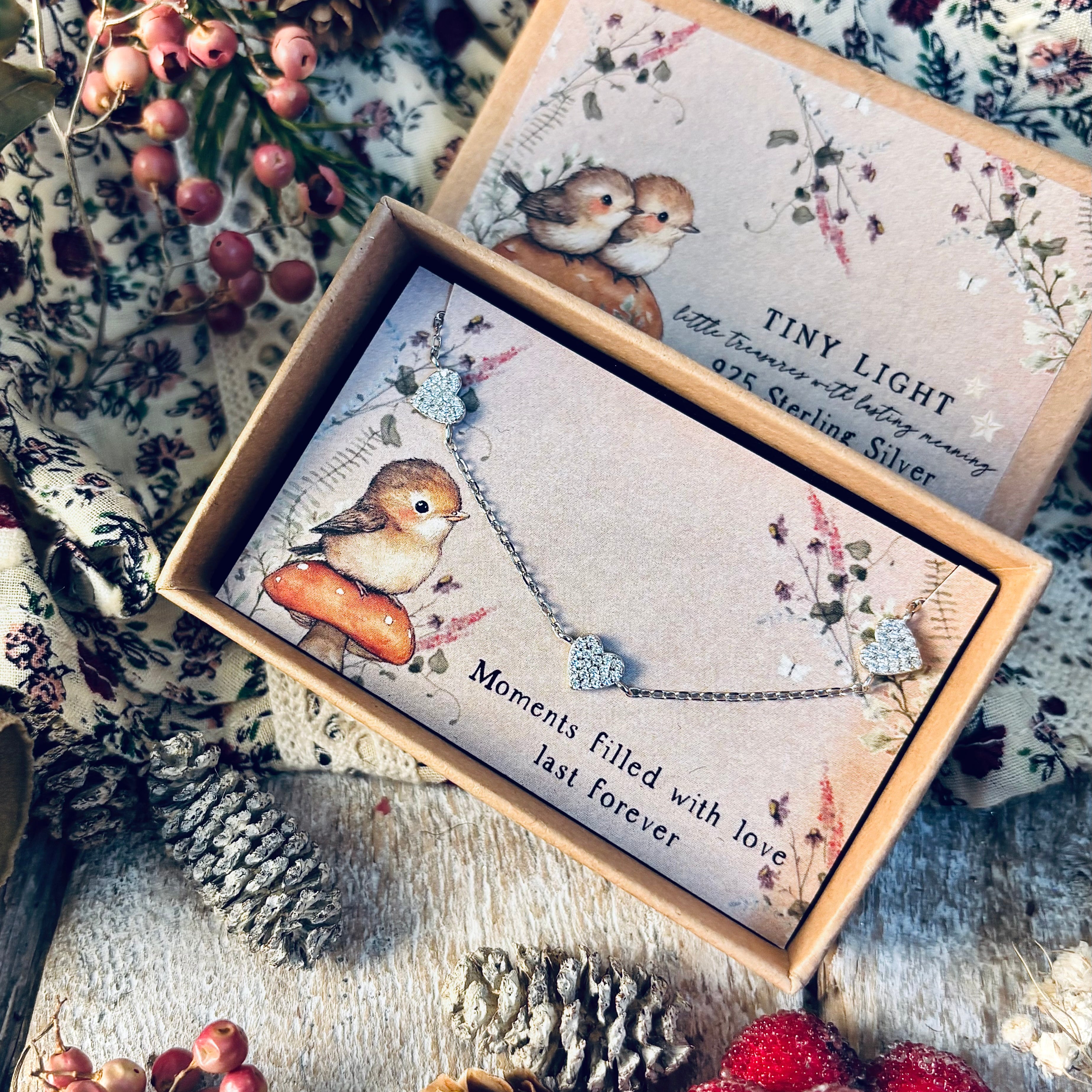 Tiny Light - 925 Sterling Silver Sparkling Heart Bracelet - Moments Filled With Love Last Forever