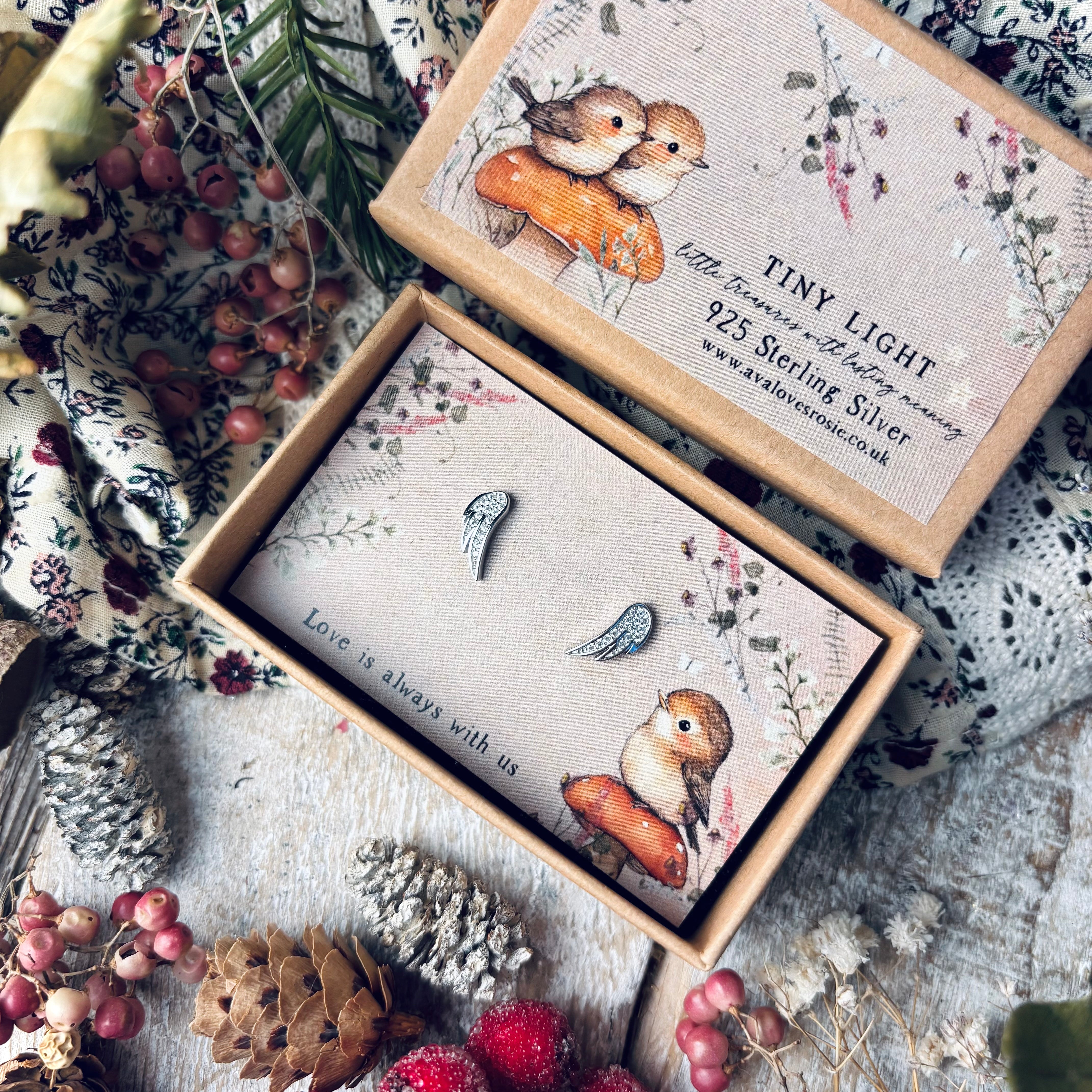Tiny Light - 925 Sterling Silver Earrings -Angel Wing Earrings - Love Is Always With Us