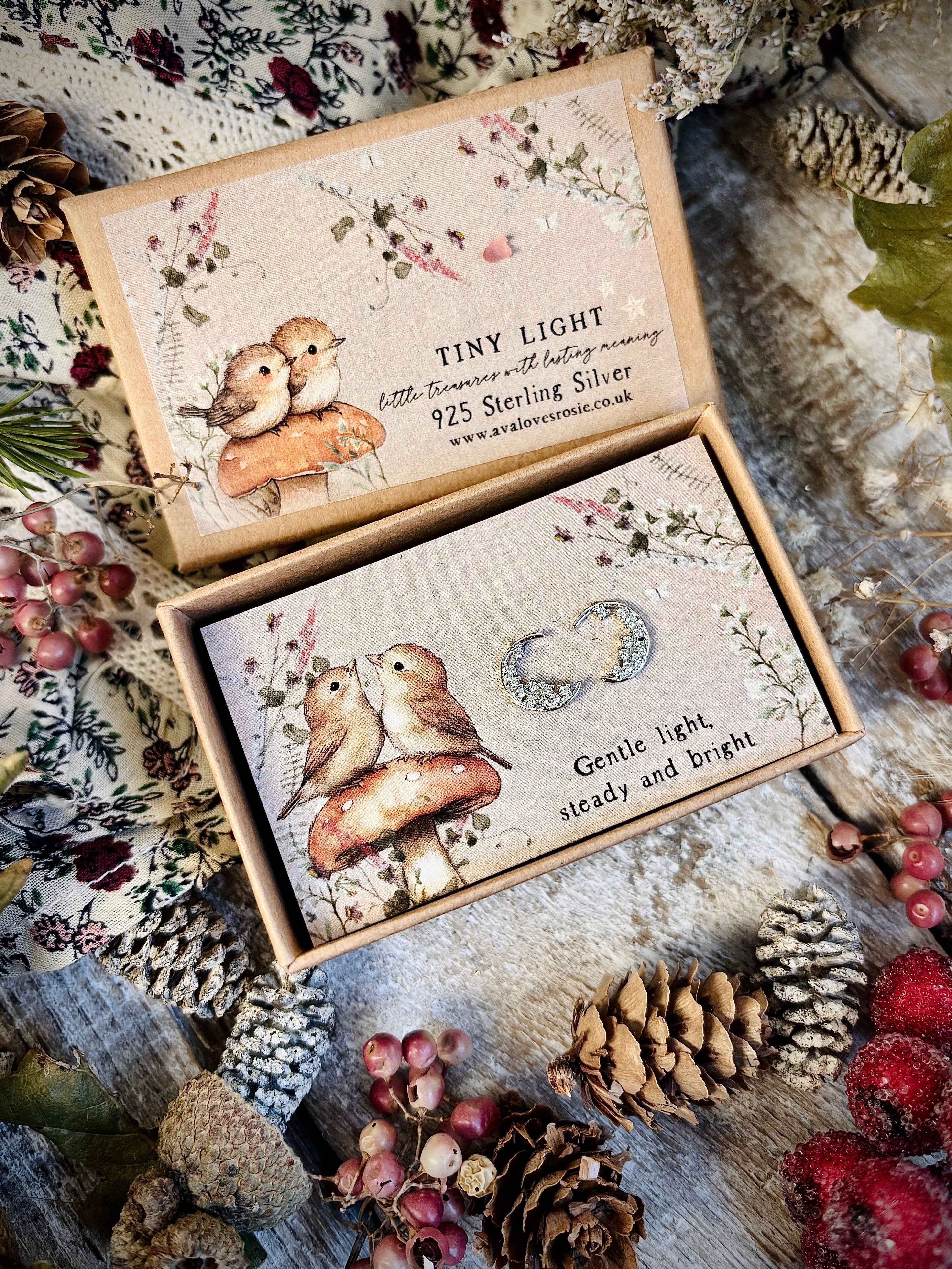 Tiny Light - 925 Sterling Silver Crescent Moon Earrings - Gentle Light, Steady And Bright