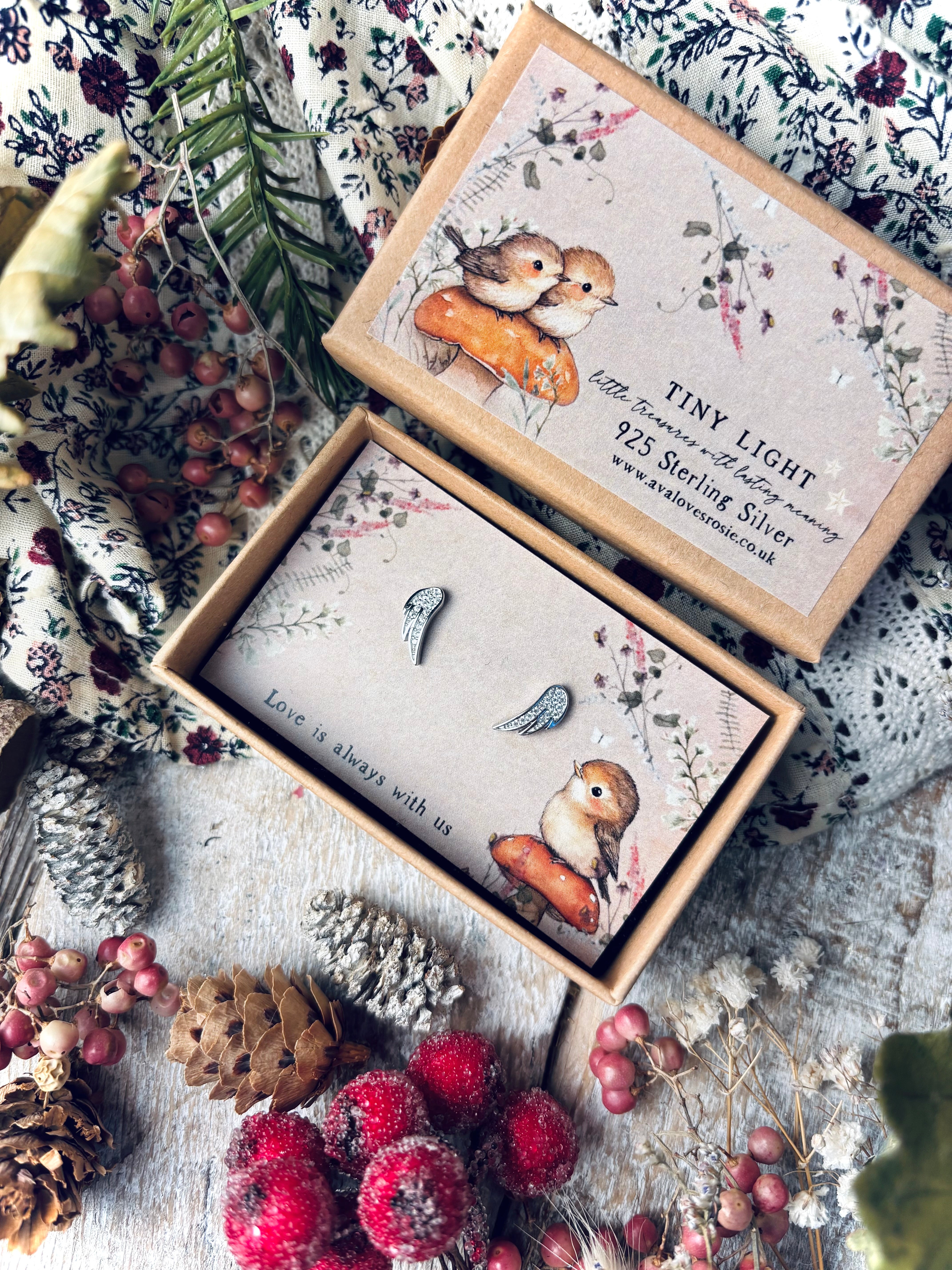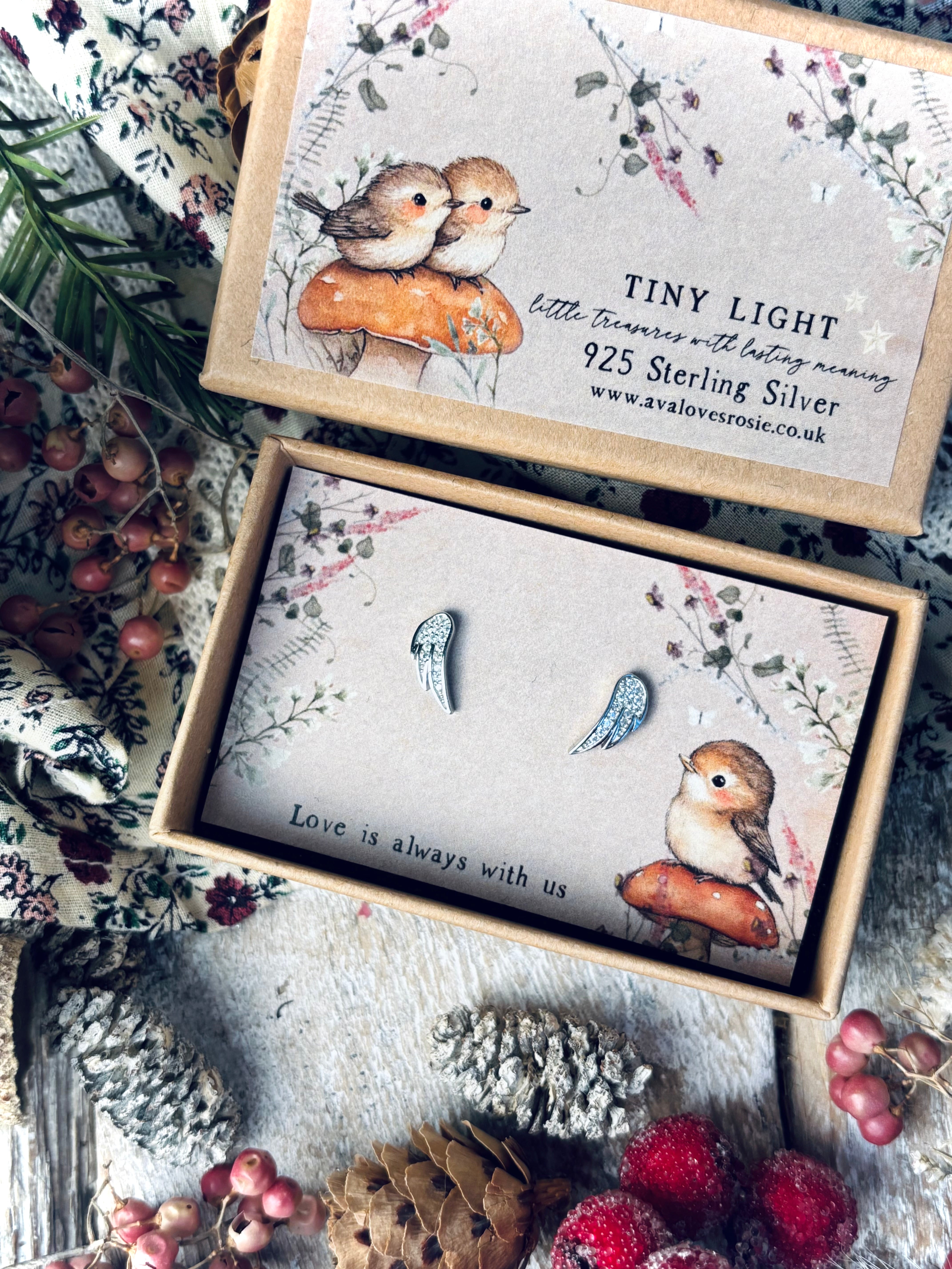 Tiny Light - 925 Sterling Silver Earrings -Angel Wing Earrings - Love Is Always With Us