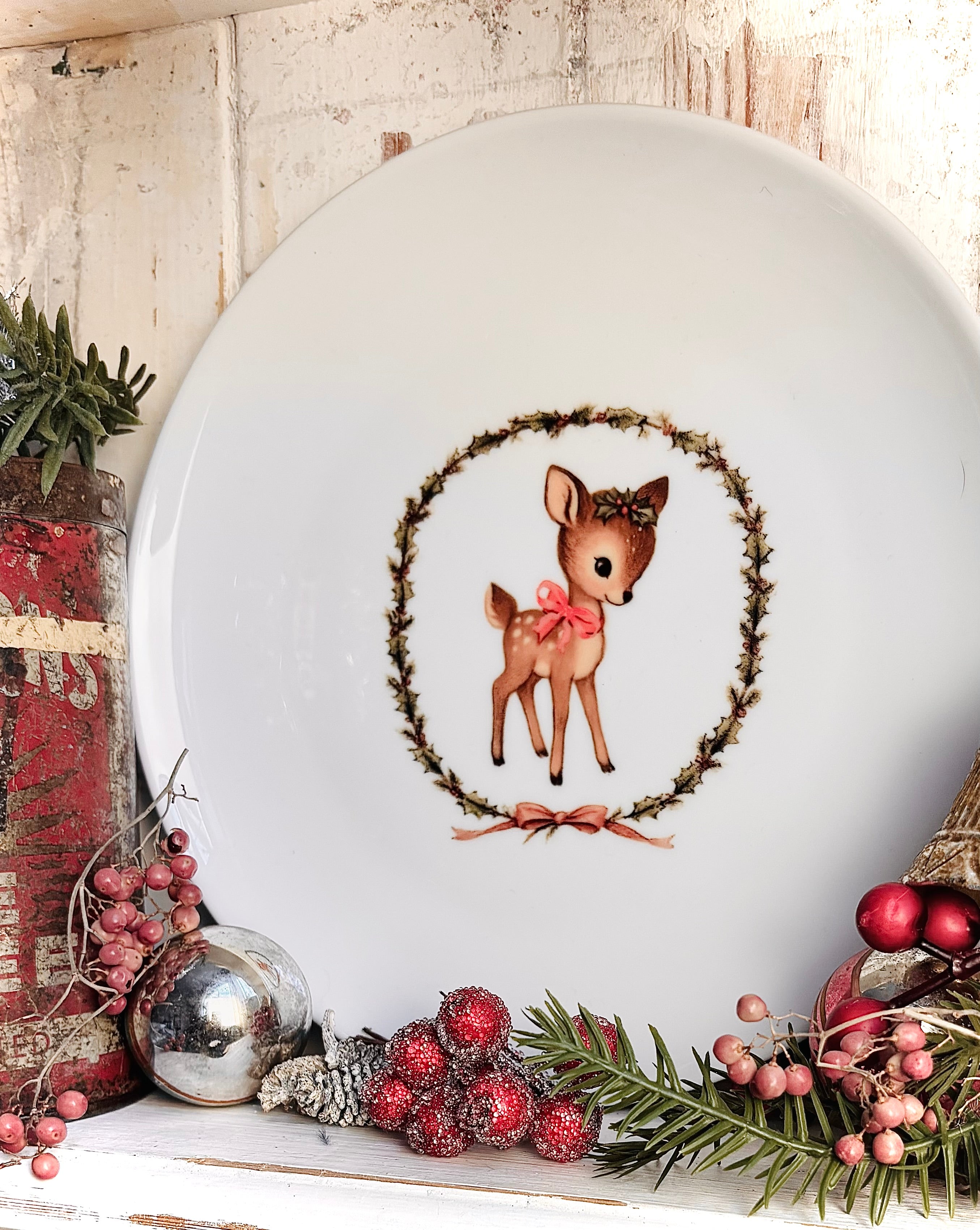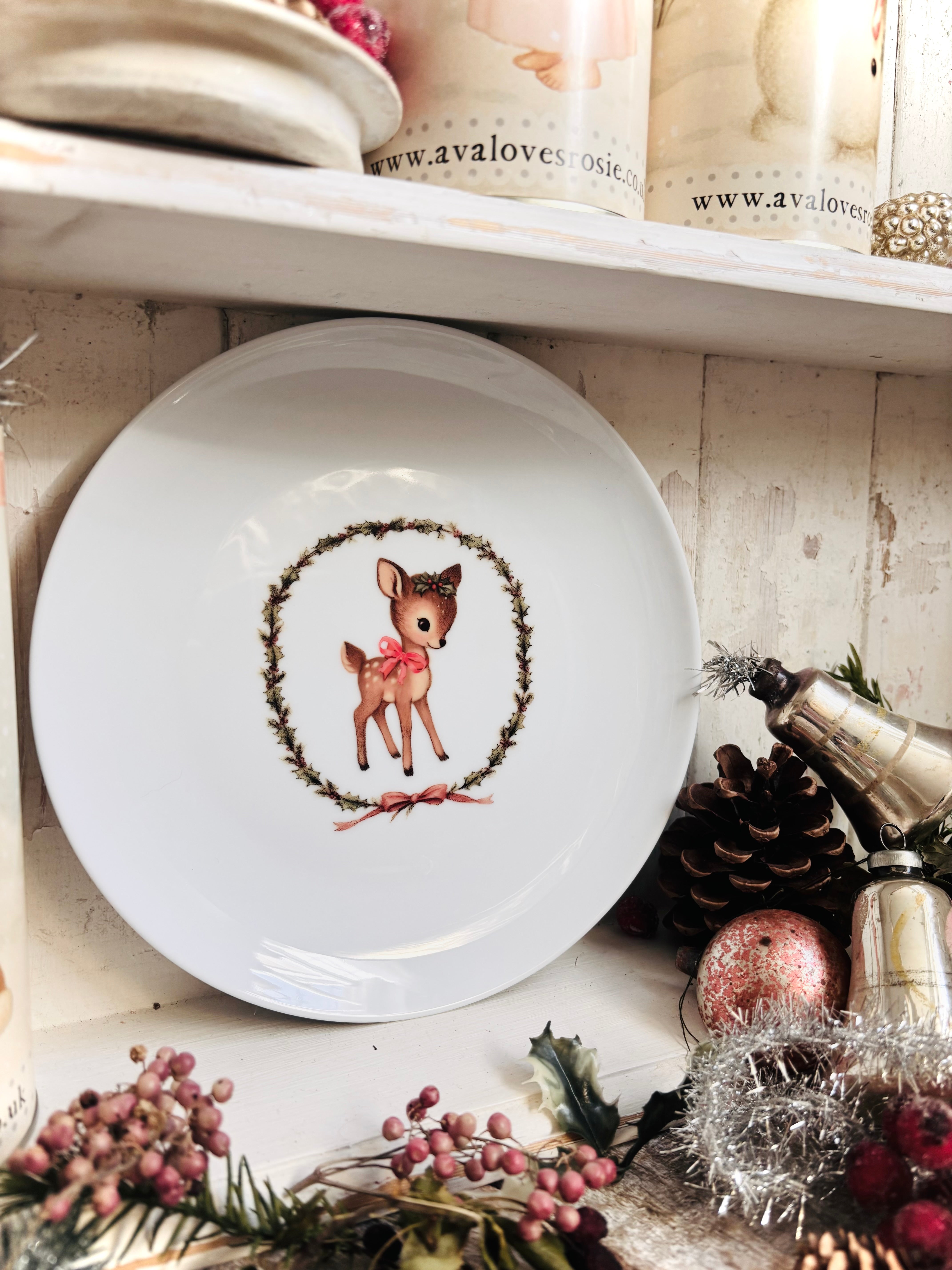 This adorable little plate measures 8 inches in diameter and is perfect for adding a little cute vintage inspired charm to your home throughout Christmas.