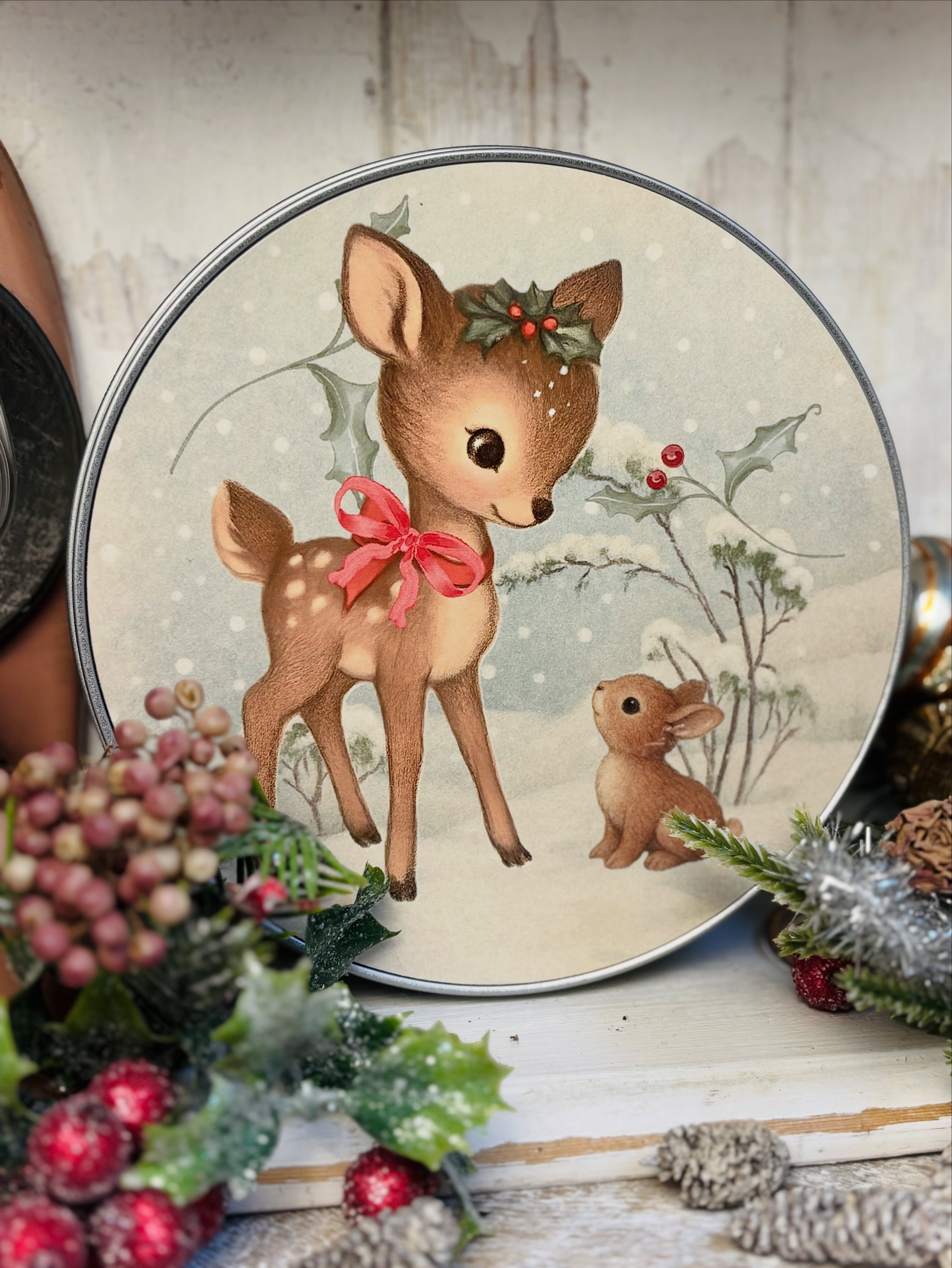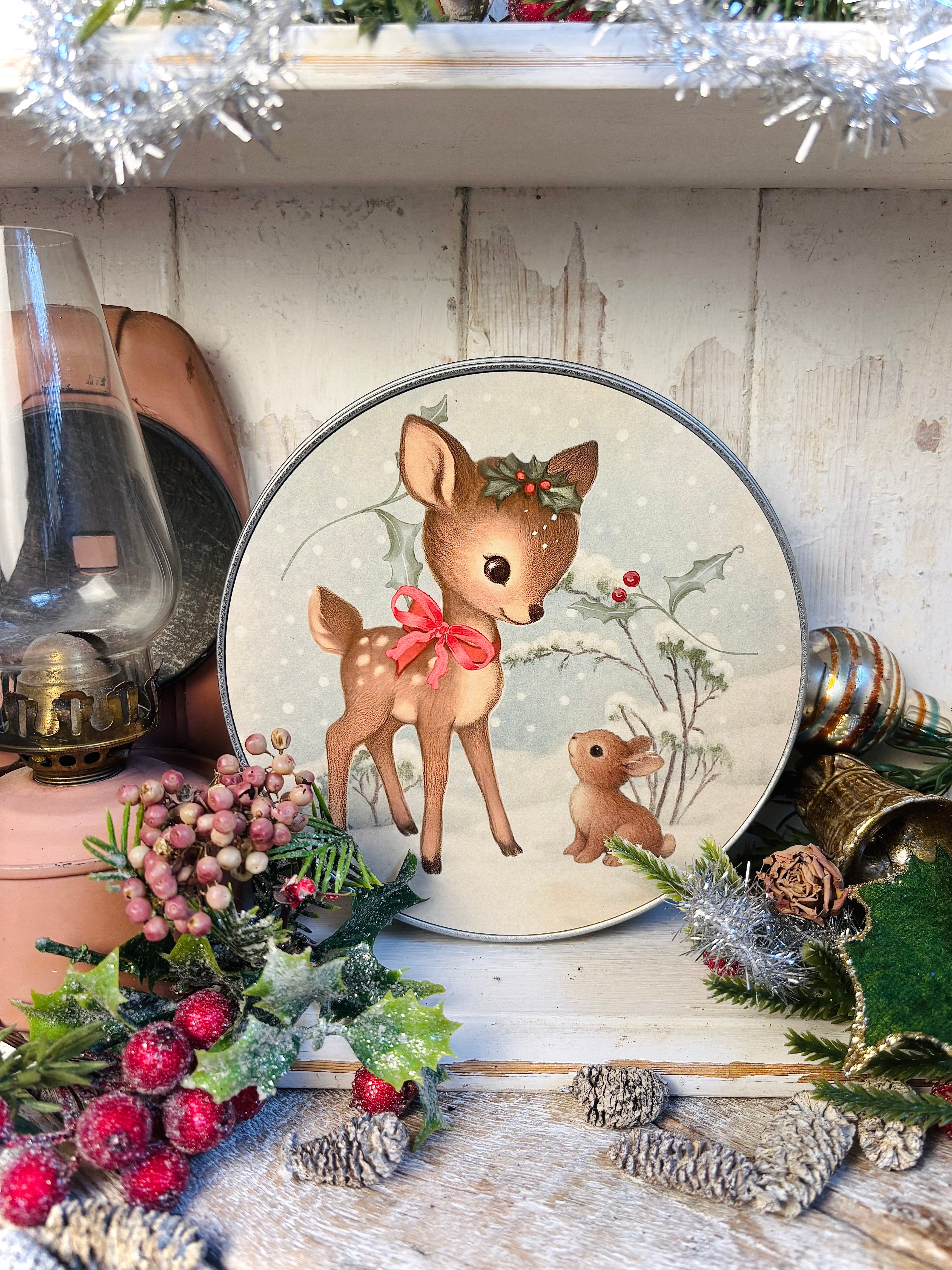 So cute and so full of happy nostalgia, the illustration on this aluminium tin will add a touch of vintage charm to your home this Christmas.