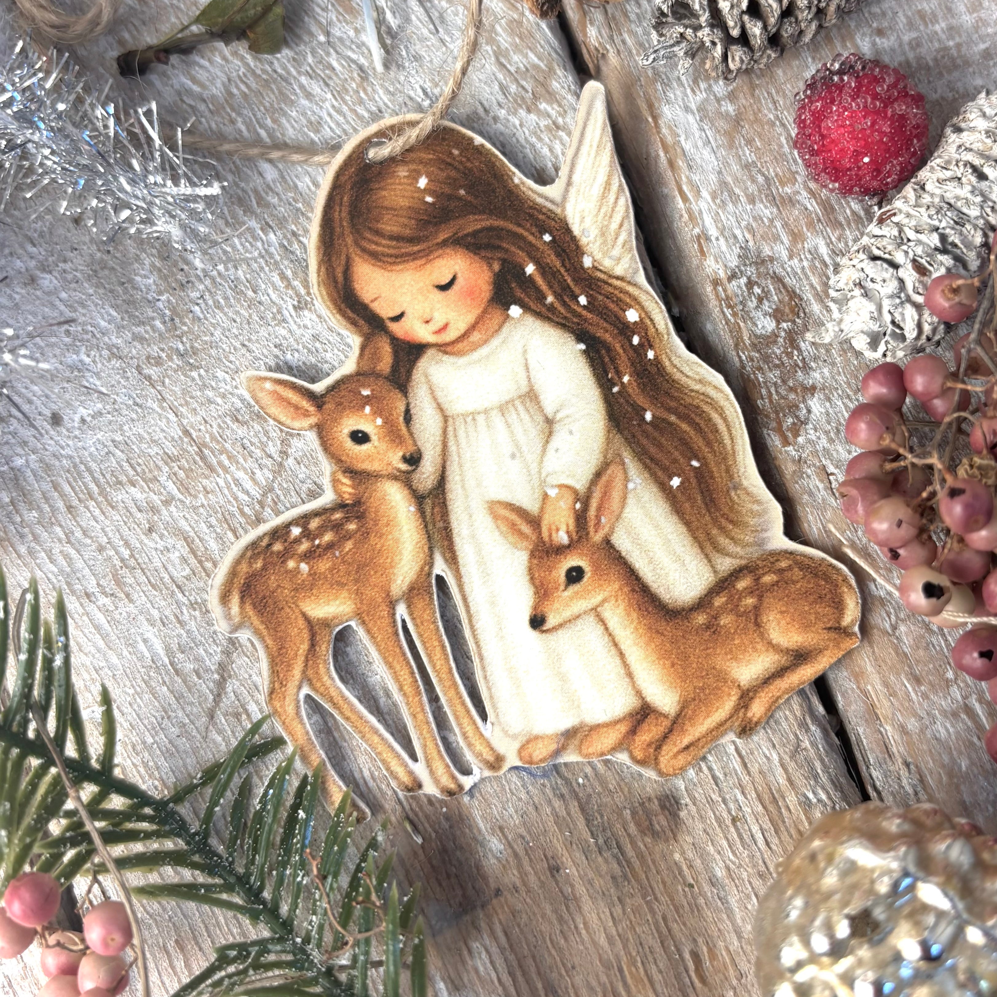 Nostalgic Christmas Decoration/Tag - Angel With Deer