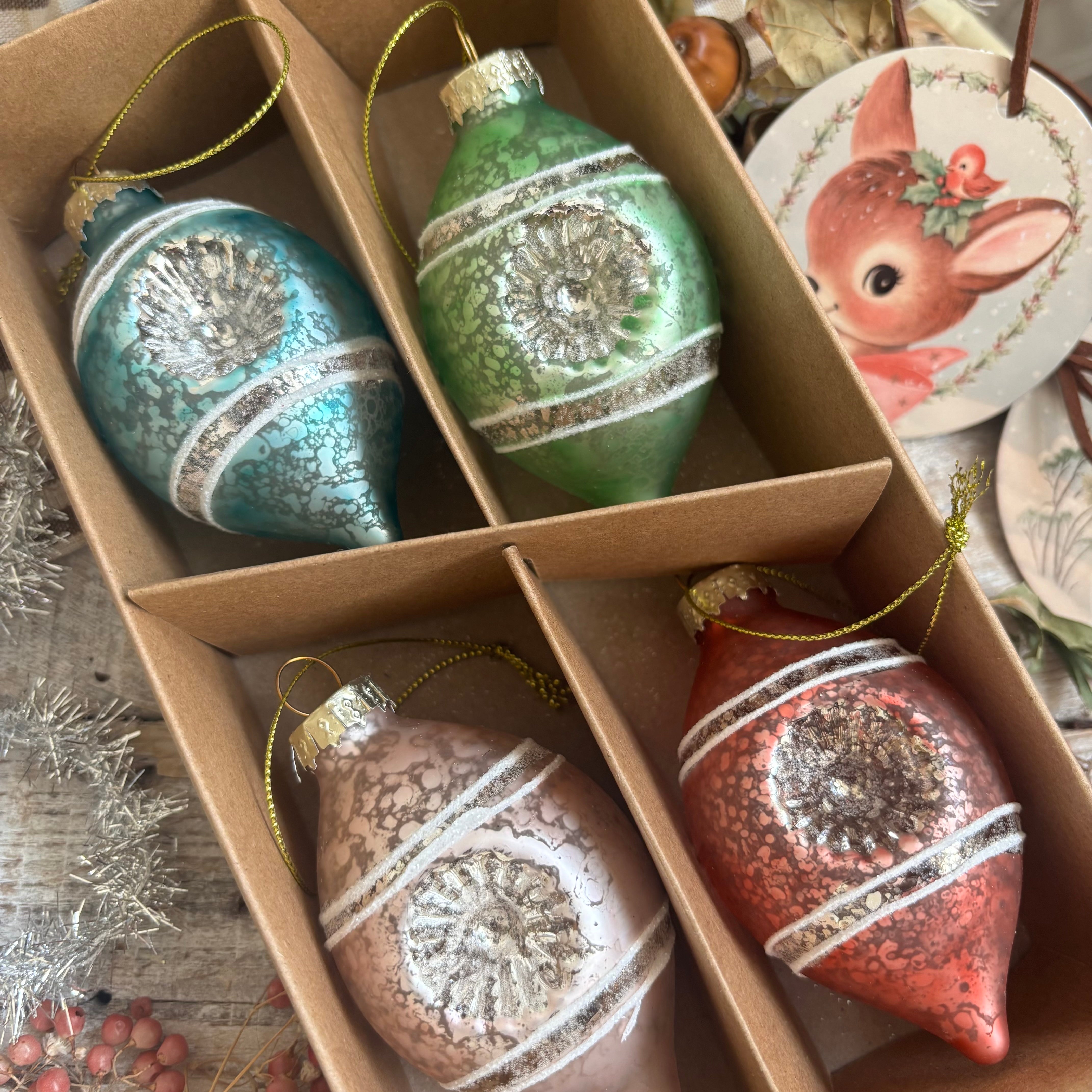Vintage Style Baubles - Box Of Four - Pastel Hues