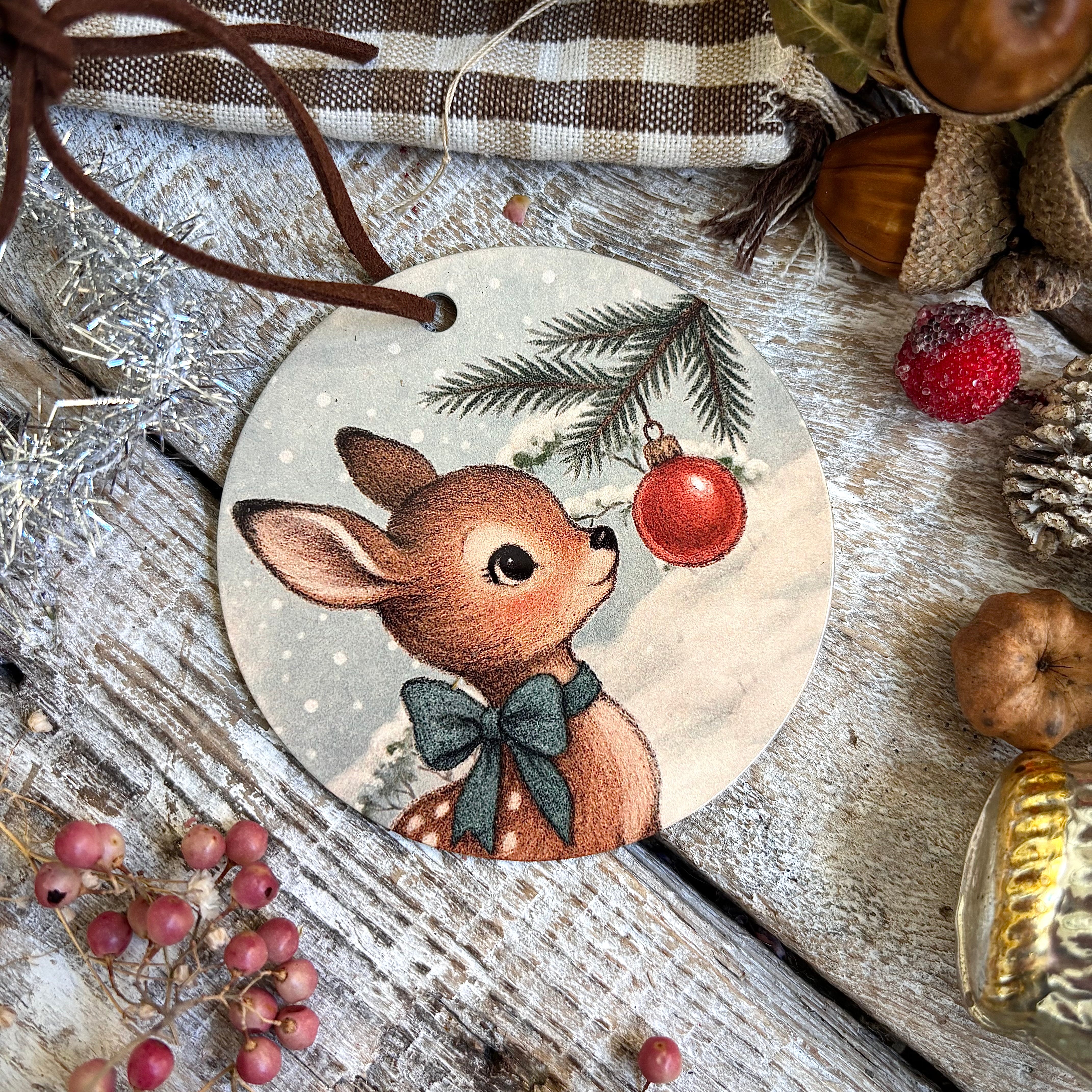 Vintage Style Christmas Decoration - Cute Deer With Bauble