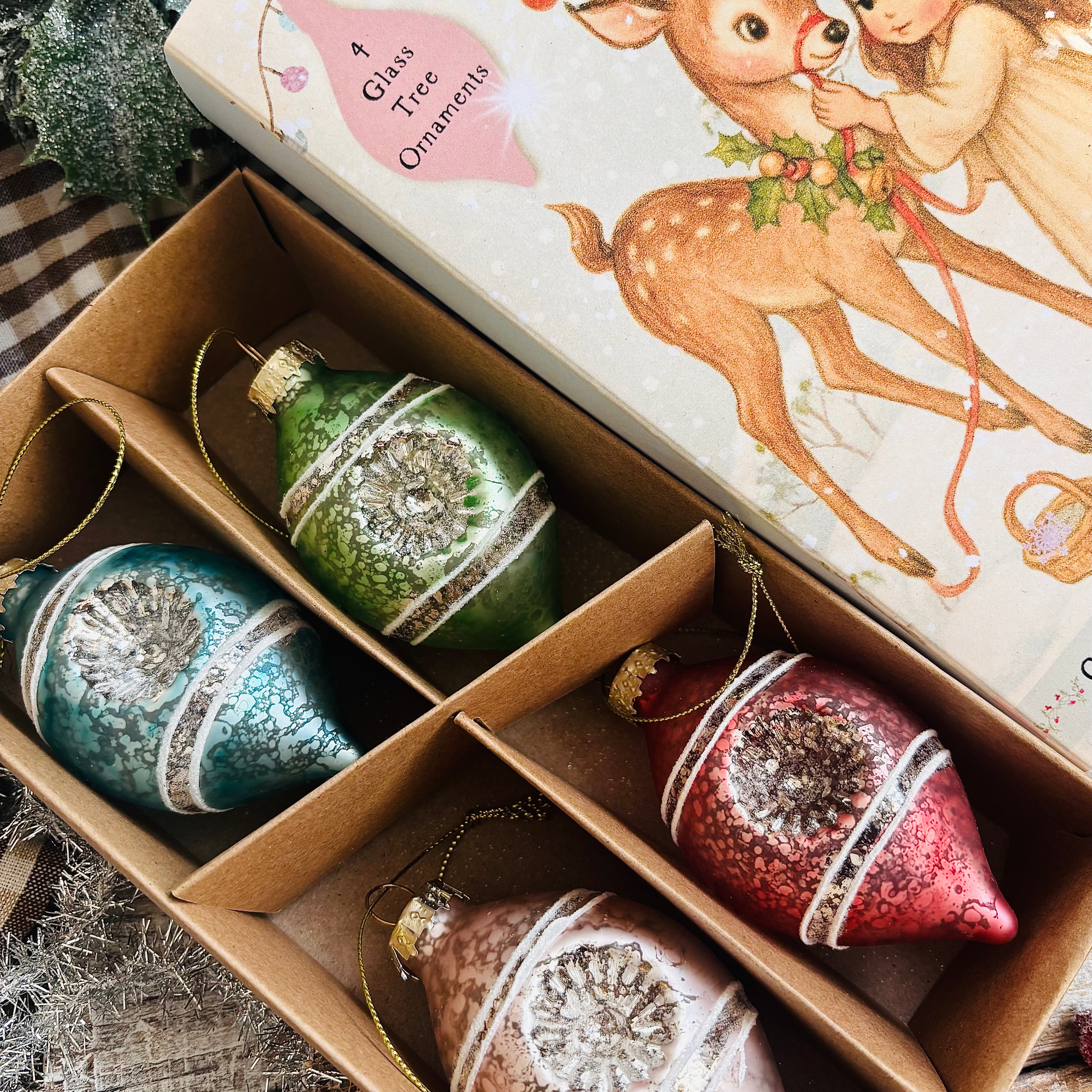 Vintage Style Baubles - Box Of Four - Jewel Hues