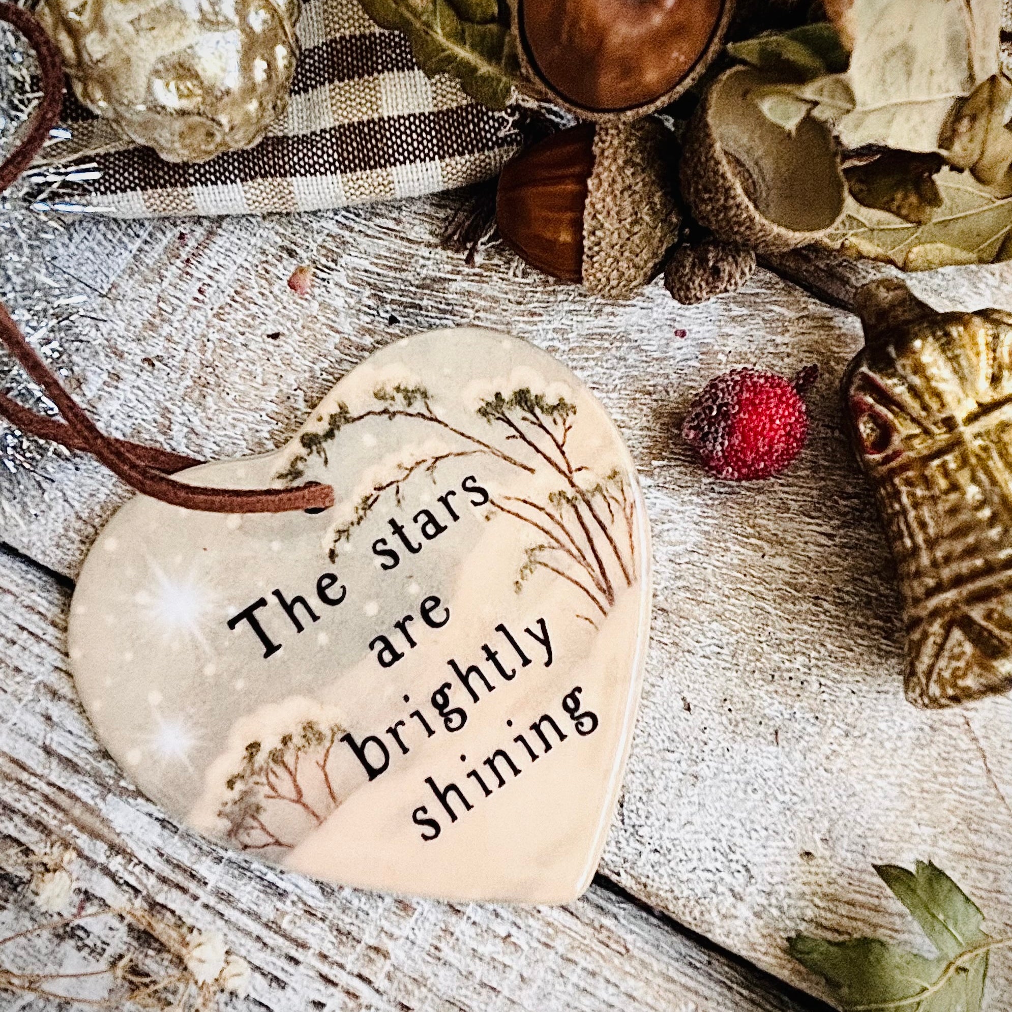 Christmas - Sweet Little Ceramic Heart - The Stars Are Brightly Shining