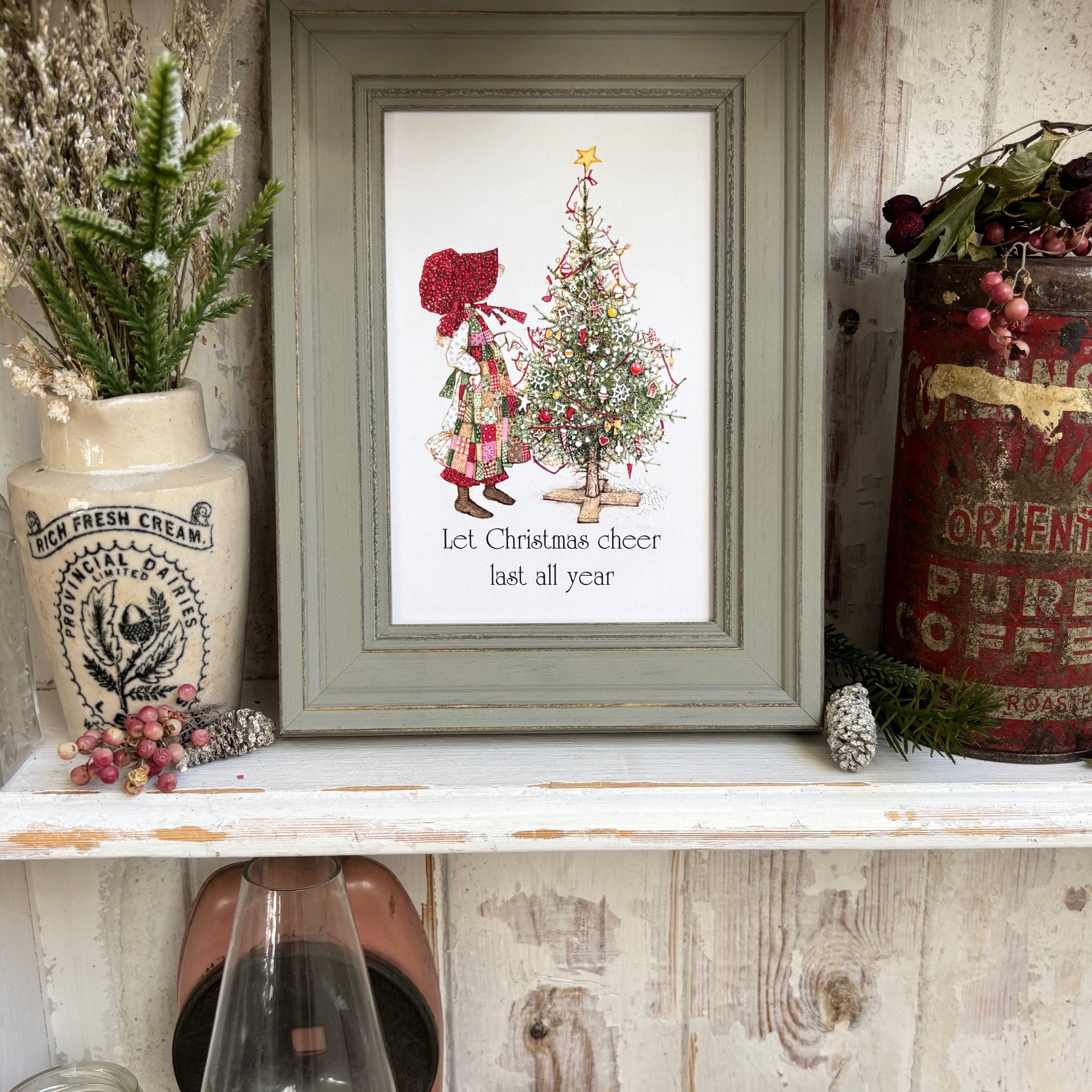 Framed Holly Hobbie Postcard - Let Christmas Cheer Last All Year