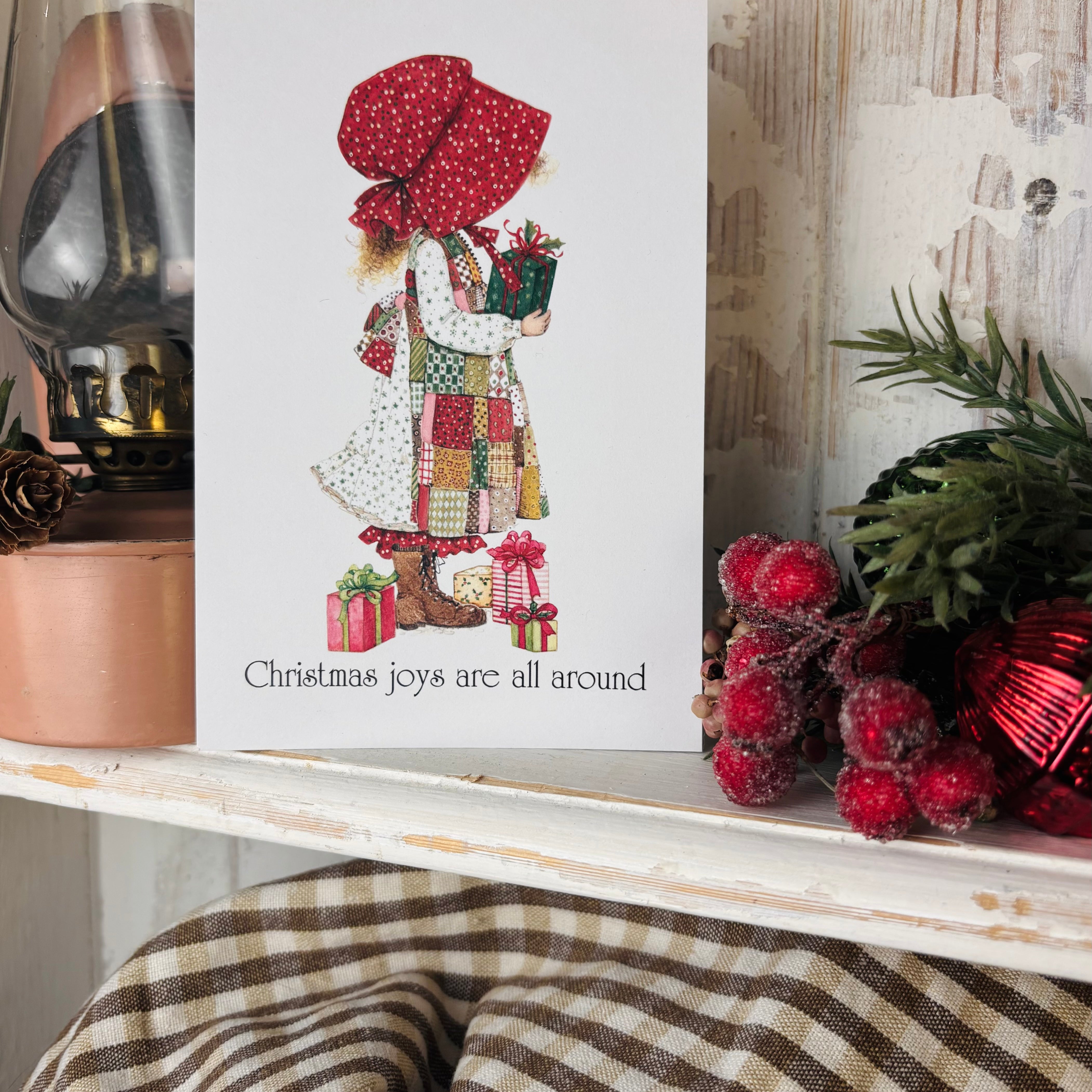 Framed Holly Hobbie Postcard - Christmas Joys Are All Around