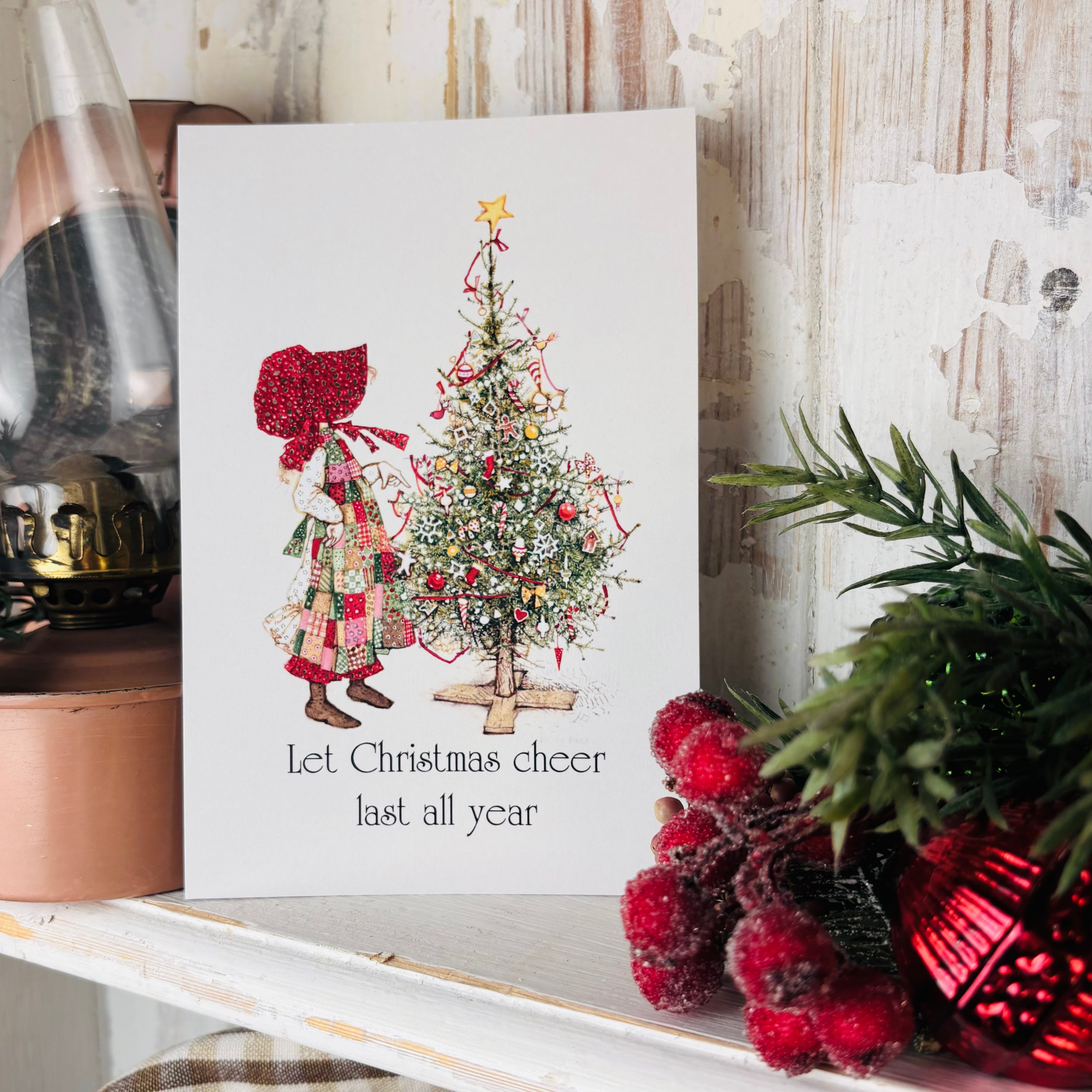 Holly Hobbie Postcard - Let Christmas Cheer Last All Year