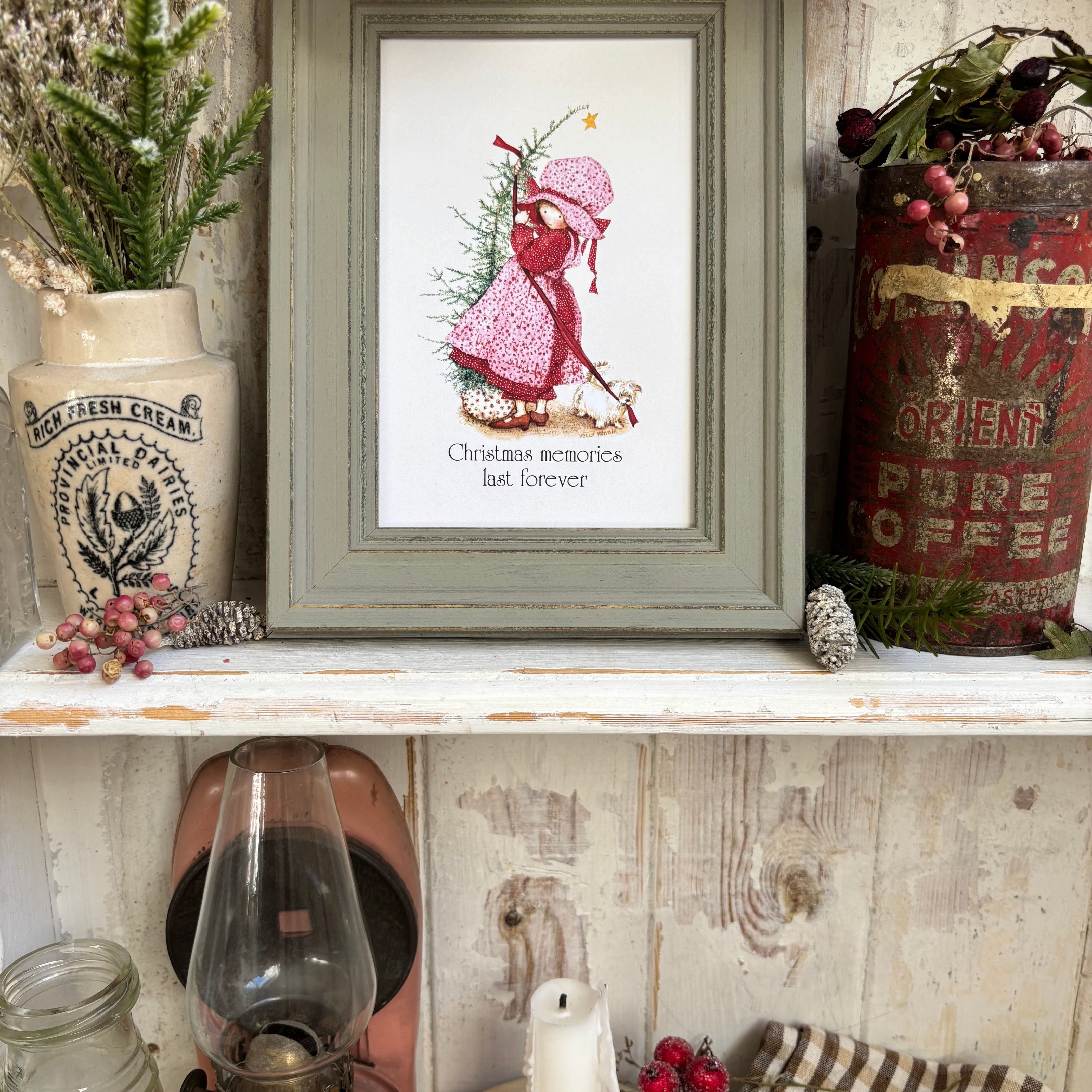 Framed Holly Hobbie Postcard - Christmas Memories Last Forever