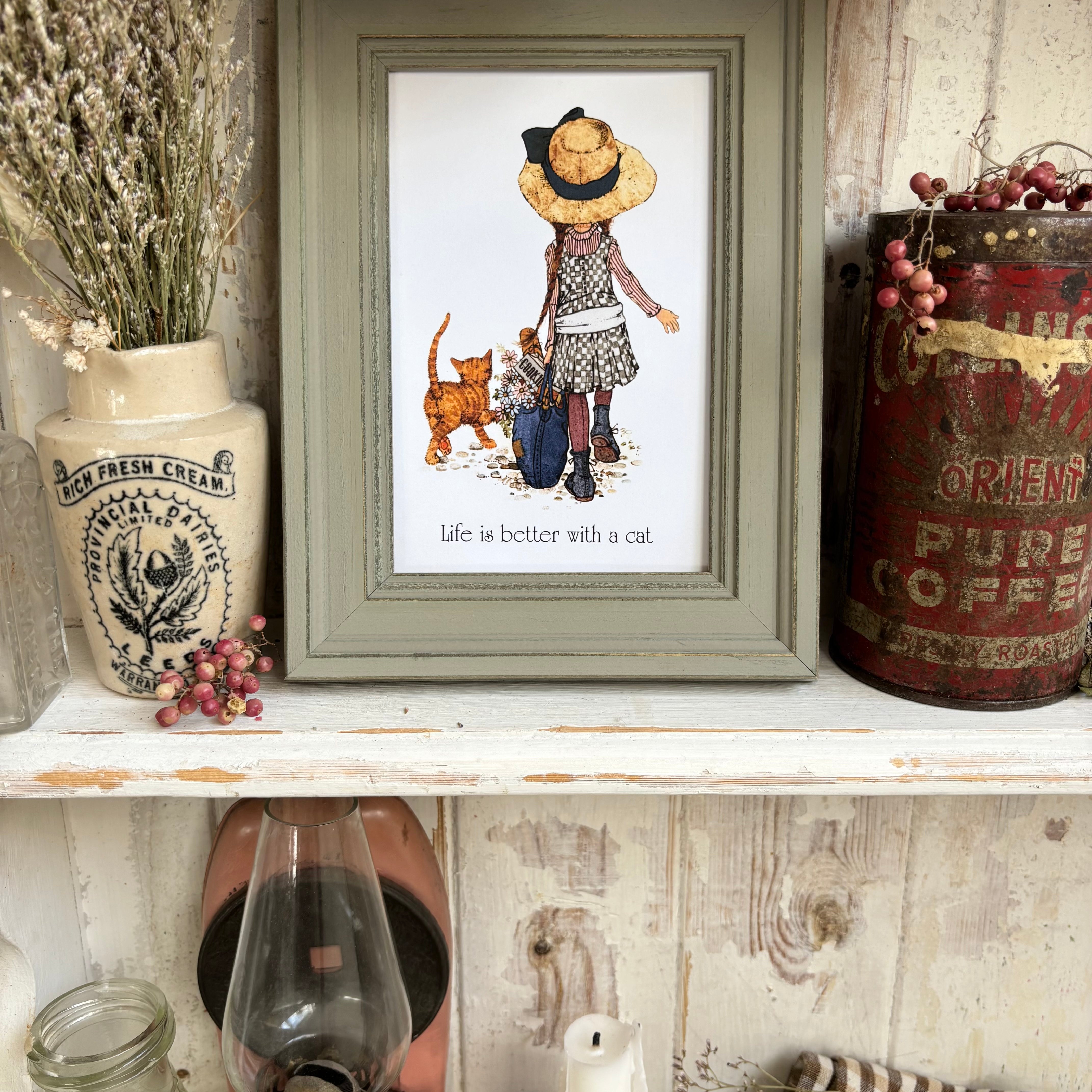 Framed Holly Hobbie Postcard - Life Is Better With A Cat