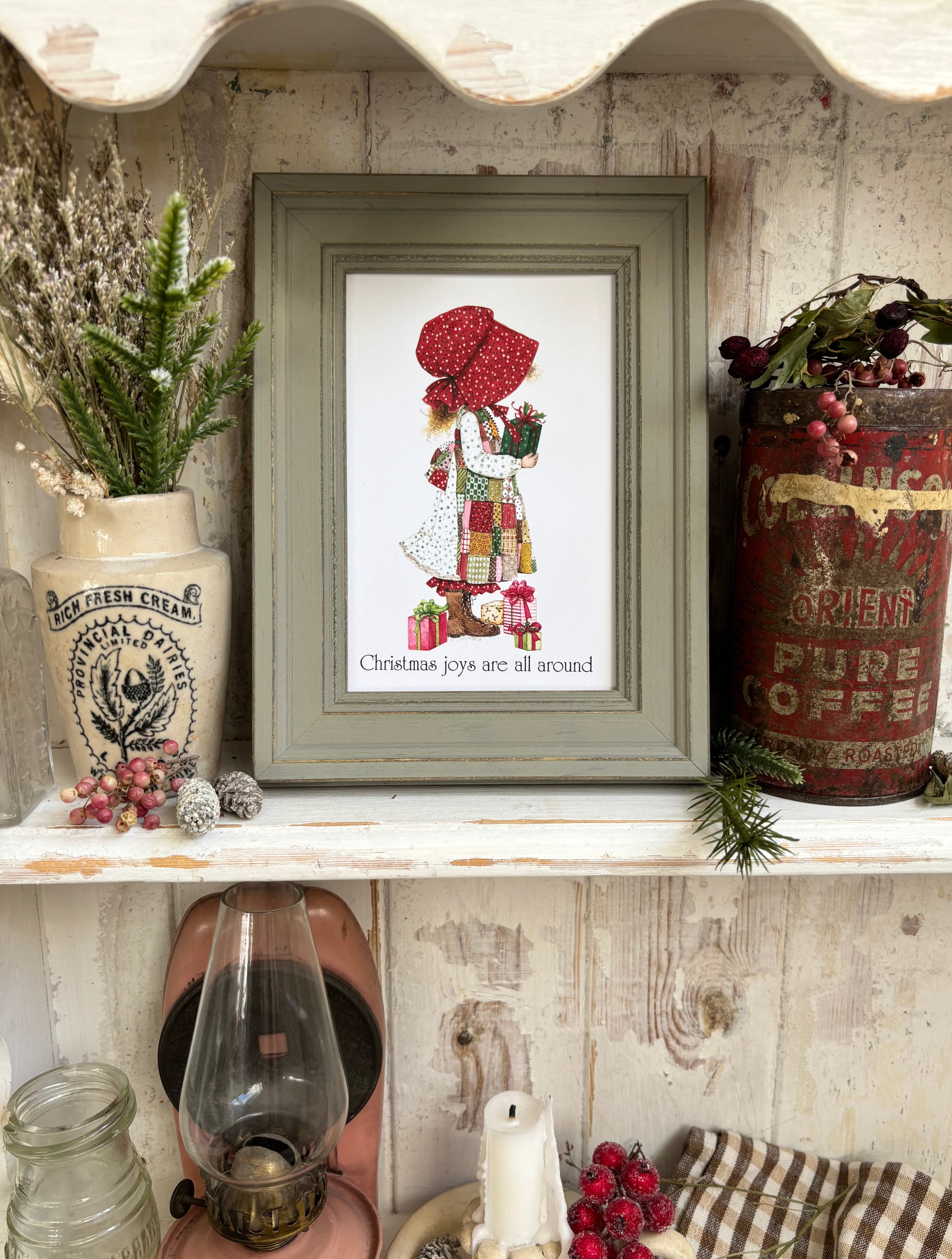 Framed Holly Hobbie Postcard - Christmas Joys Are All Around