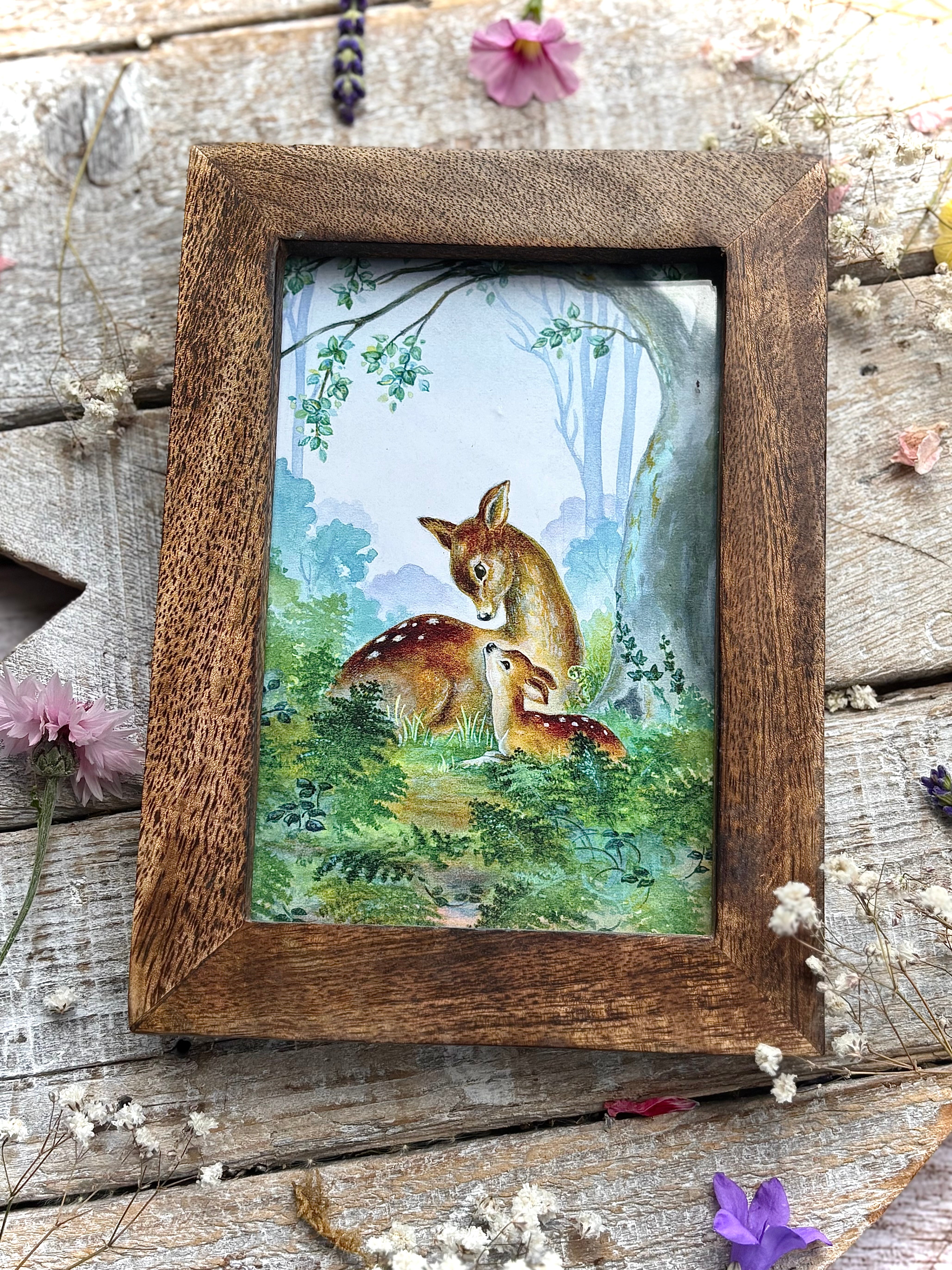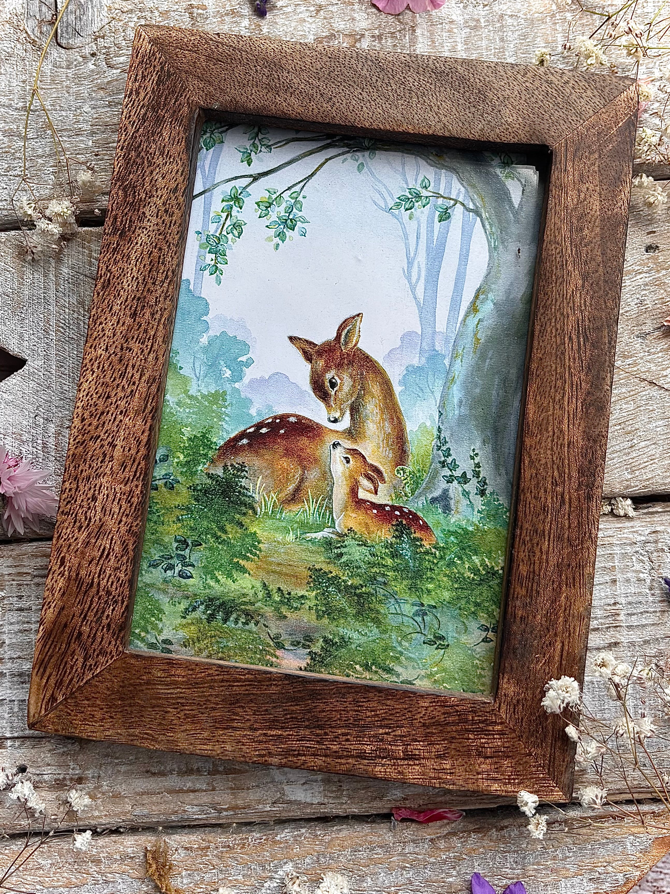 Doe & Fawn In Woodland - Margaret Lynes - Framed Postcard