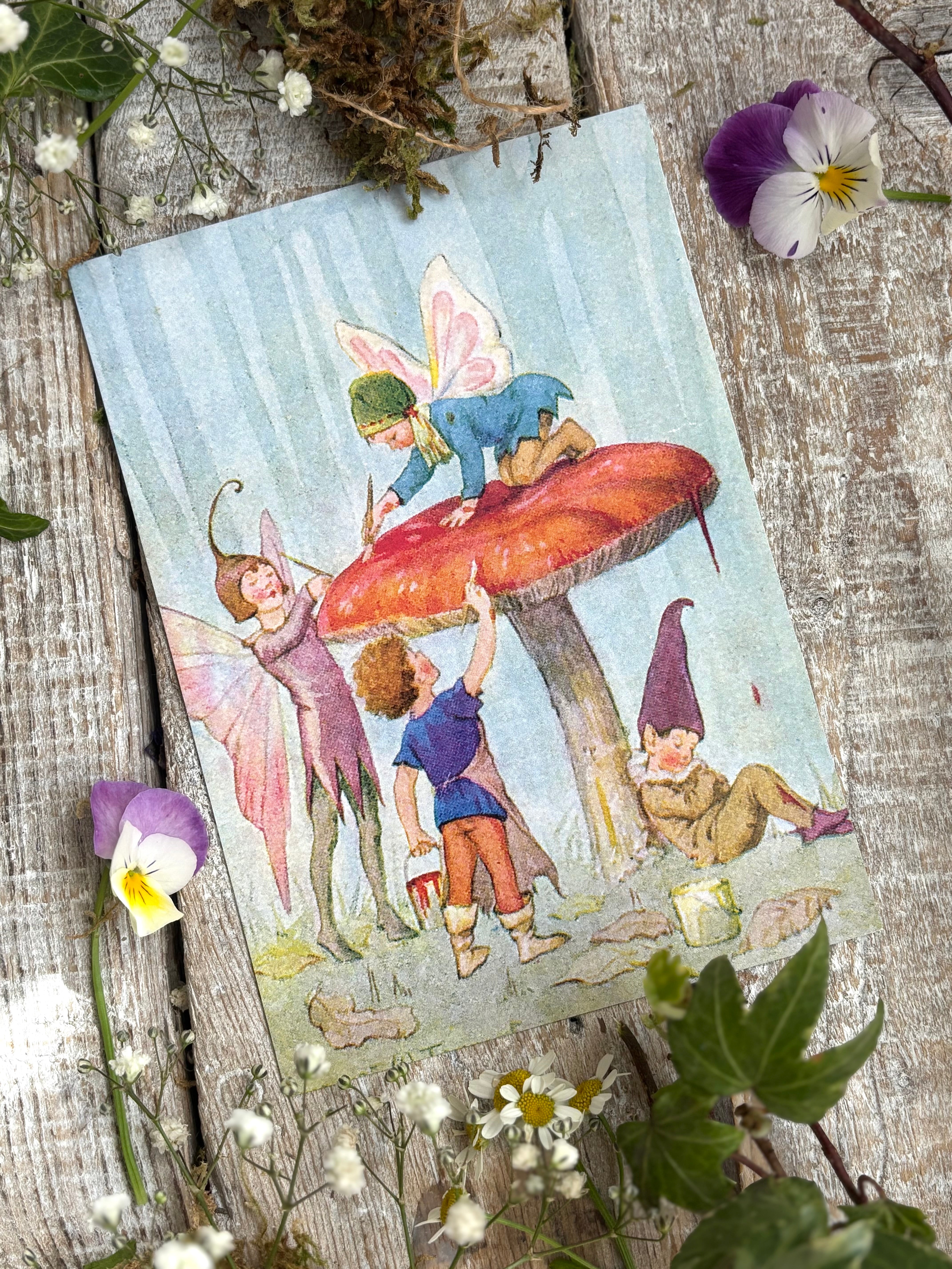 Postcard - Painting The Toadstools - Margaret Tarrant