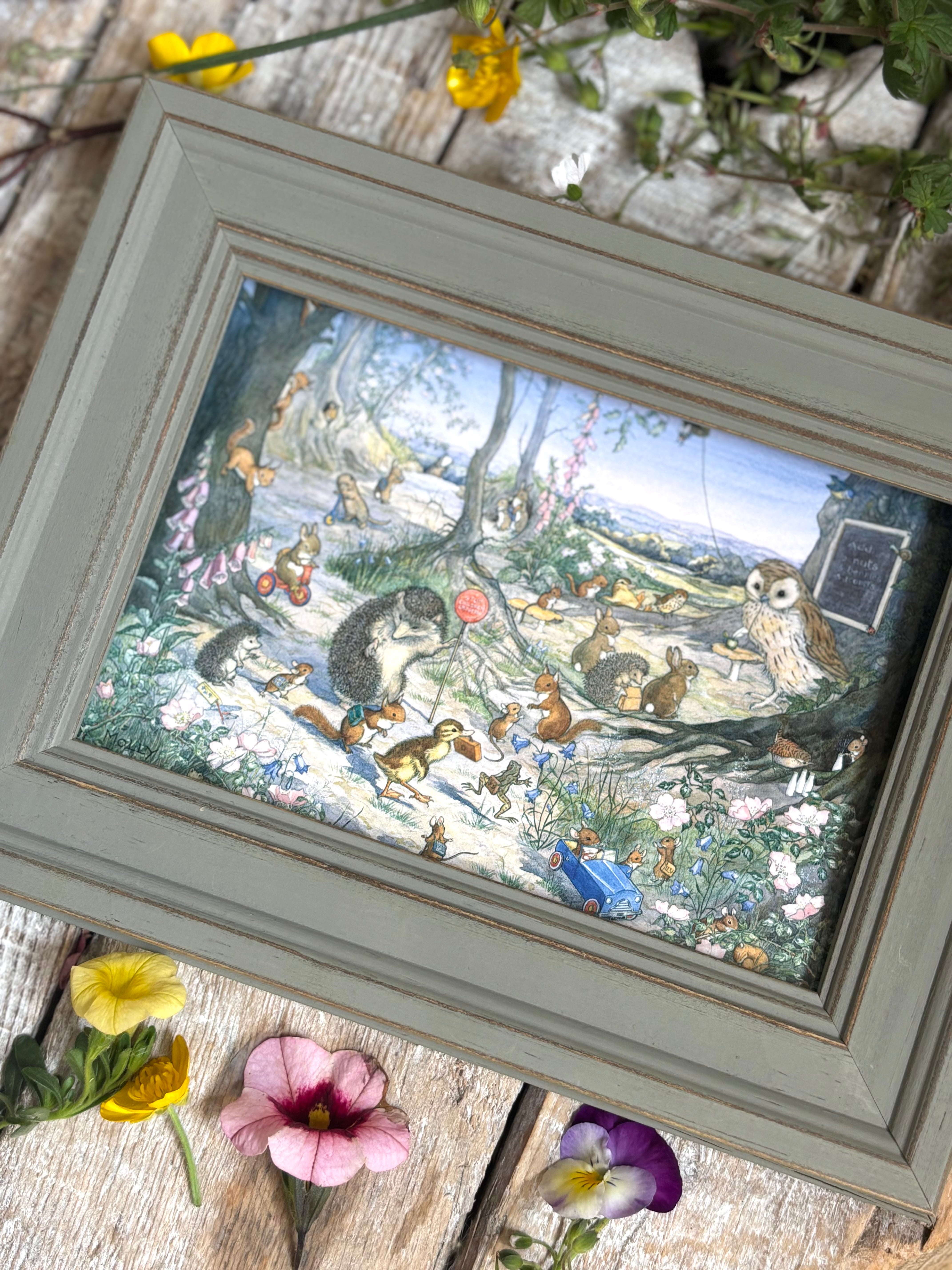 This beautiful Molly Brett postcard by The Medici Society has been framed in a sweet, rustic style sage coloured frame.