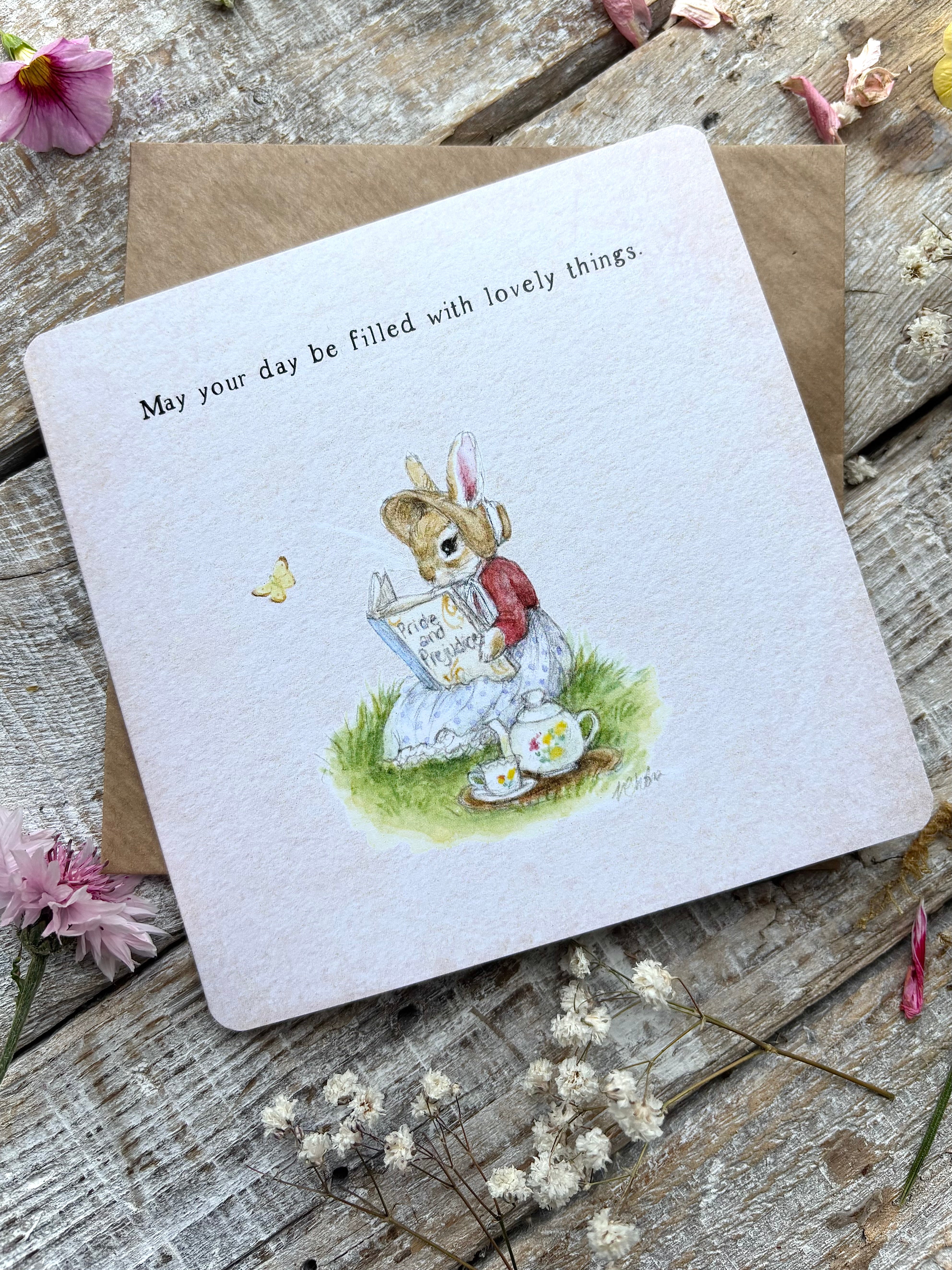 May Your Day Be Filled With Lovely Things Greetings Card (Pride & Prejudice Bunny)