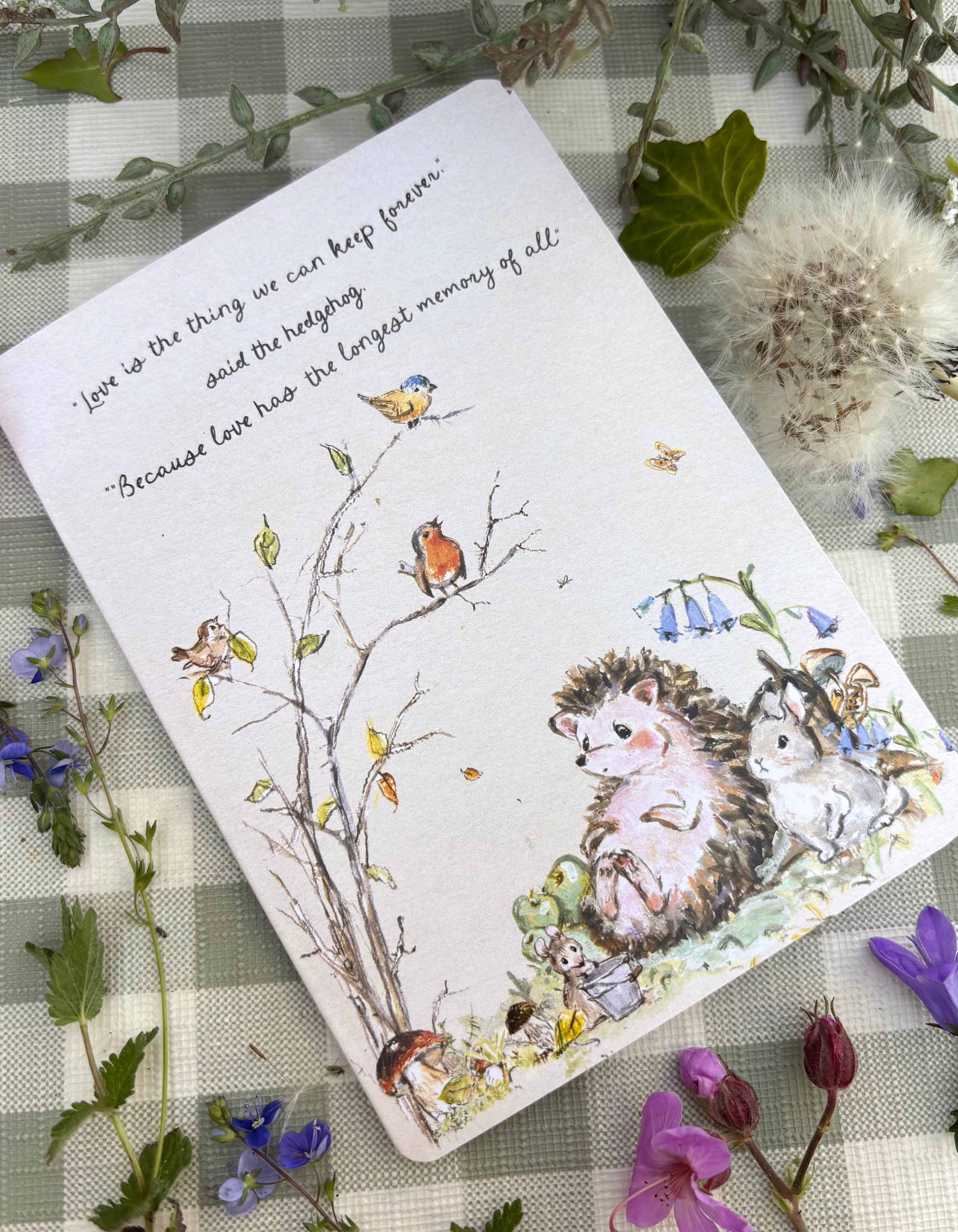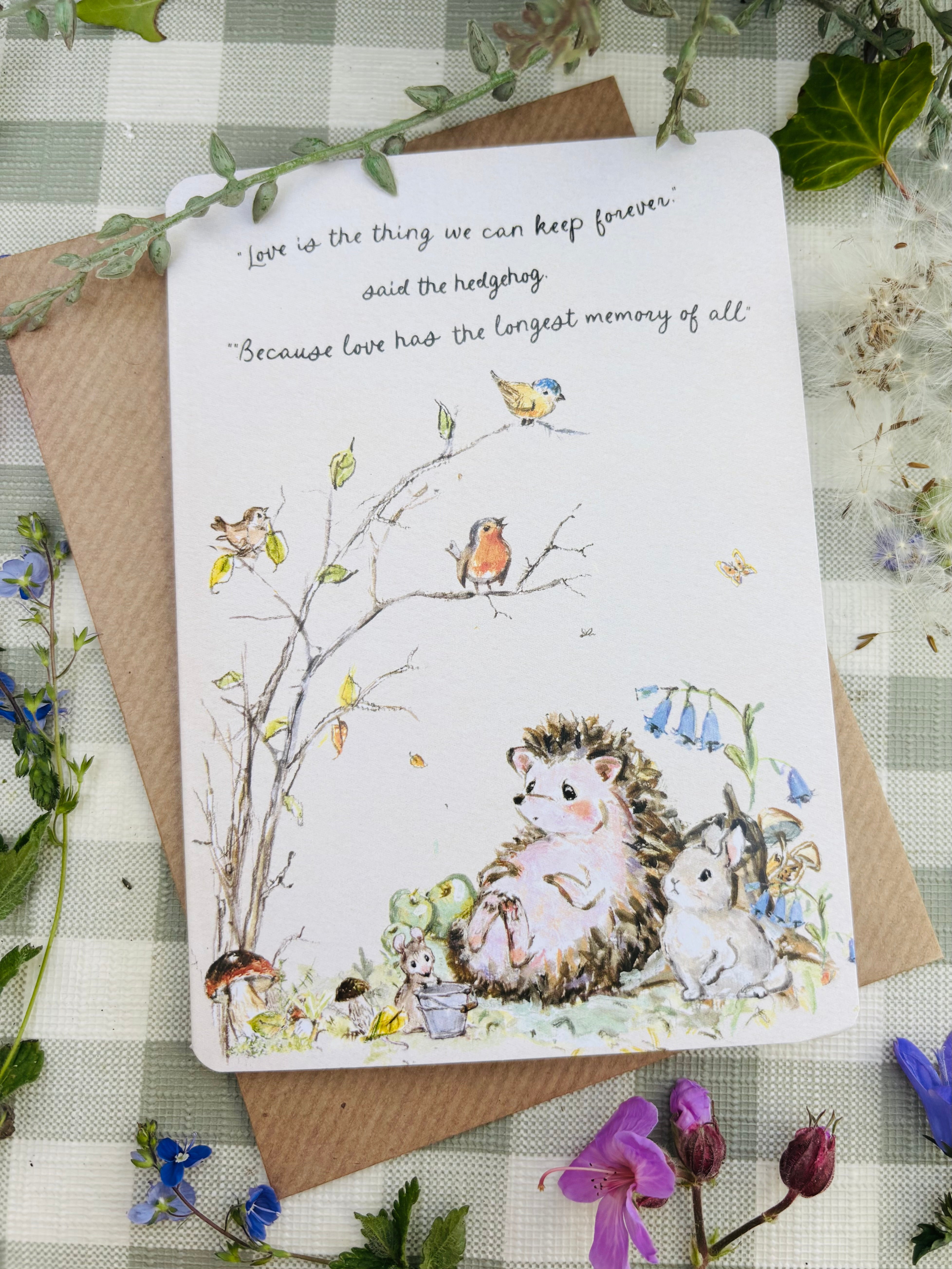 Woodland Whispers - A6 Card: "Love is the thing we can keep forever." said the hedgehog. "Because love has the longest memory of all'