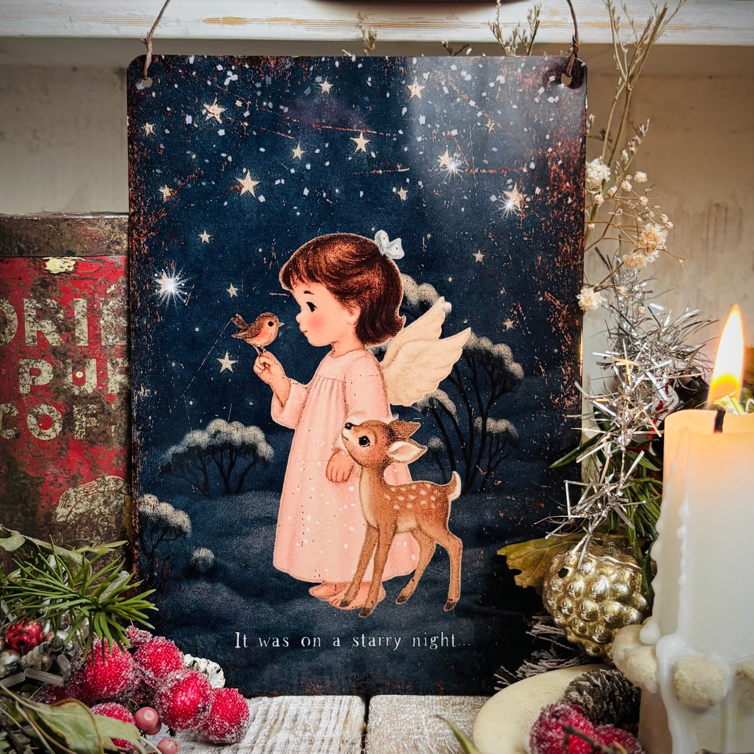 Nostalgic Christmas Decoration/Tag - Angel With Deer
