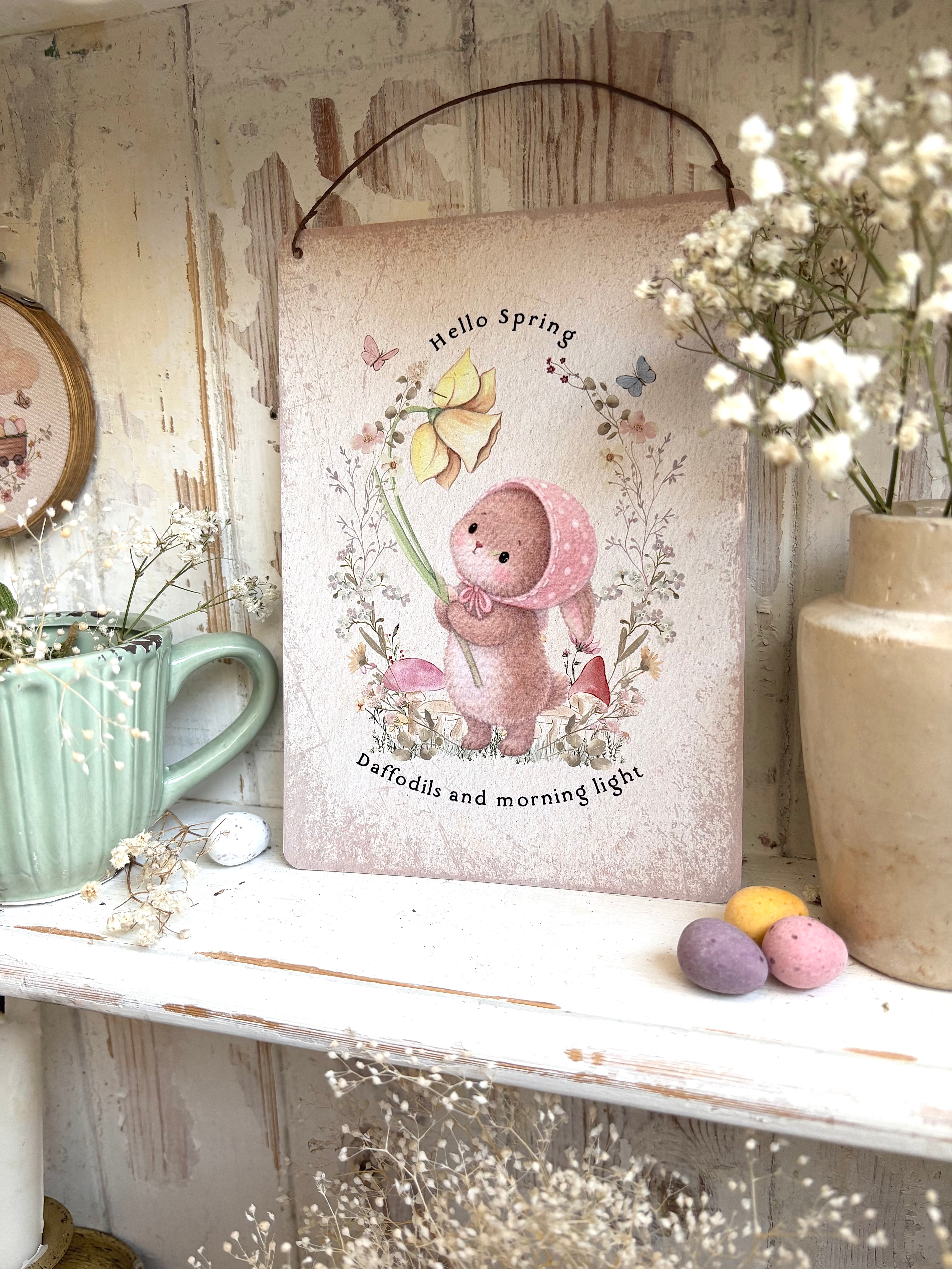 Aluminium Sign - Hello Spring - Daffodils & Morning Light