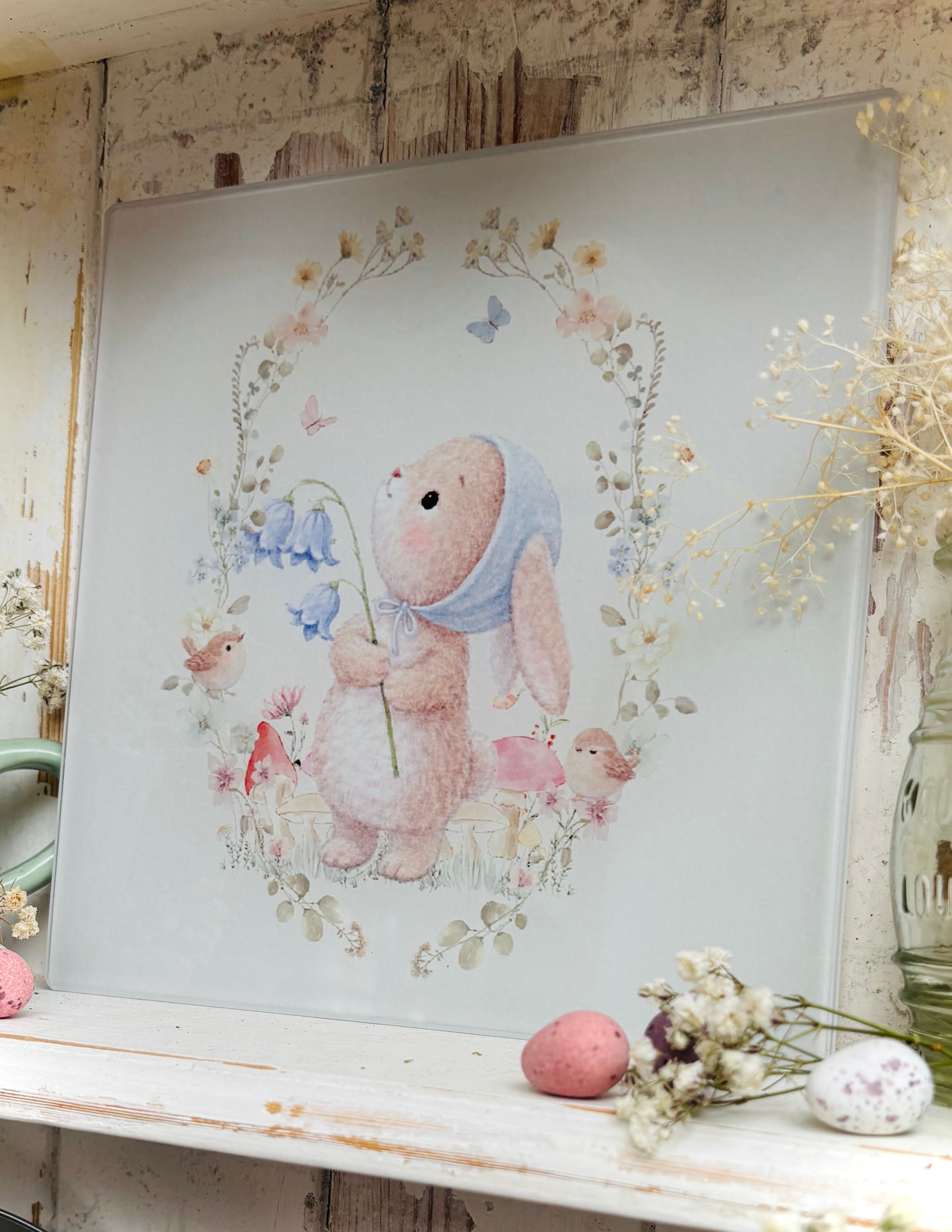 Hello Spring Birdsong Bluebell Bunny Chopping/Serving Board
