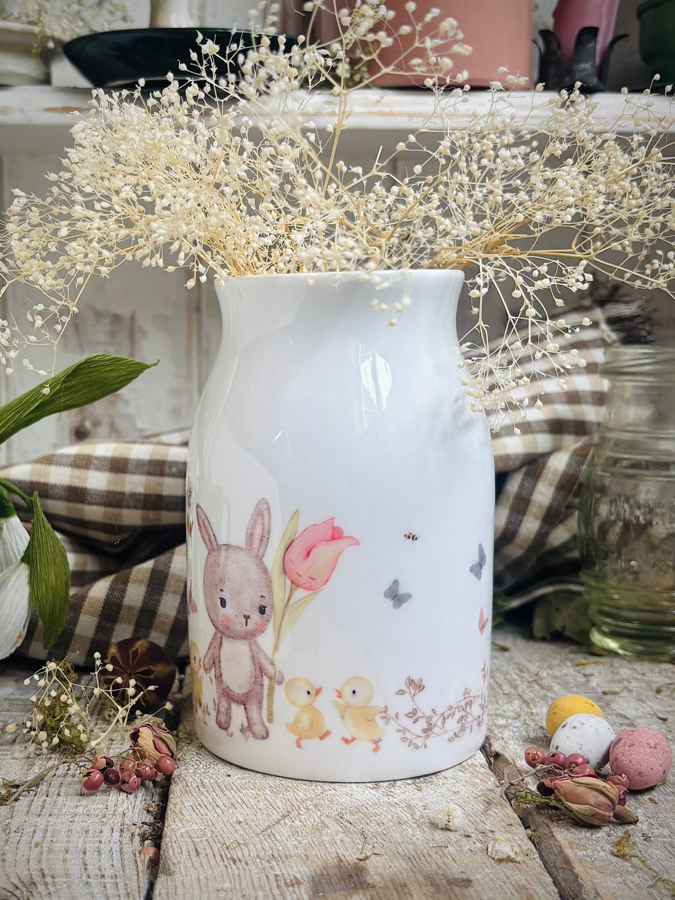 This cute ceramic vase is sweet and simple, just right for sitting on a shelf or window sill with a handful of fresh flowers or a bunch of dried grasses. Measures 13 x 8 x 6.5 cm