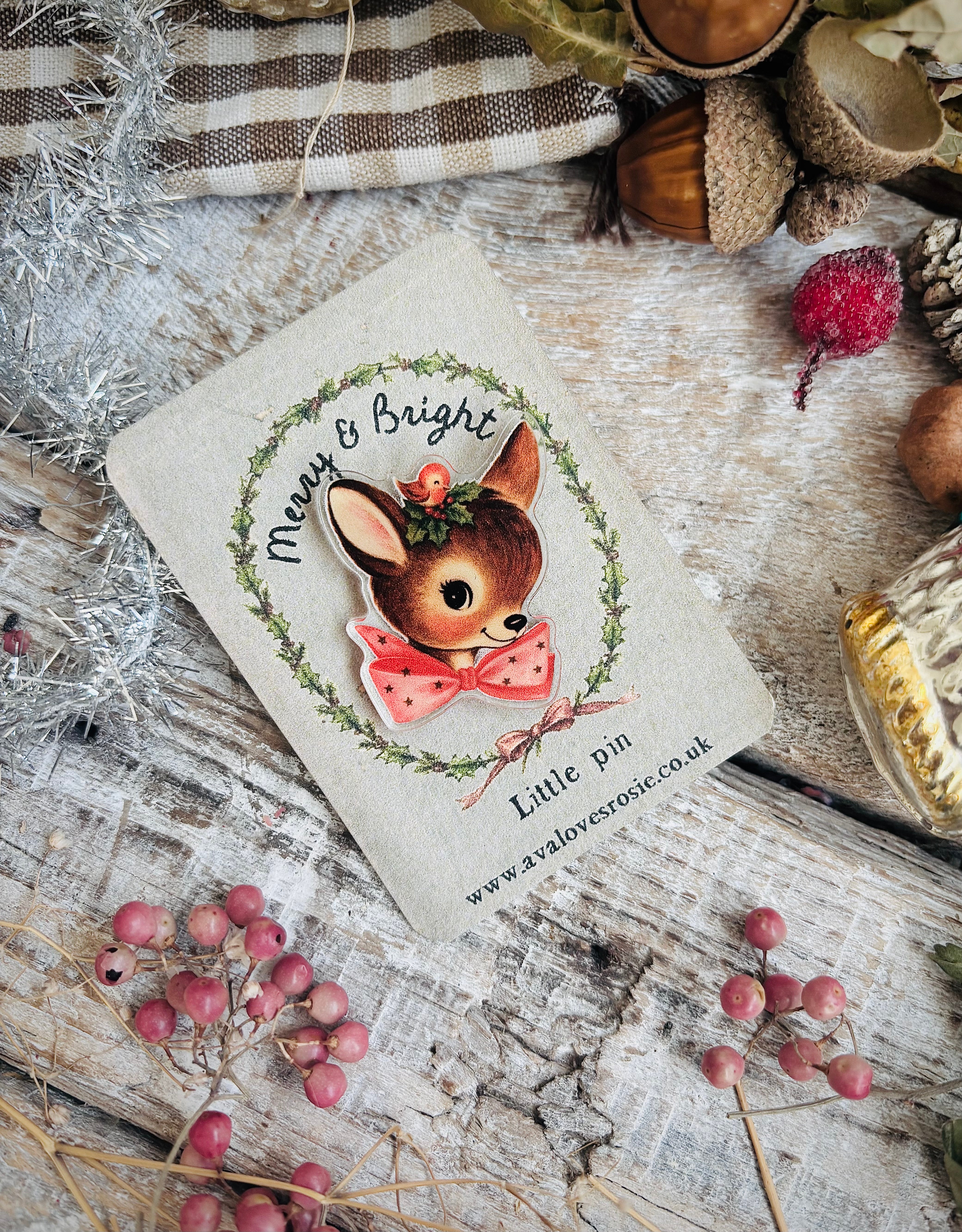 This cute pin is ready to grace your collar, coat or bag and add a little cheery and nostalgic festive charm to your day!