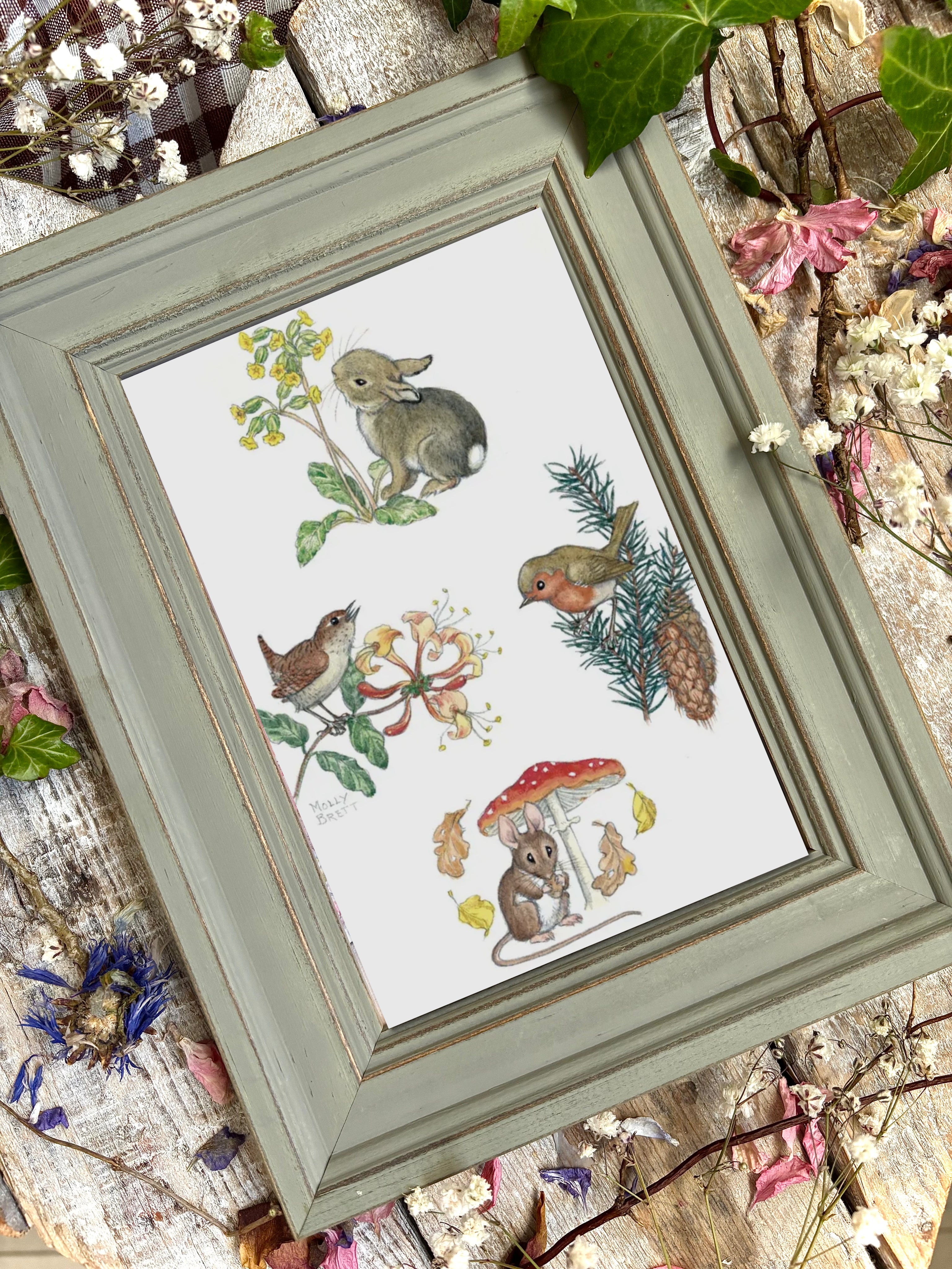 This beautiful Four Seasons Molly Brett postcard by The Medici Society has been framed in a sweet, rustic style sage coloured frame.