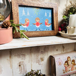 A cute postcard by Mary Adair for The Medici Society, framed in a lovely rustic style wooden frame. Full of joyful, warm and fuzzy Christmas nostalgia!