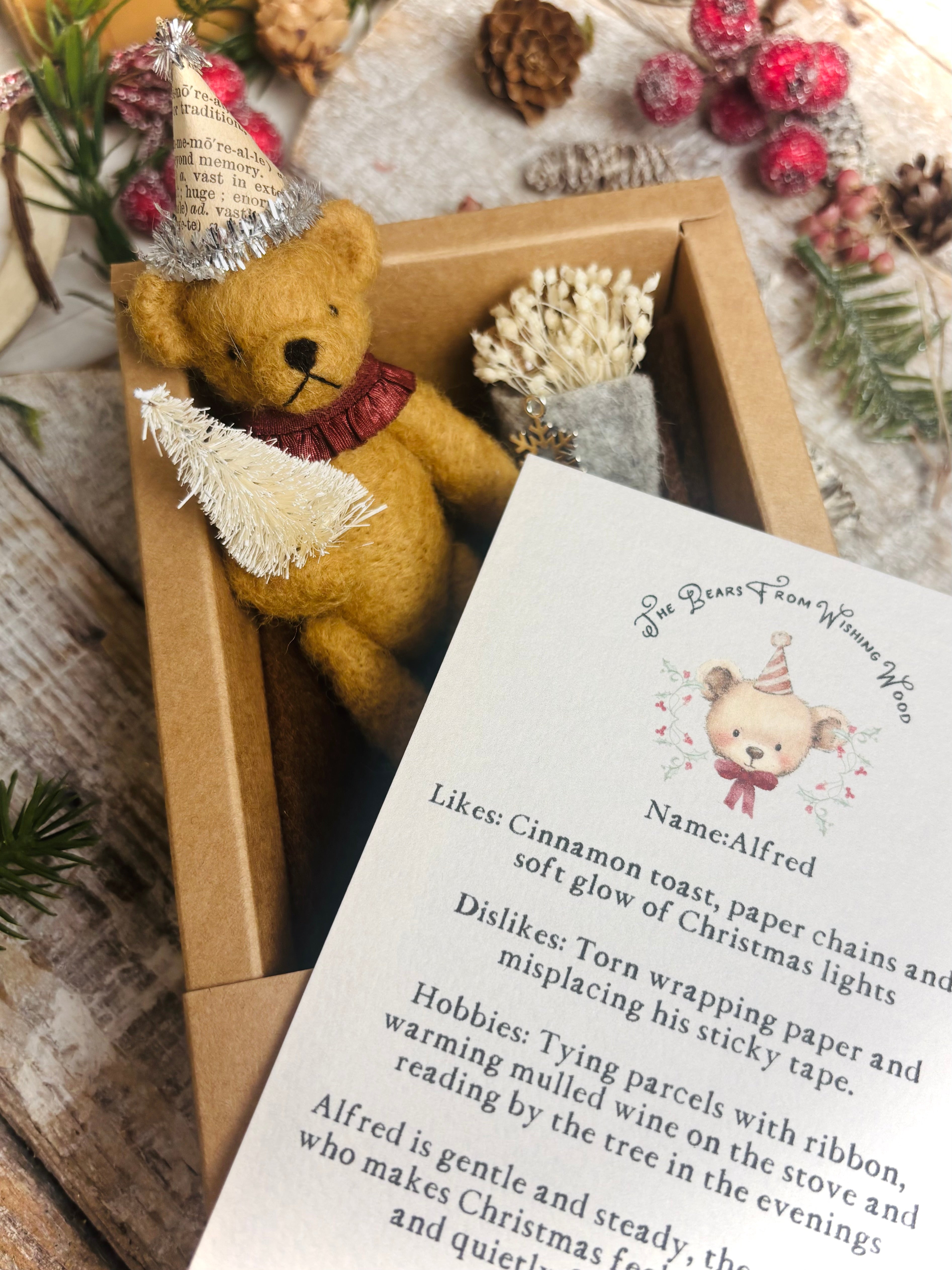 Alfred is gentle and steady, the sort of bear who makes Christmas feel calm, thoughtful and quietly full of meaning.